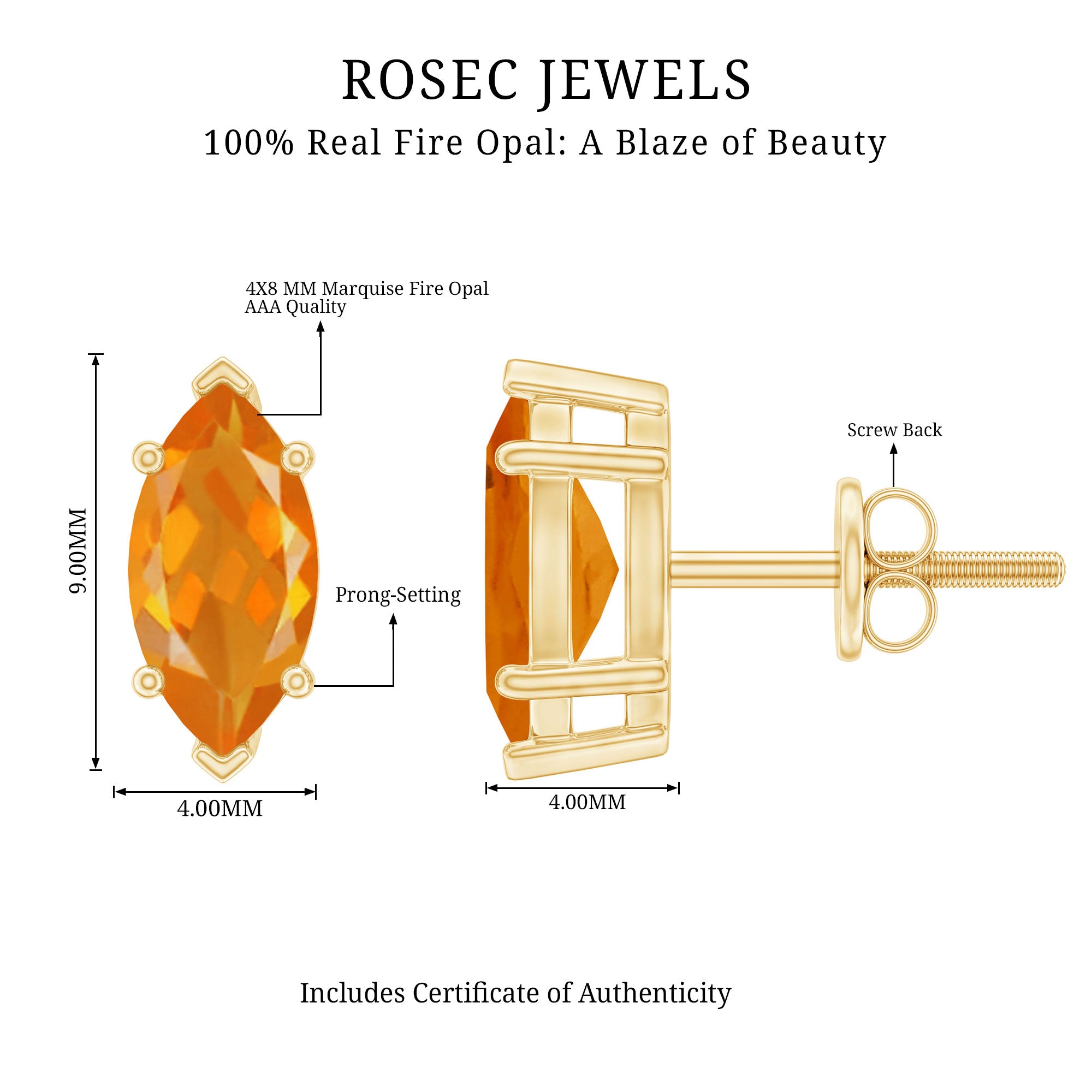 Simple yet undeniably striking, these Fire Opal Earrings bring a burst of vibrant color to any moment. The 4X8 mm Marquise Shape Fire Opal set in Prong Setting steals the spotlight with its elongated shape and fiery tones, glimmers of orange that shift beautifully in the light. Set in Prong Setting, the AAA Quality Fire Opal stands out on their own, making these Opal Studs perfect for anyone who loves jewelry with easygoing style. The secure Screw Back Closure keeps them comfortably in place, giving you confidence whether you are dressing up for a night out or adding a little glow to your everyday look. Packaged in a charming jewelry box, these October Birthstone Earrings make a thoughtful, meaningful gift for birthdays or anniversaries. Pair them with flowy dresses, casual outfits or office attire, their warm sparkle blends effortlessly with countless outfits. These Opal Ear Studs offer charm without effort and color that never fails to brighten the day.