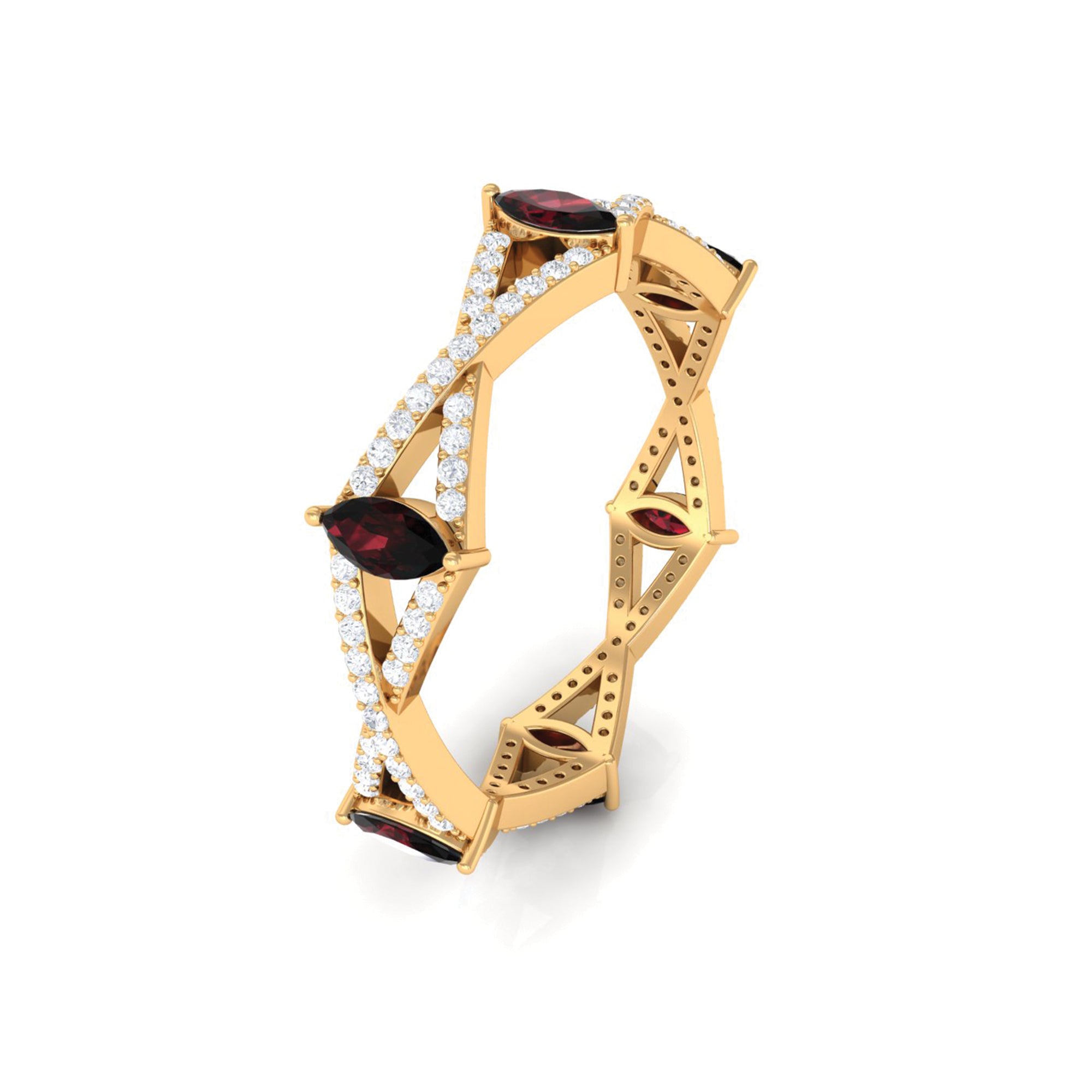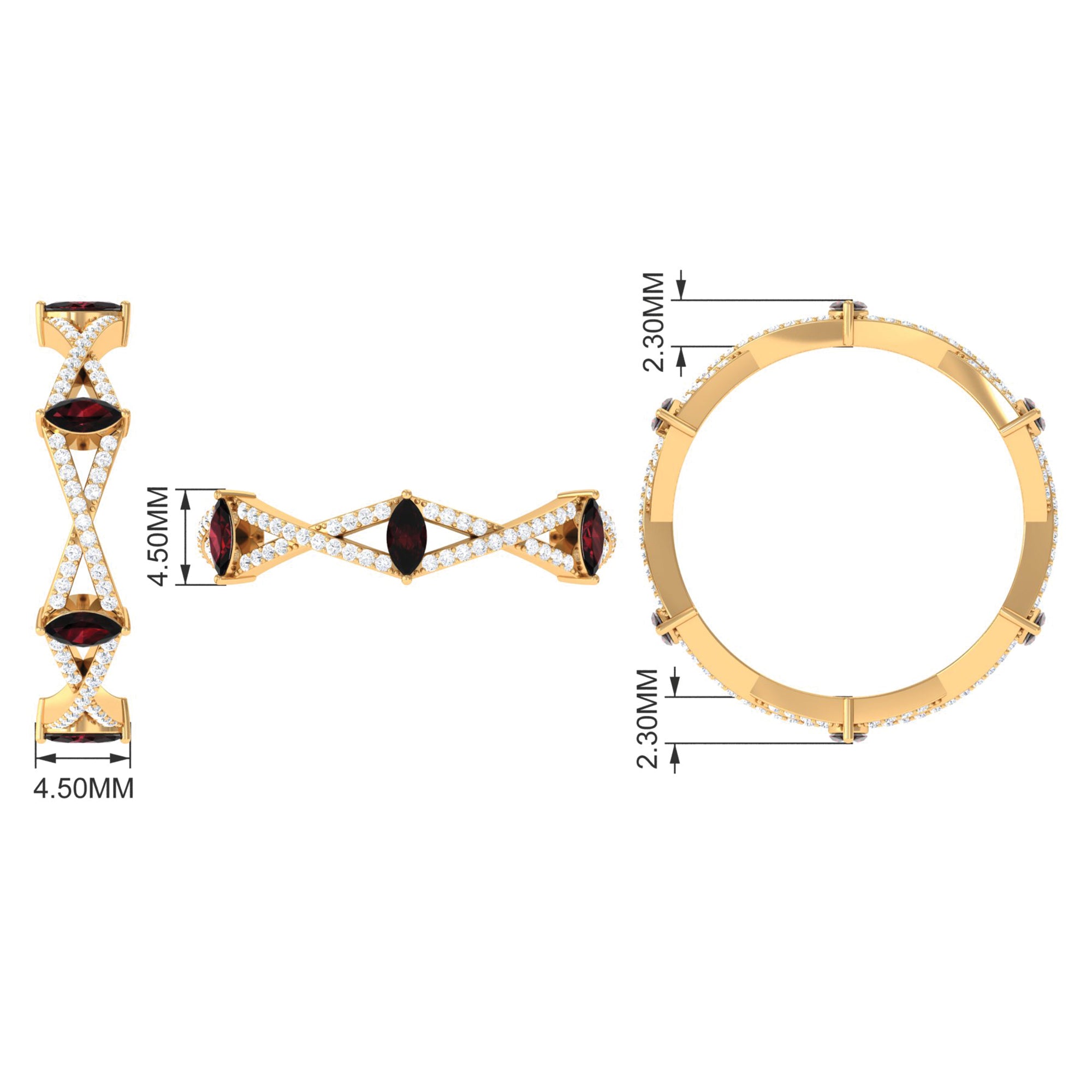 Natural Marquise Garnet Diamond Eternity Ring with Crossover Shank