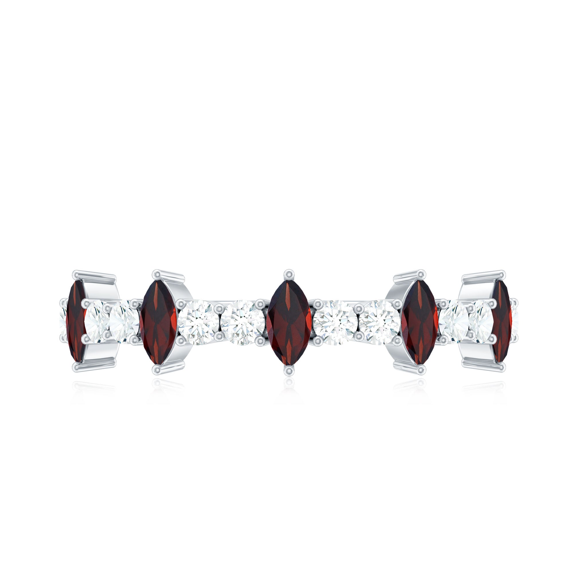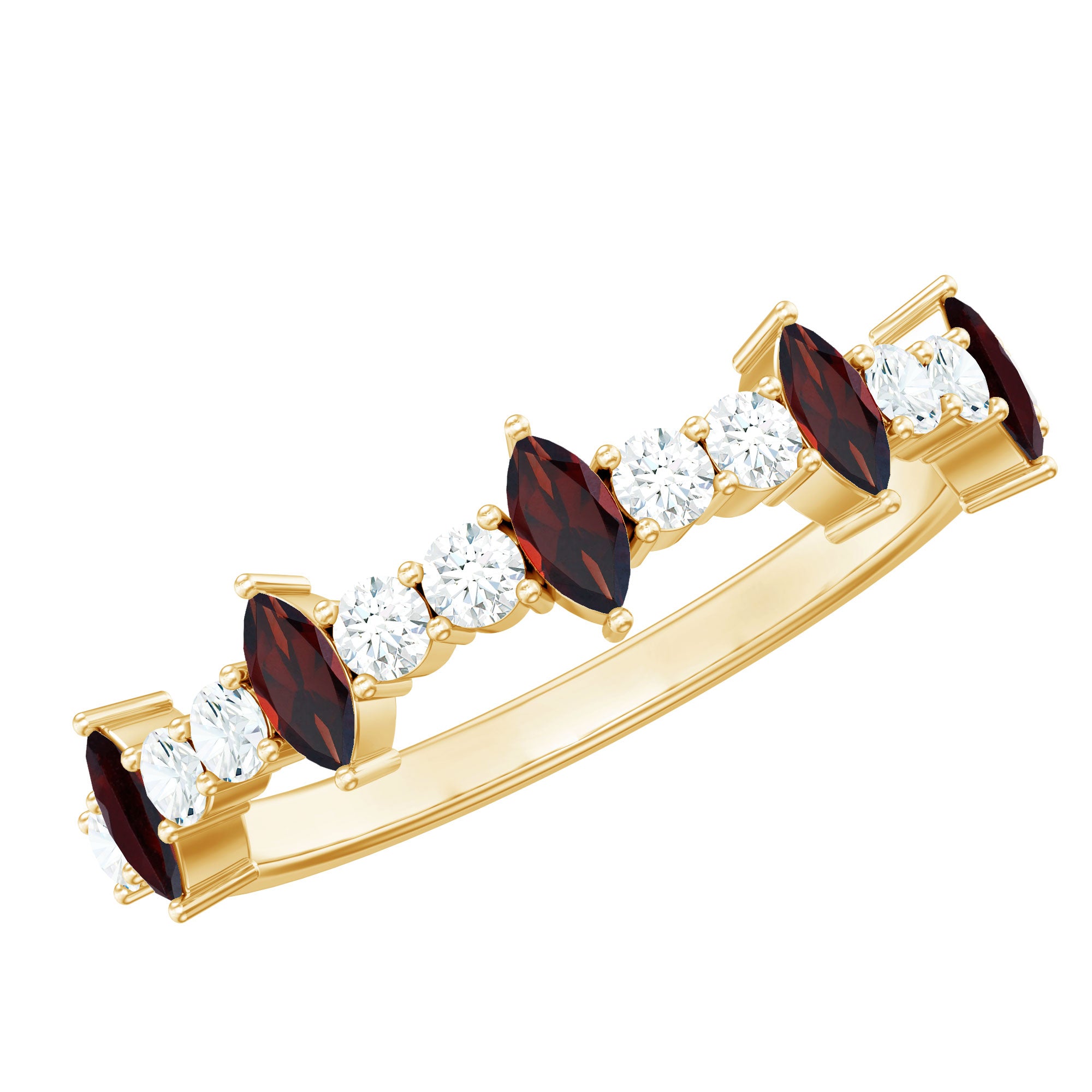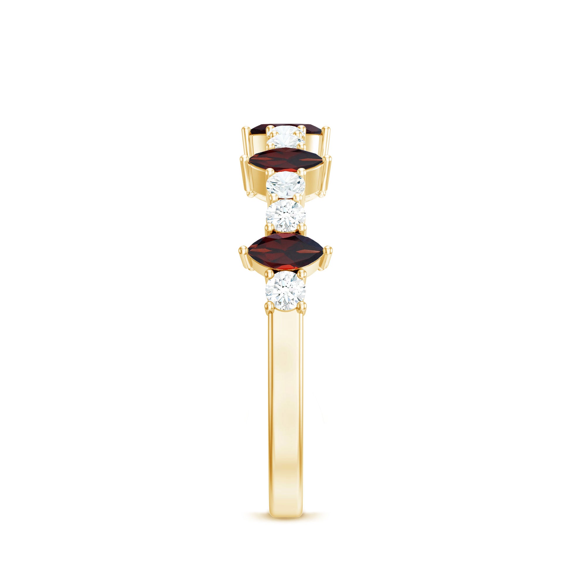 Natural Marquise Garnet Half Eternity Ring with Diamond