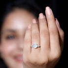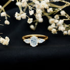 Celebrate your special day with this Moonstone Engagement Ring. The ring features a 6X8 MM Oval Shape and 3X5 MM Pear Shape Moonstone securely placed in Prong Setting. This 3-Stone Ring exudes luxury and sophistication. This Past Present Future Ring exhibits the radiance and unique charm that makes her the center of attraction in the crowd. This October Birthstone Ring beholds the shine of AAA quality Moonstone which will make the occasion more special and brighter. This Oval Engagement Ring is one of a kind that brings your past present future together and will always remind her about your love, especially in your absence.
