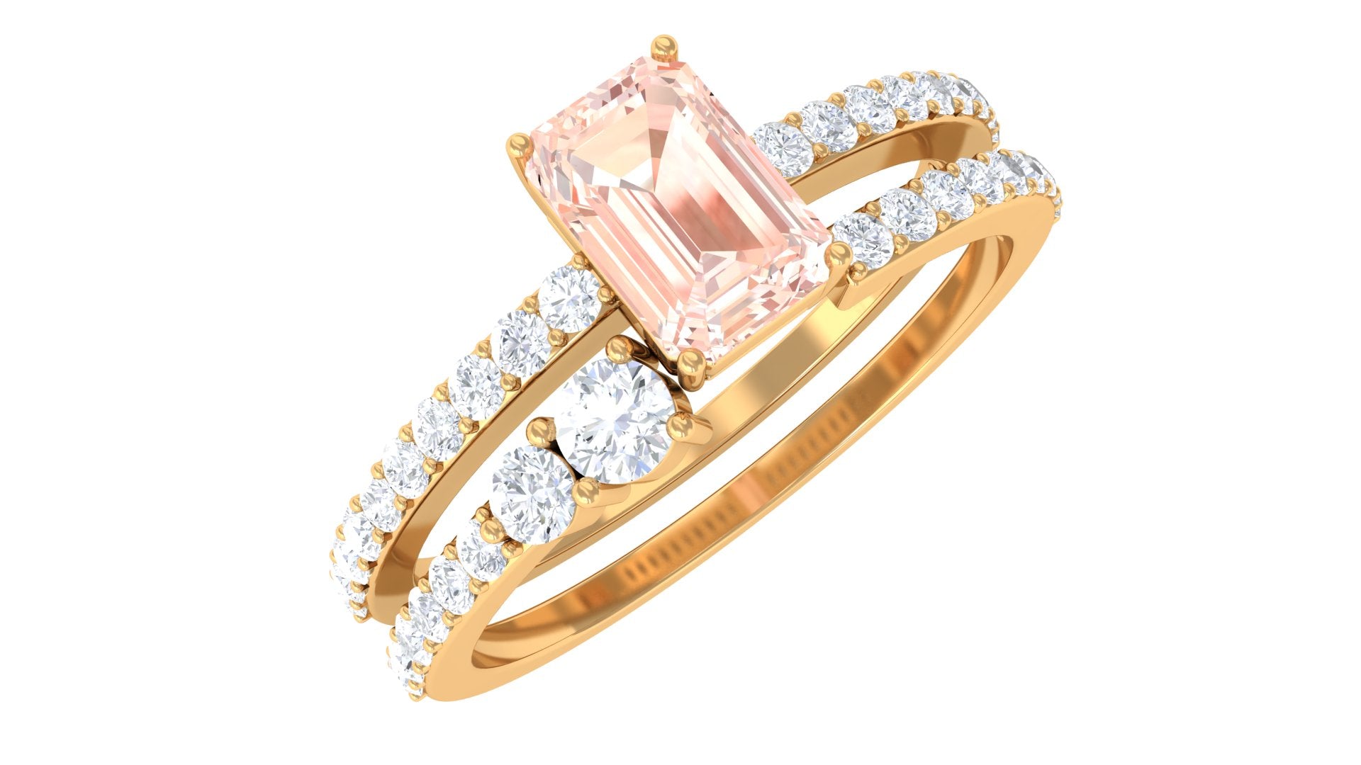 Natural Morganite and Diamond Stackable Ring Set