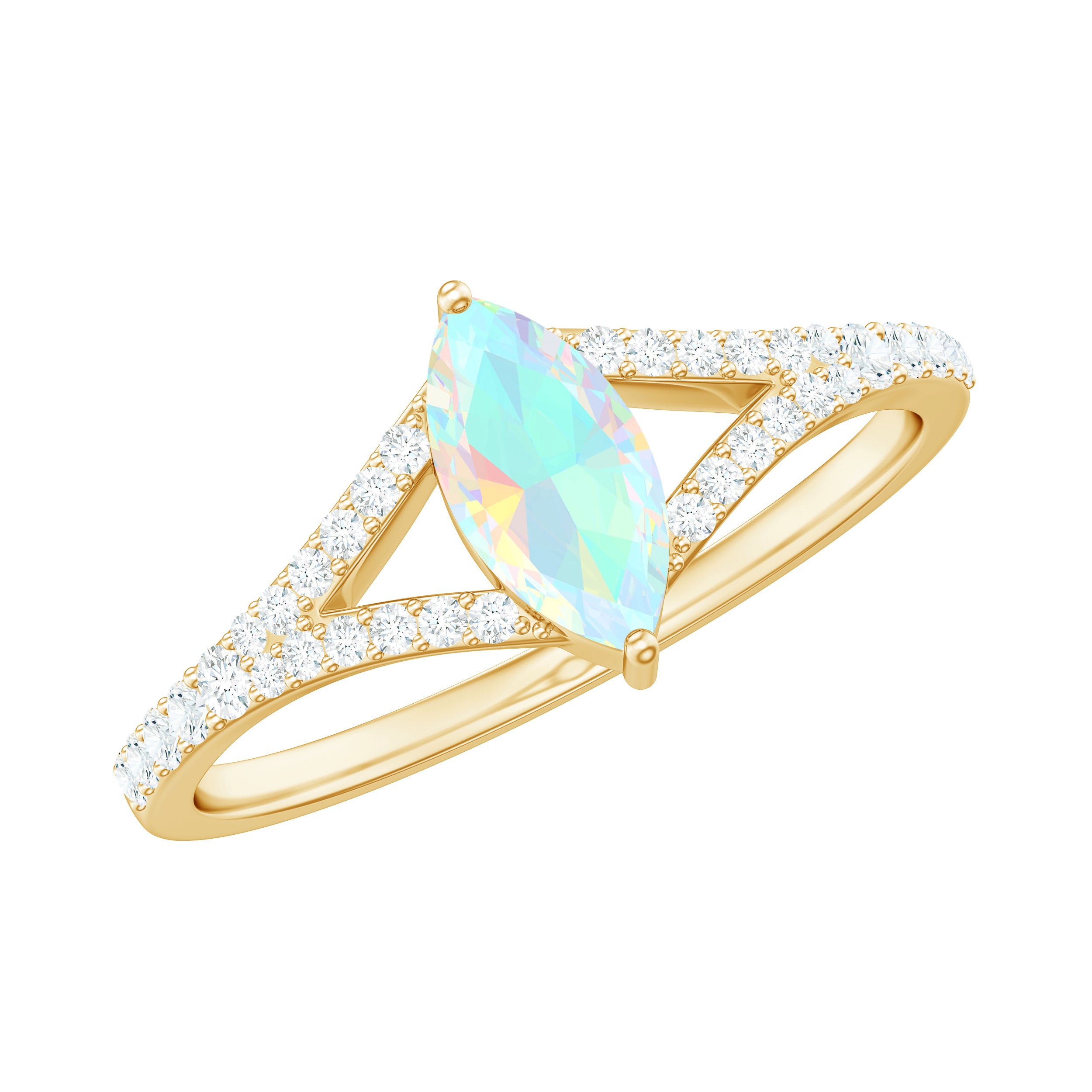 Natural Opal Marquise Engagement Ring with Diamond Split Shank