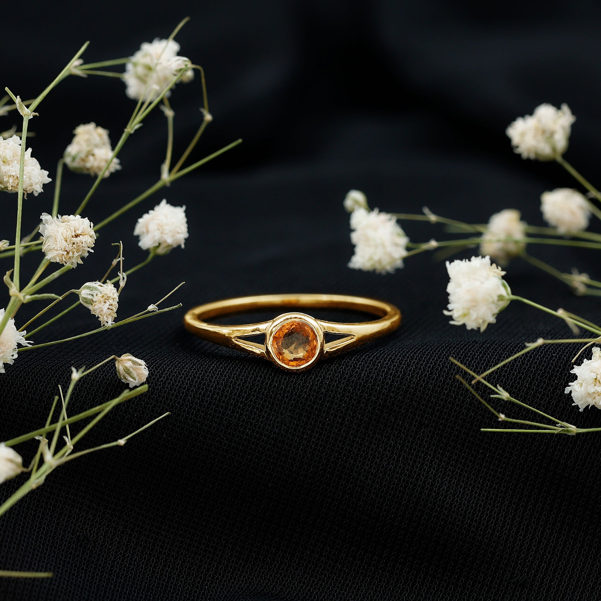 Natural Orange Sapphire Solitaire Promise Ring in Bezel Setting