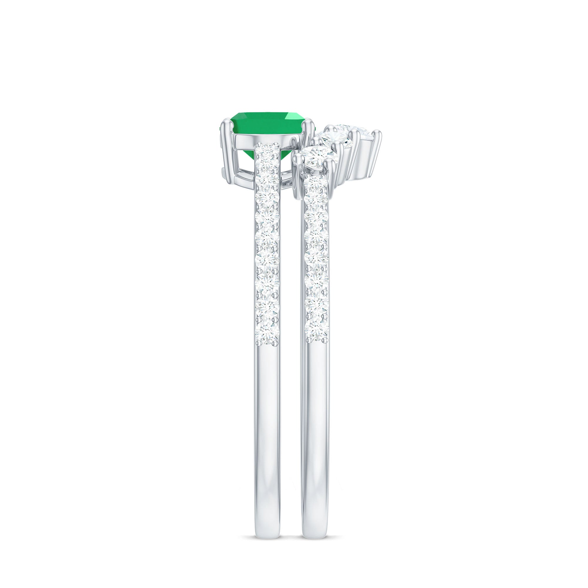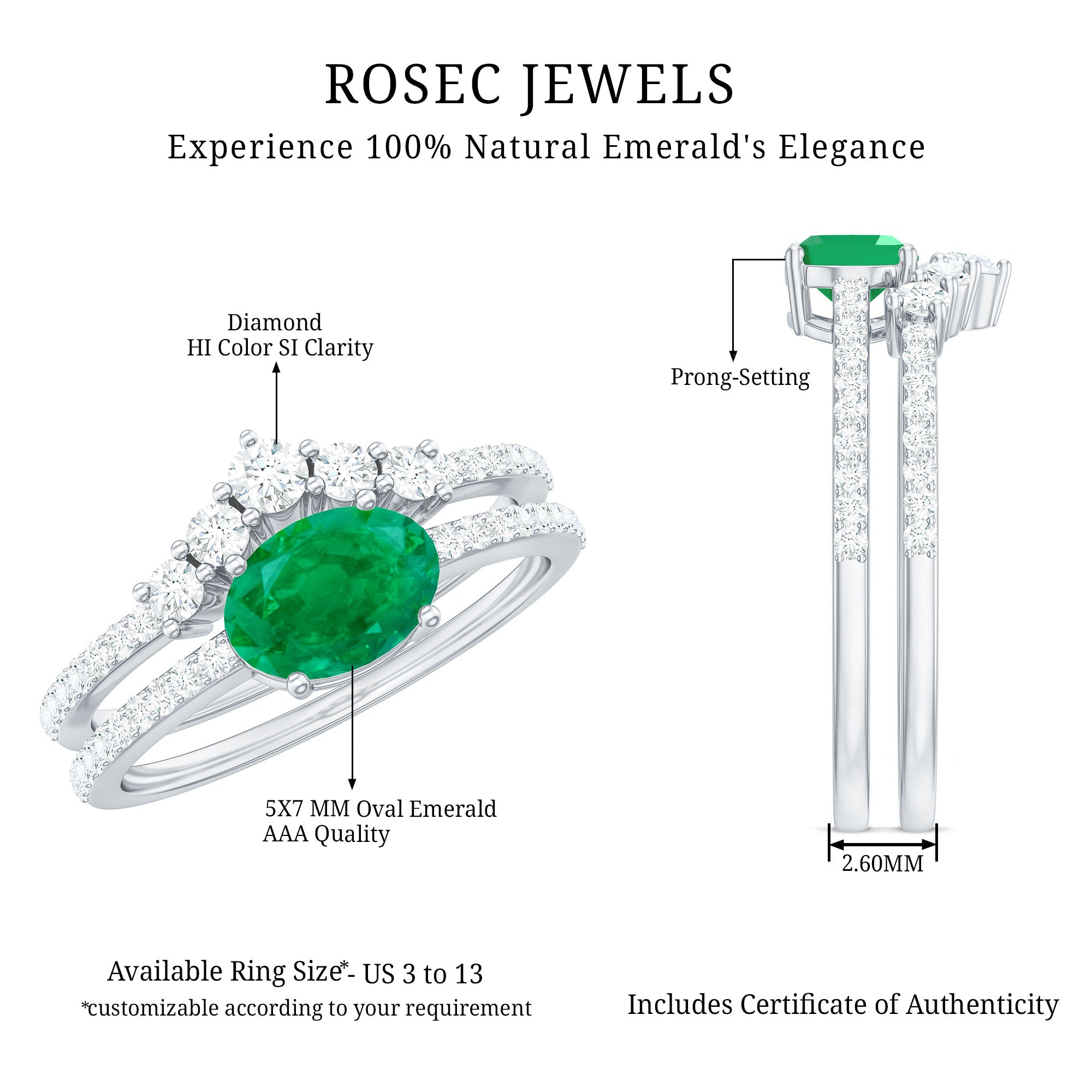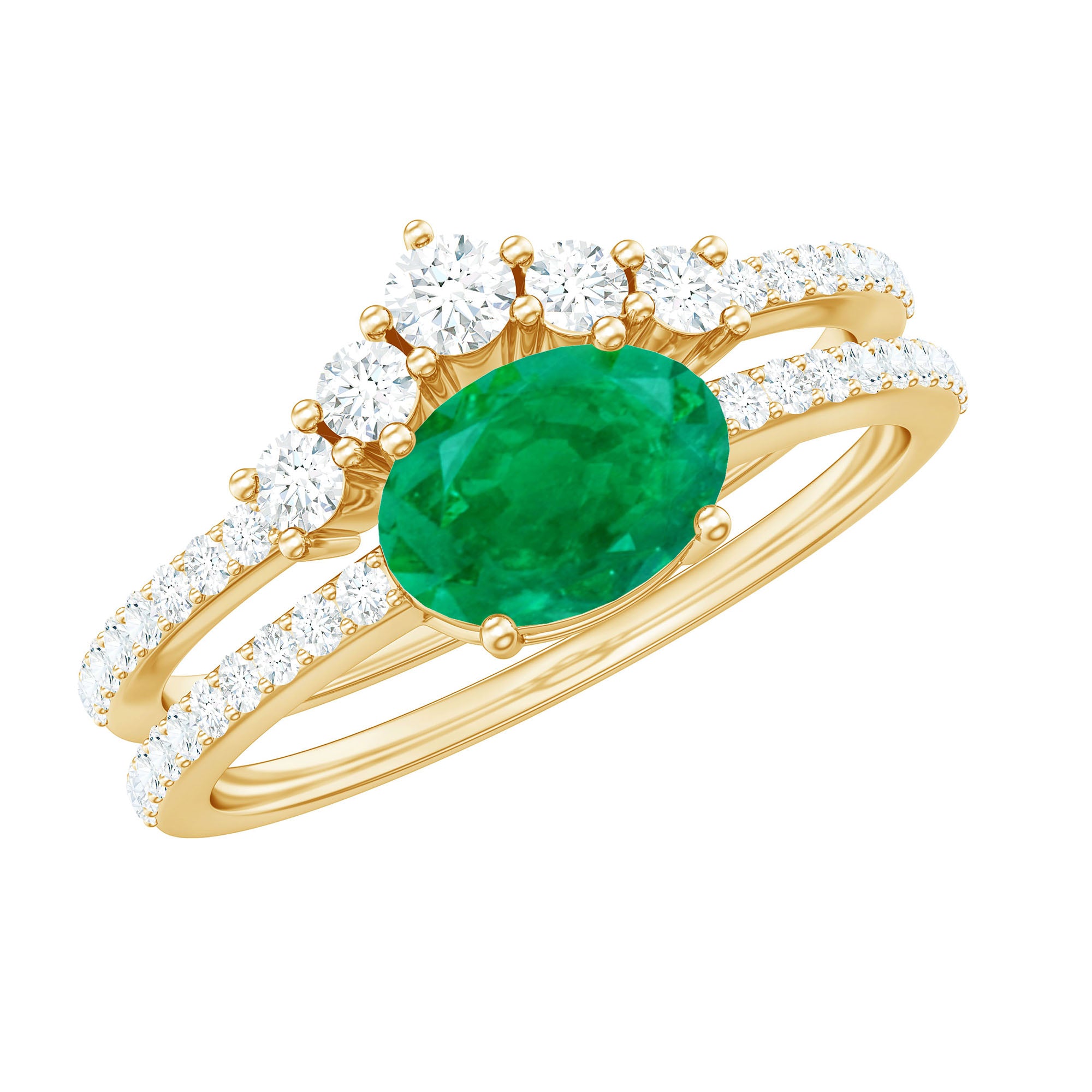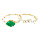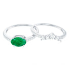 Natural Oval Emerald Diamond East West Engagement Ring and Wedding Band Set