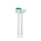 Dare to fall in love all over again with this breathtaking Wedding Bridal Ring Set, a masterpiece that celebrates the beauty of forever. The Solitaire Engagement Ring of this 2 Piece Ring Set features a 5X7 mm Oval Shape Emerald, set horizontally in Prong Setting for a modern yet timeless twist, symbolizing the strength and balance of true love. Flanking the vibrant green Emerald, sparkling Diamond Side Stones shimmer like twinkling stars. The matching Curved Wedding Band adorned with Diamond stones gracefully embraces the Engagement Ring, creating a romantic design that speaks of two souls perfectly intertwined. Each detail of this East West Engagement Ring and Wedding Band is thoughtfully designed to capture the magic of your never ending love. Presented in a signature jewelry box and available in a variety of ring sizes, this enchanting Emerald Wedding Ring Set is a love story you can wear every day. Whether it is for your proposal, anniversary or simply a celebration of your eternal bond, this Wedding Engagement Ring Set is a timeless reminder that true love grows more beautiful with time.