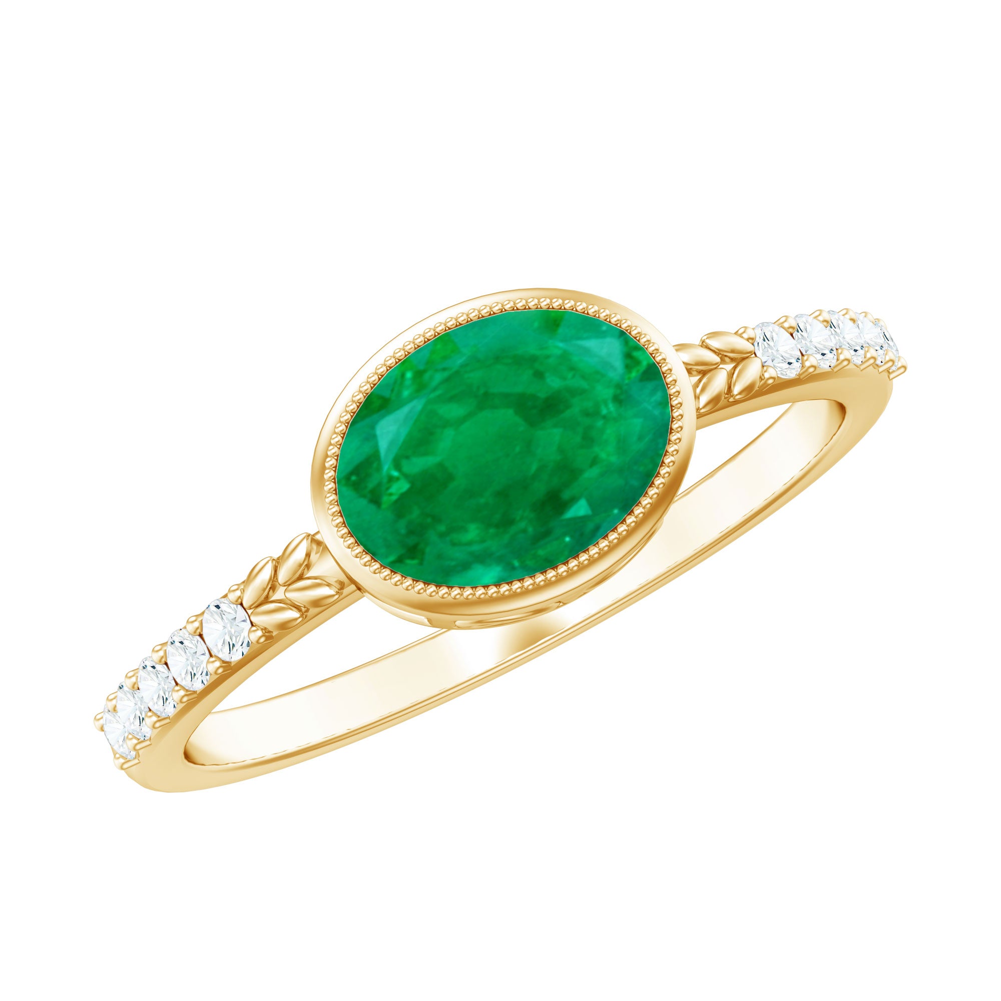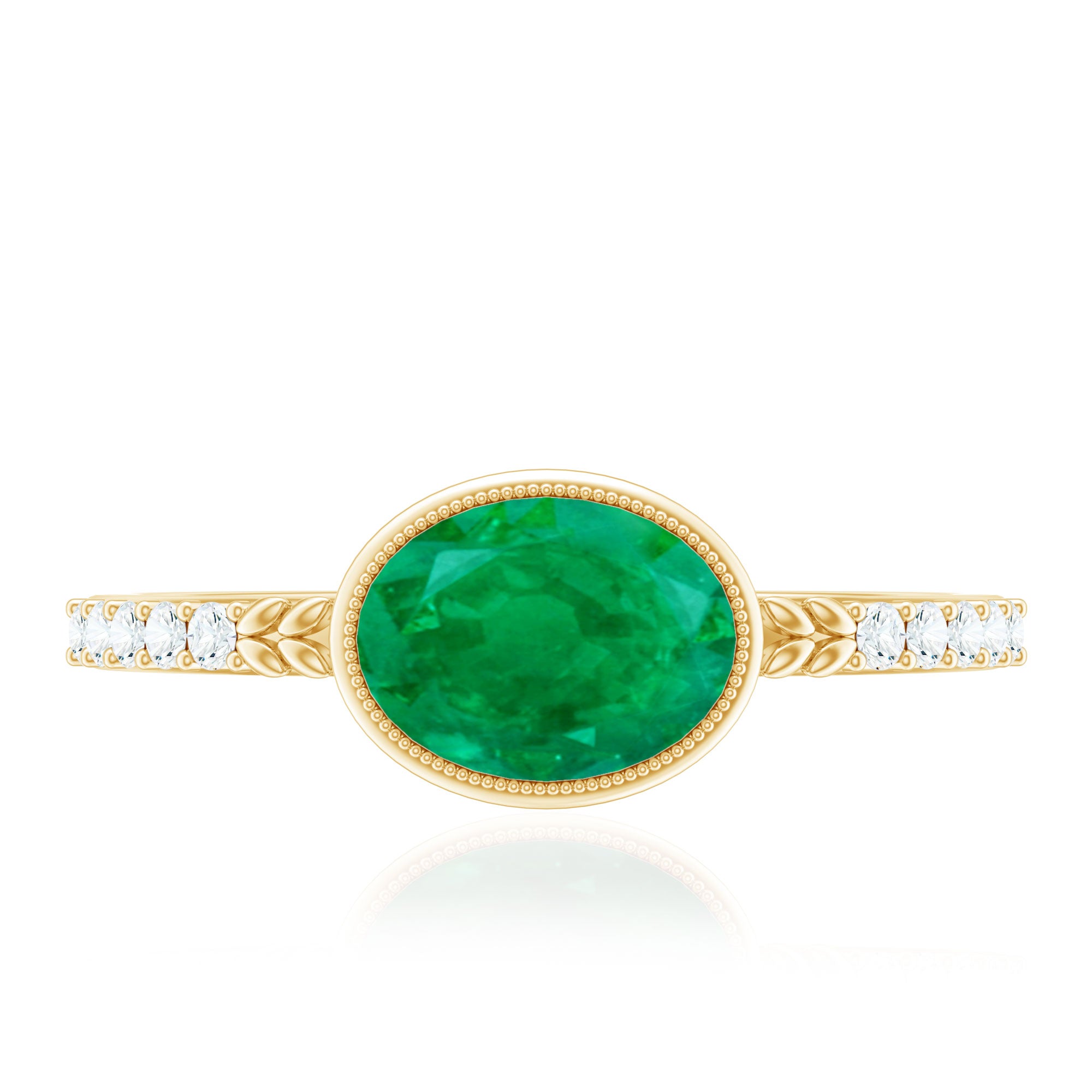 Natural Oval Shape Emerald East West Engagement Ring with Diamond