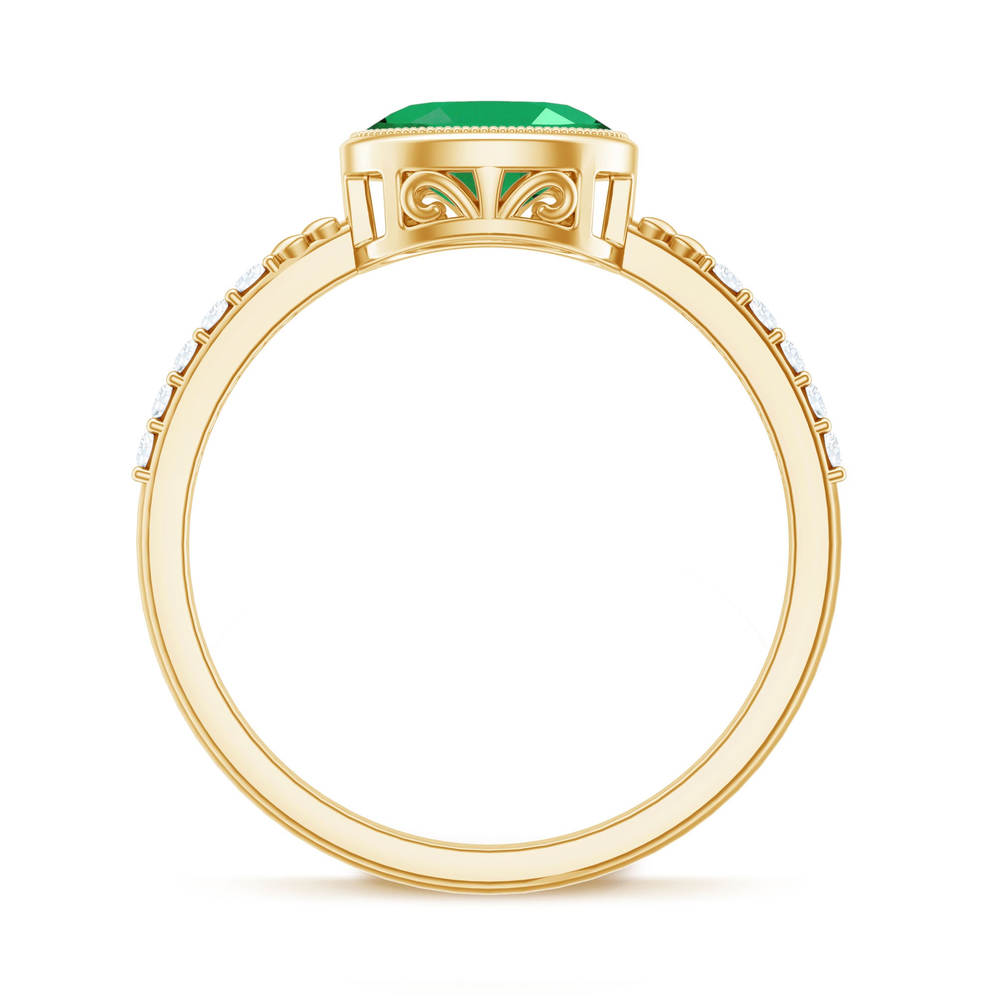 Unveil a love that is as unique as it is timeless with this East West Engagement Ring, a stunning blend of modern elegance and romantic charm. The horizontally set 5X7 mm Oval Shape Emerald in Bezel Setting glimmers with a rich green hue. Surrounding the center stone, intricate Beaded Detailing adds a delicate touch, enhancing the natural brilliance of Emerald while giving the ring a vintage inspired feel. The slim band, adorned with sparkling Diamond stones, creates a graceful shimmer that dances with every movement, symbolizing the light, joy and sparkle that love brings into life. Its East West Style offers a contemporary twist on a classic design, making this Bezel Set Engagement Ring with Emerald a statement of individuality as well as devotion. Perfect for engagements, anniversaries or as a heartfelt gift for someone extraordinary, this Oval Emerald Engagement Ring is a declaration of commitment, passion and shared dreams. Presented in a signature jewelry box and available in a variety of sizes, this Emerald Diamond Engagement Ring is crafted to be cherished, admired and worn as a daily reminder of a love that grows stronger with every heartbeat.