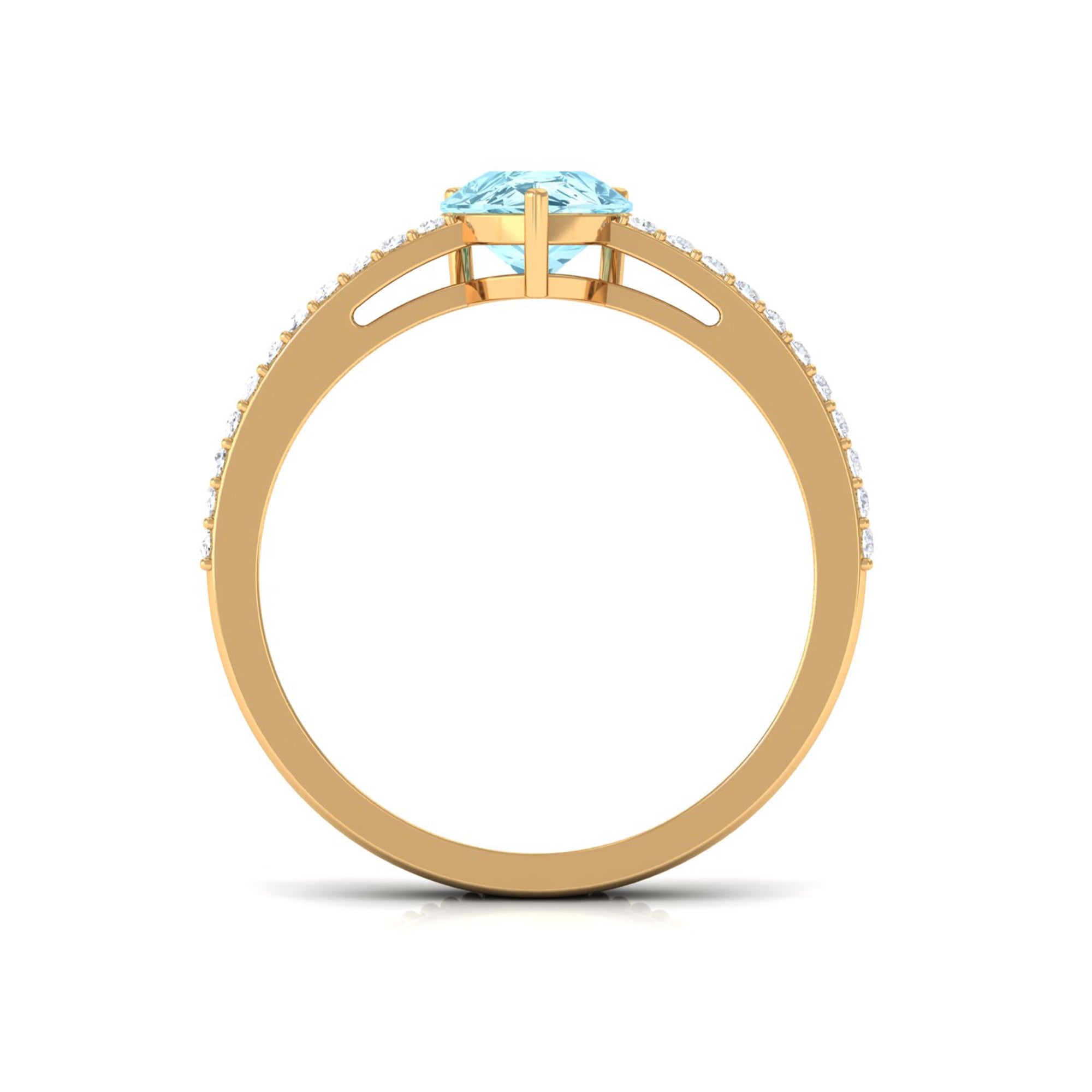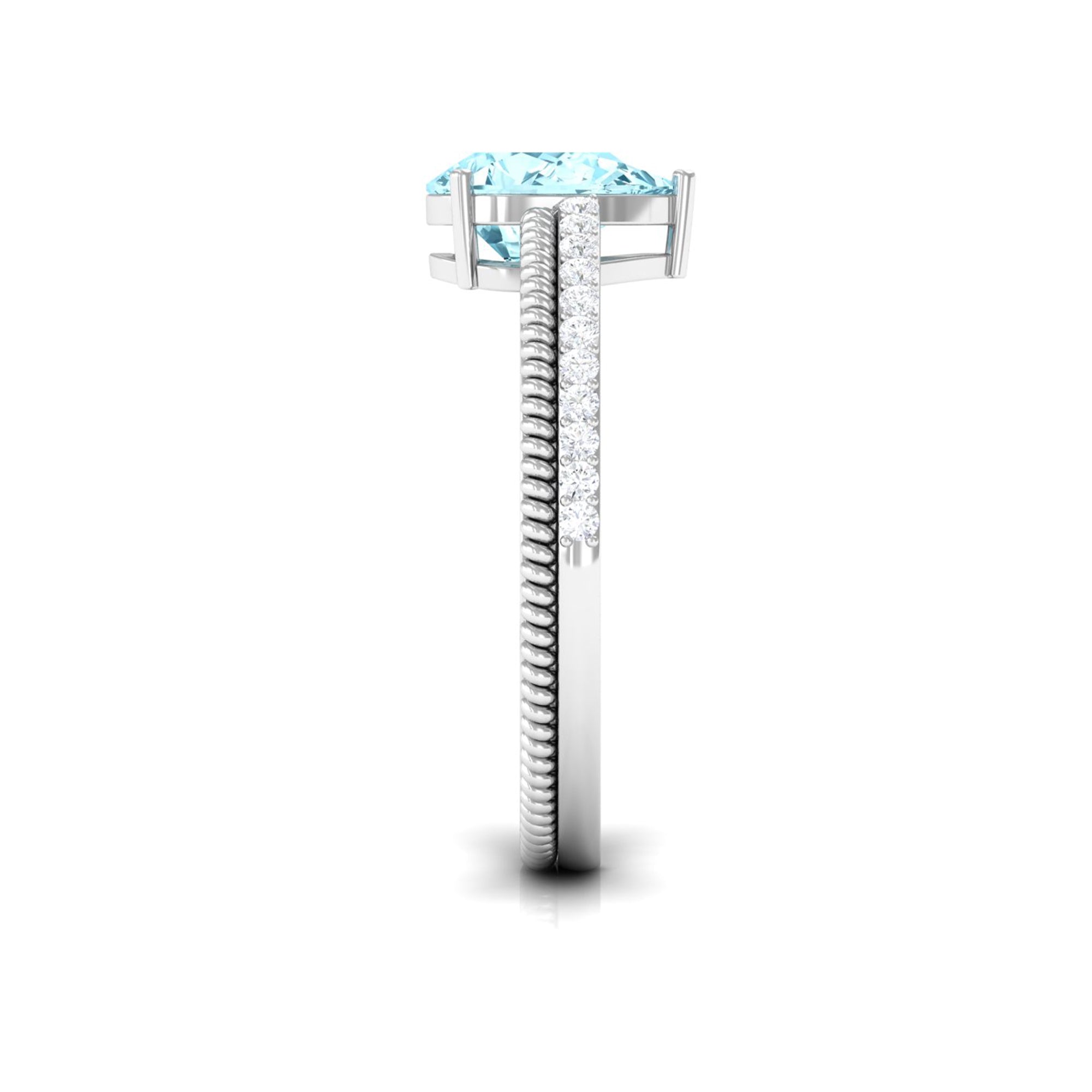 Natural Pear Shape Aquamarine Diamond Engagement Ring with Twisted Rope