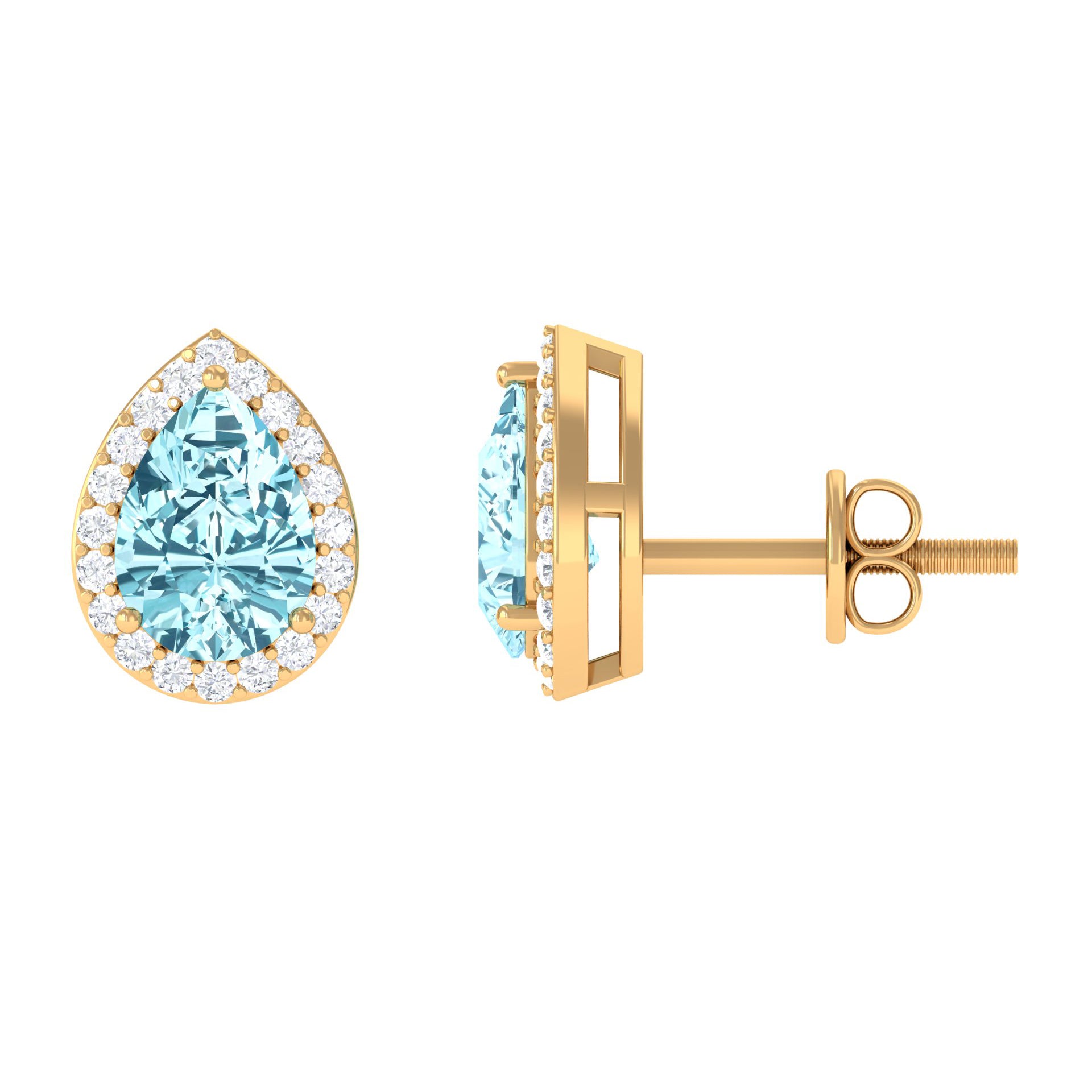 Natural Pear Shape Aquamarine Stud Earrings with Diamond Halo