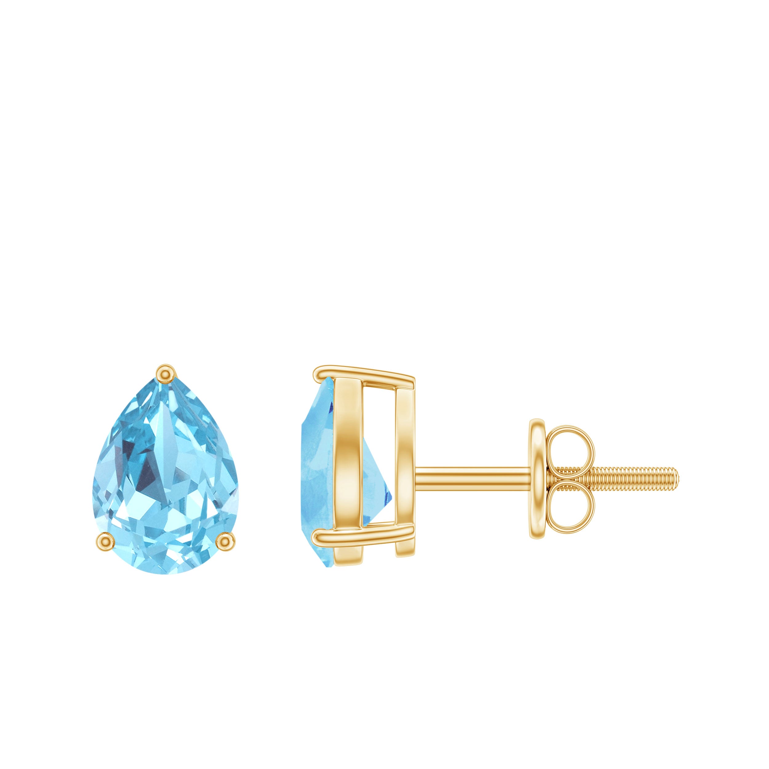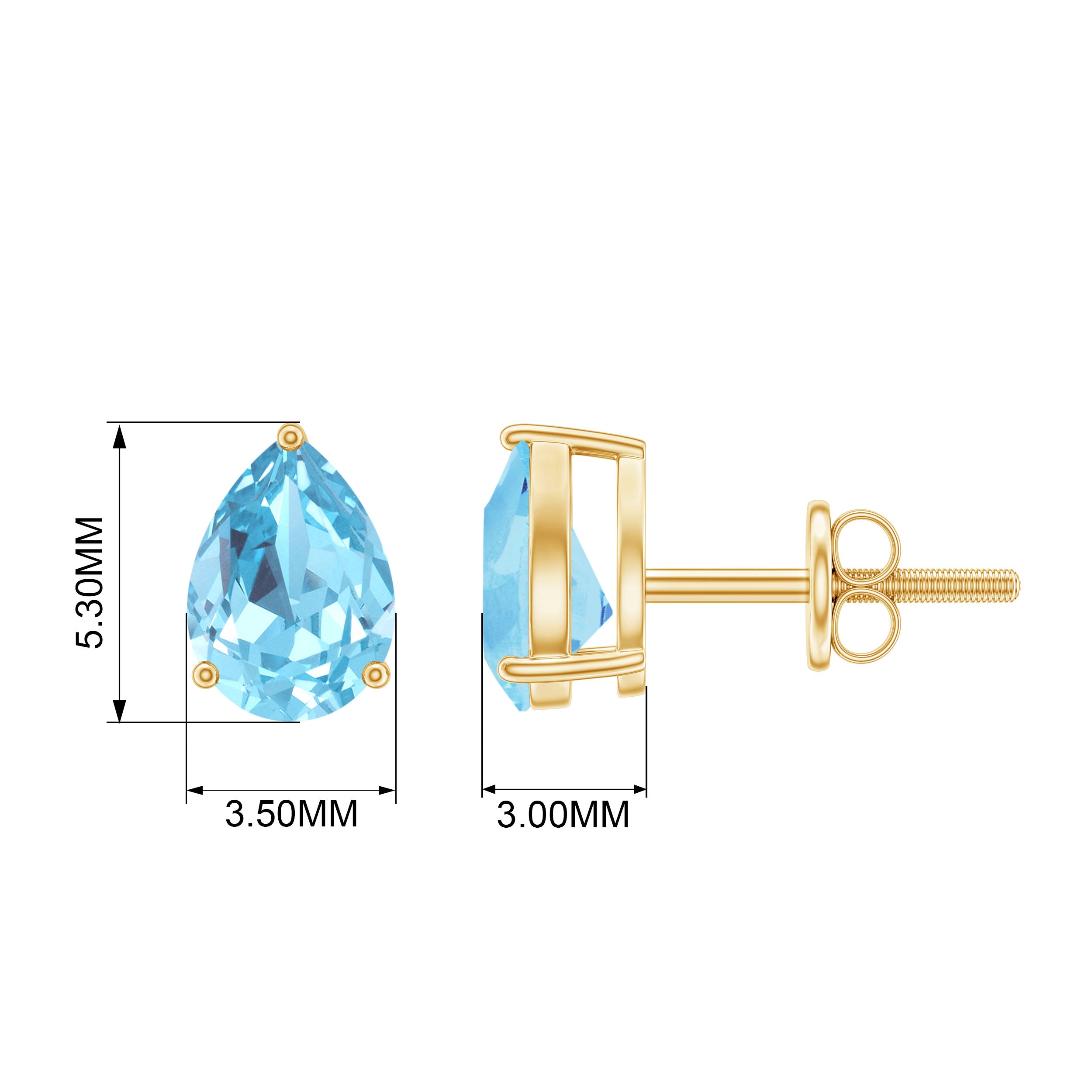 Natural Pear Shape Aquamarine Stud Earrings with Screw Back