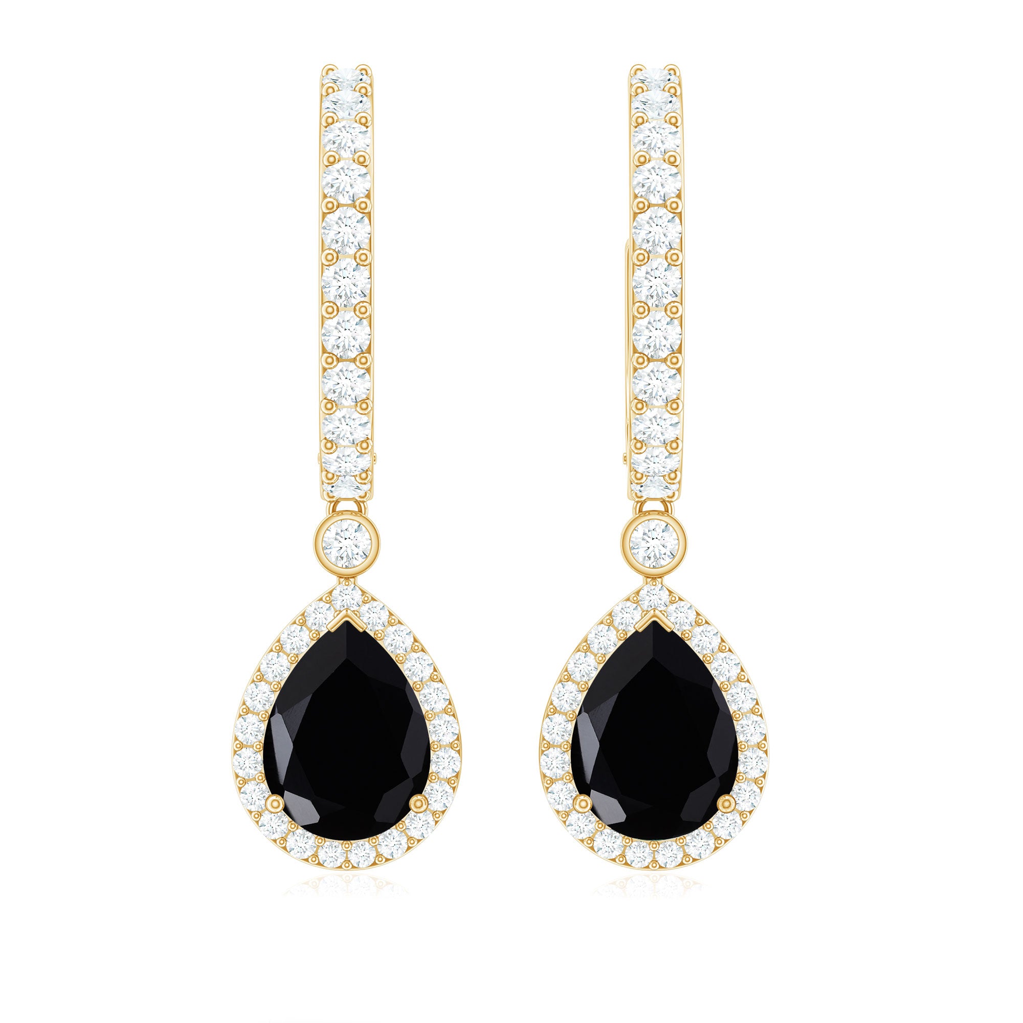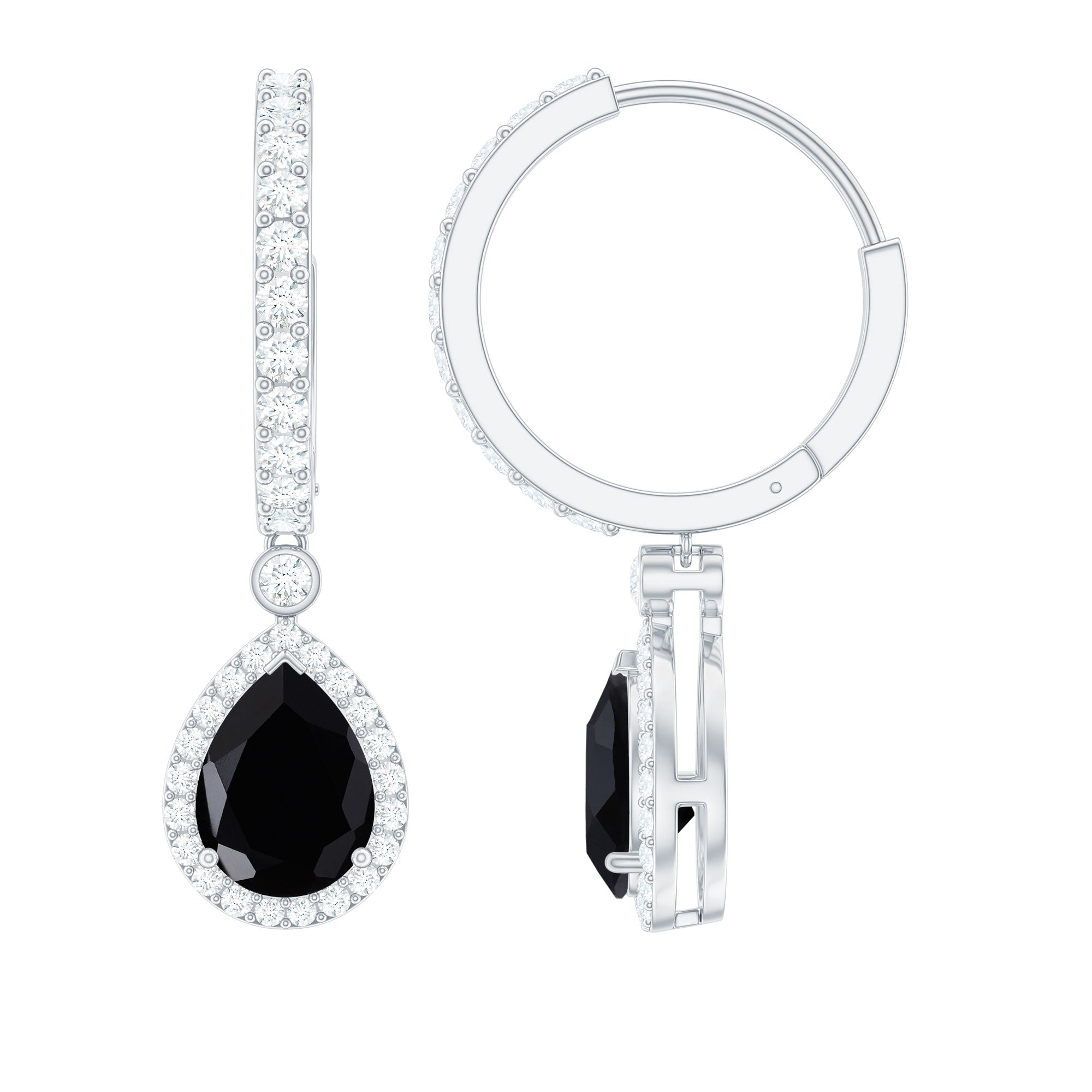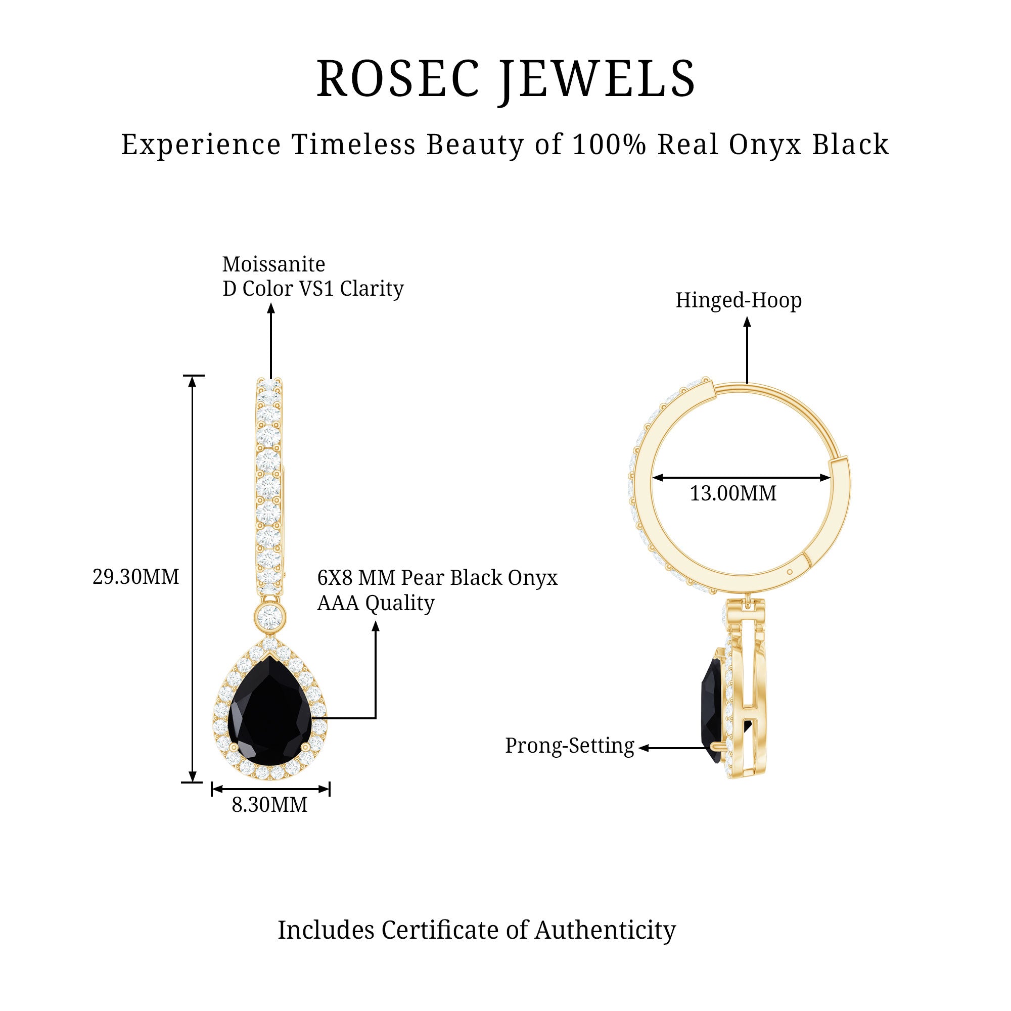Eye-catching and unforgettable, these Black Onyx Drop Earrings are the perfect blend of bold elegance and modern style. The deep 6X8 mm Black Onyx in a Pear Shape steals the show, surrounded by a sparkling Moissanite Halo that adds just the right amount of shimmer. The Hinged hoop makes them easy to wear while keeping a sleek look that suits any occasion, from casual brunches to glamorous evenings out. These Black Onyx Earrings move gracefully, catching the light and drawing attention with every turn. These Teardrop Earrings come ready to gift in a stylish jewelry box, making them an ideal surprise for someone special or a treat for yourself. Their versatile design lets you pair them with both understated outfits and statement ensembles, adding instant sophistication. Perfect for those who love jewelry that speaks volumes without saying a word, these Black and White Earrings combine timeless beauty with contemporary flair. Make every moment sparkle and elevate your style effortlessly with a pair that is as confident and unique as you are.