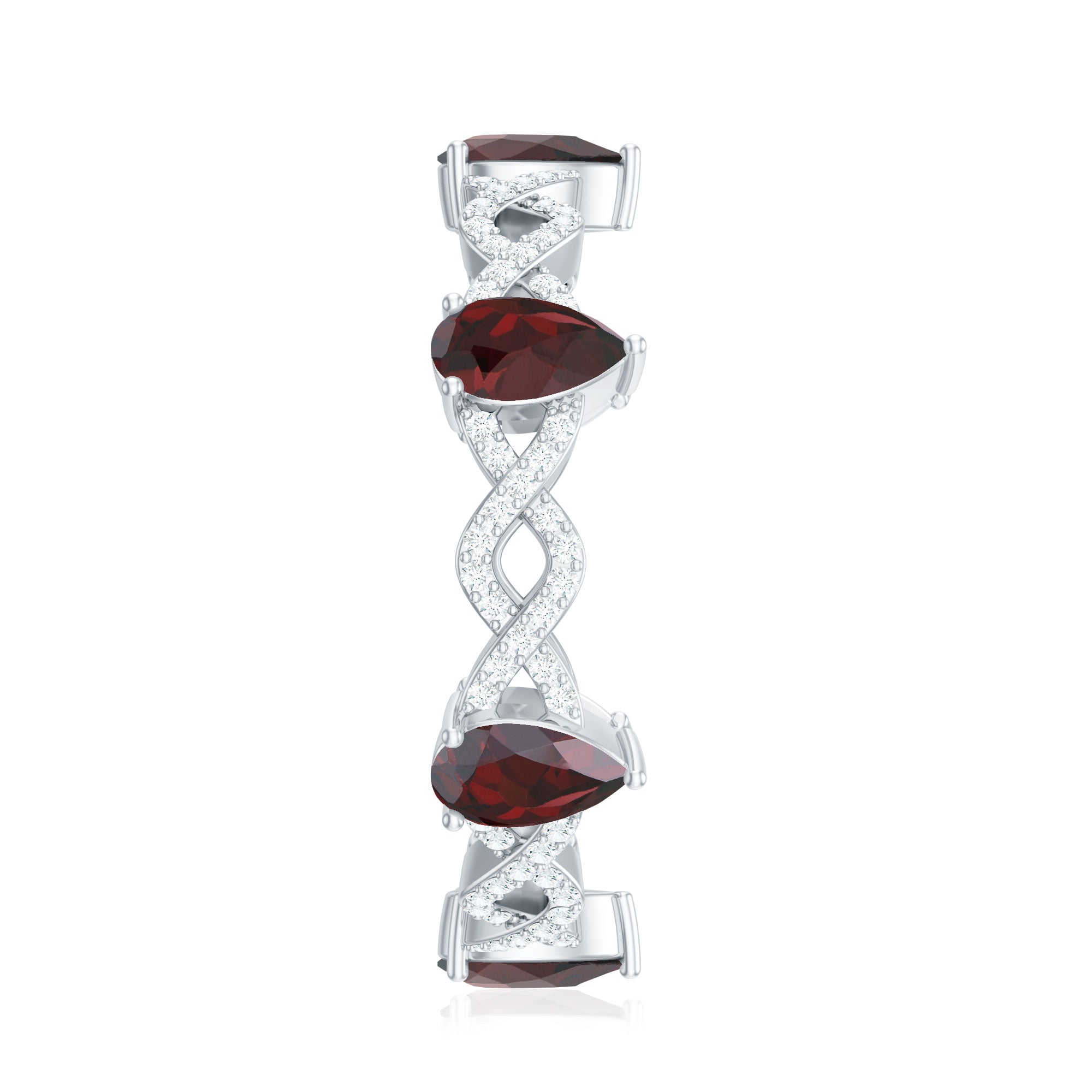 Natural Pear Shape Garnet Diamond Eternity Ring with Crossover Shank