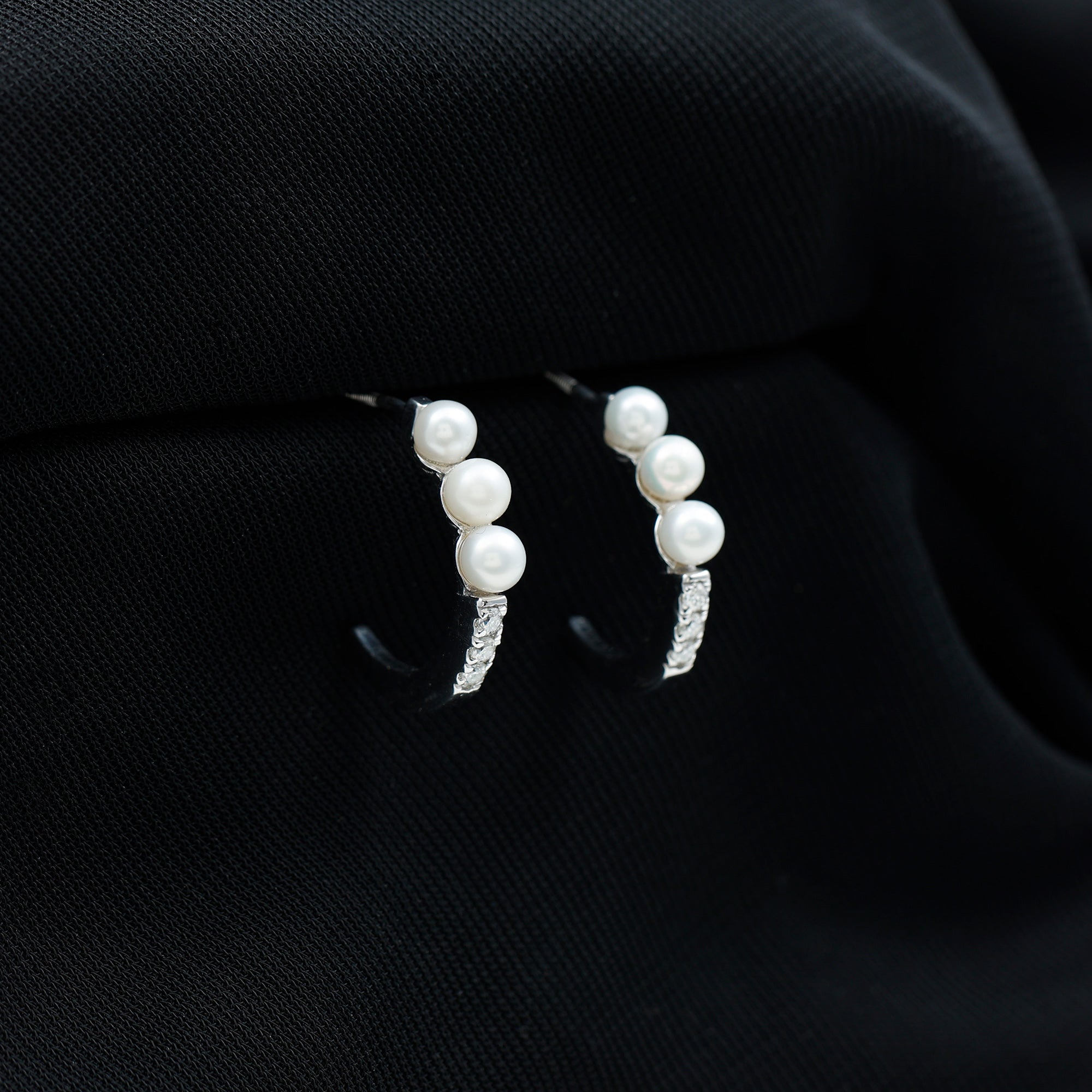 Designed for the woman who believes in quiet luxury, these Freshwater Pearl Hoop Earrings are a stunning combination of minimalism and designer artistry. Crafted with care in sterling silver plated with white gold, they feature luminous round shaped freshwater pearls that sit gracefully as focal stones with moissanite nestled at the base, adding just the right hint of brilliance. The C hoop silhouette of these Half Circle Earrings is sleek and contemporary, yet it carries a timeless charm that makes it versatile for both everyday wear and special occasions. Comes with screw back closure, these Unique Pearl Earrings are ideal for those born in June as a birthstone jewelry. Whether a treat to yourself or a gift for a loved one, these Designer Pearl Earrings are sure to take any look at next level and a perfect pick for go-to jewelry.