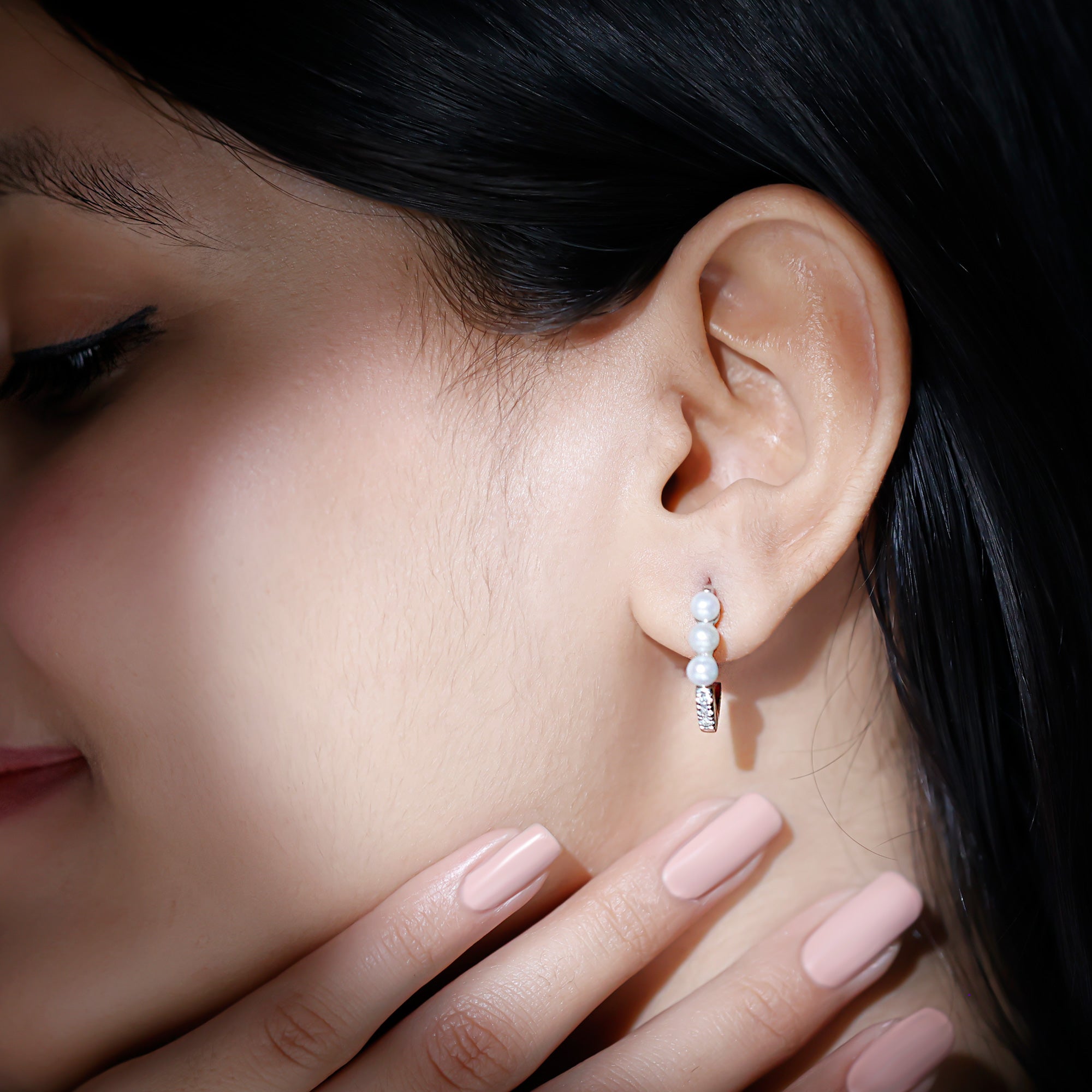 Natural Pearl Designer Hoop Earrings with Moissanite