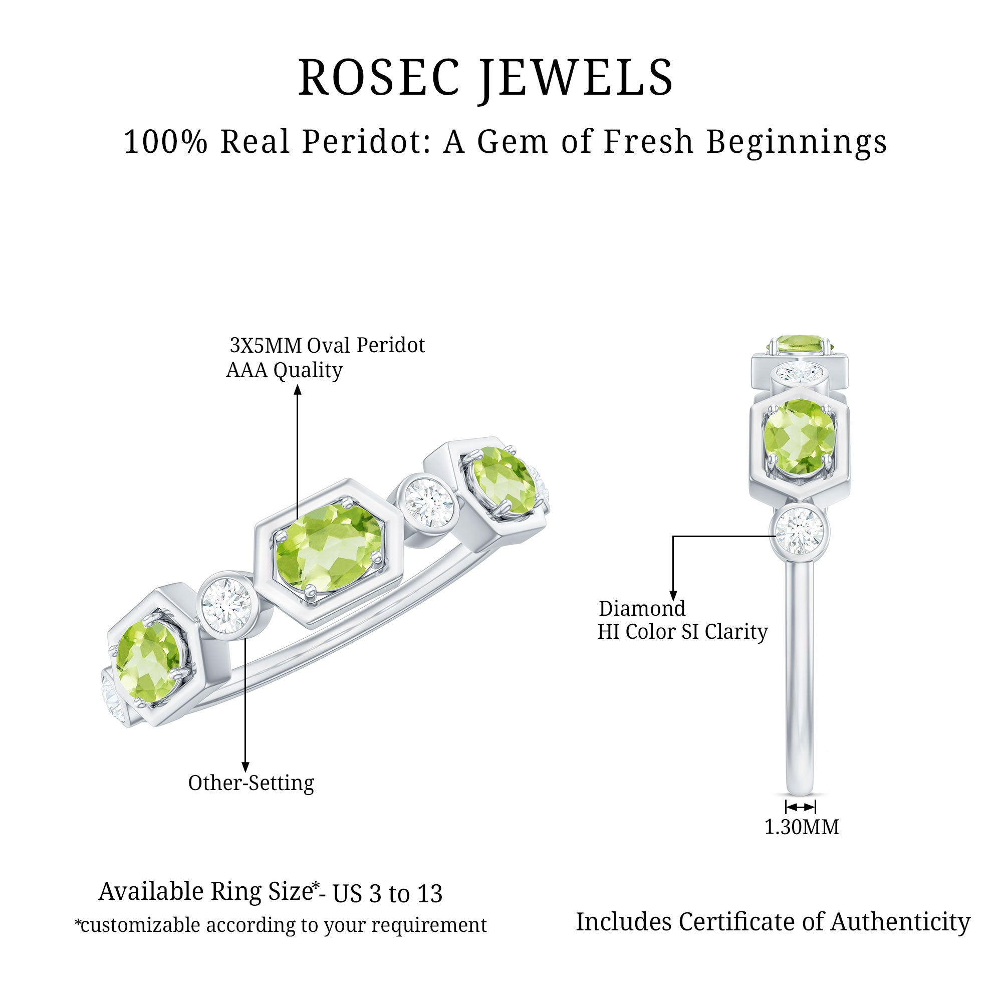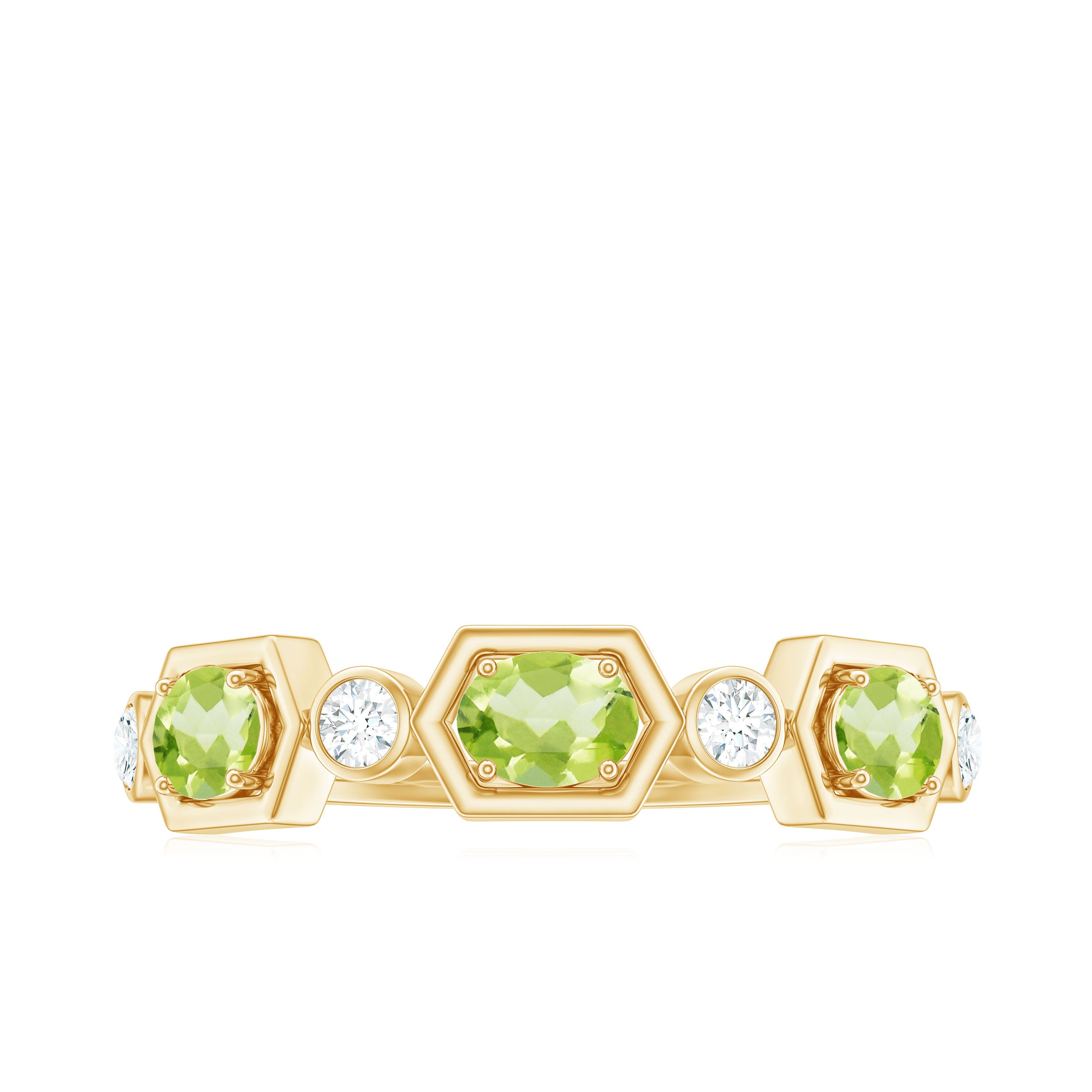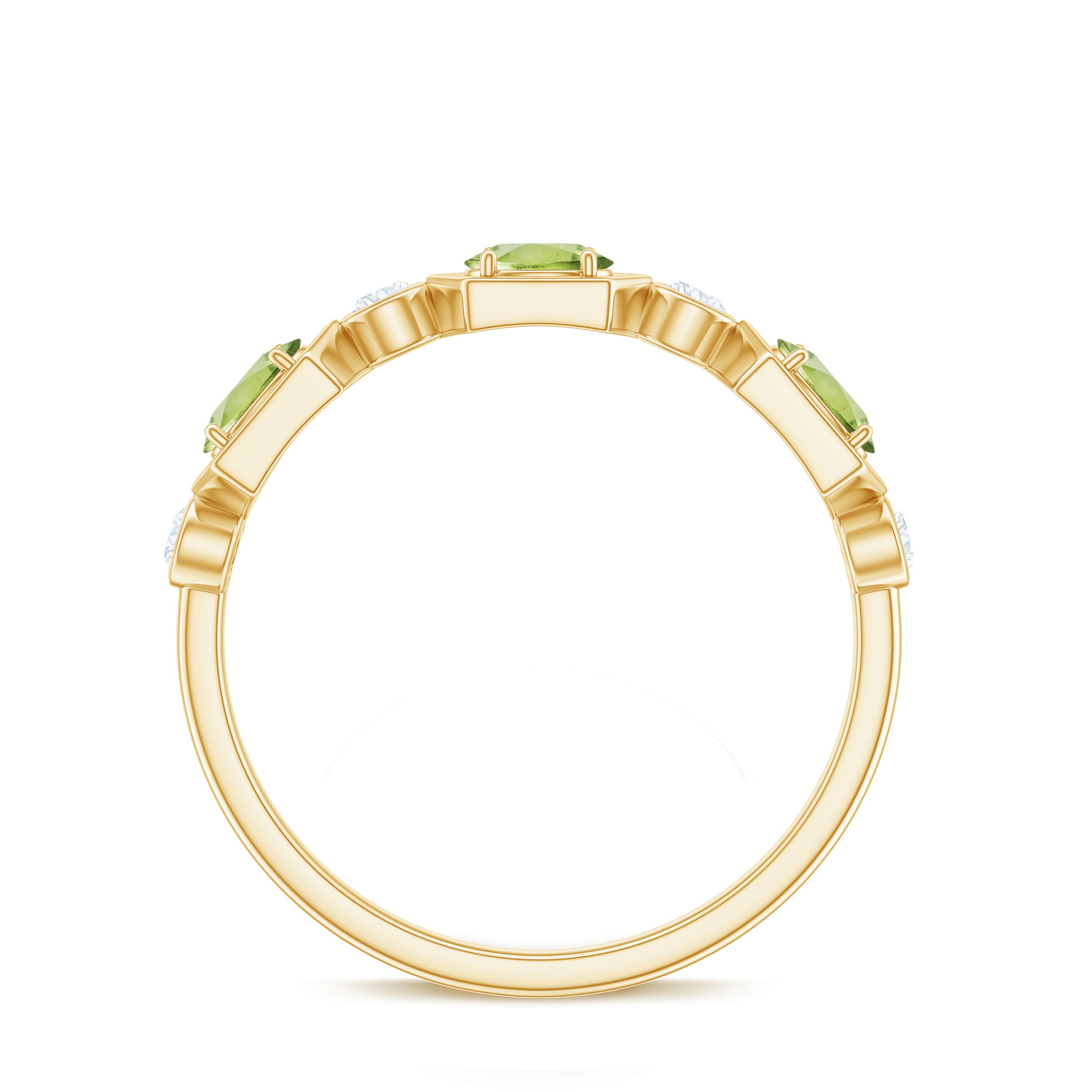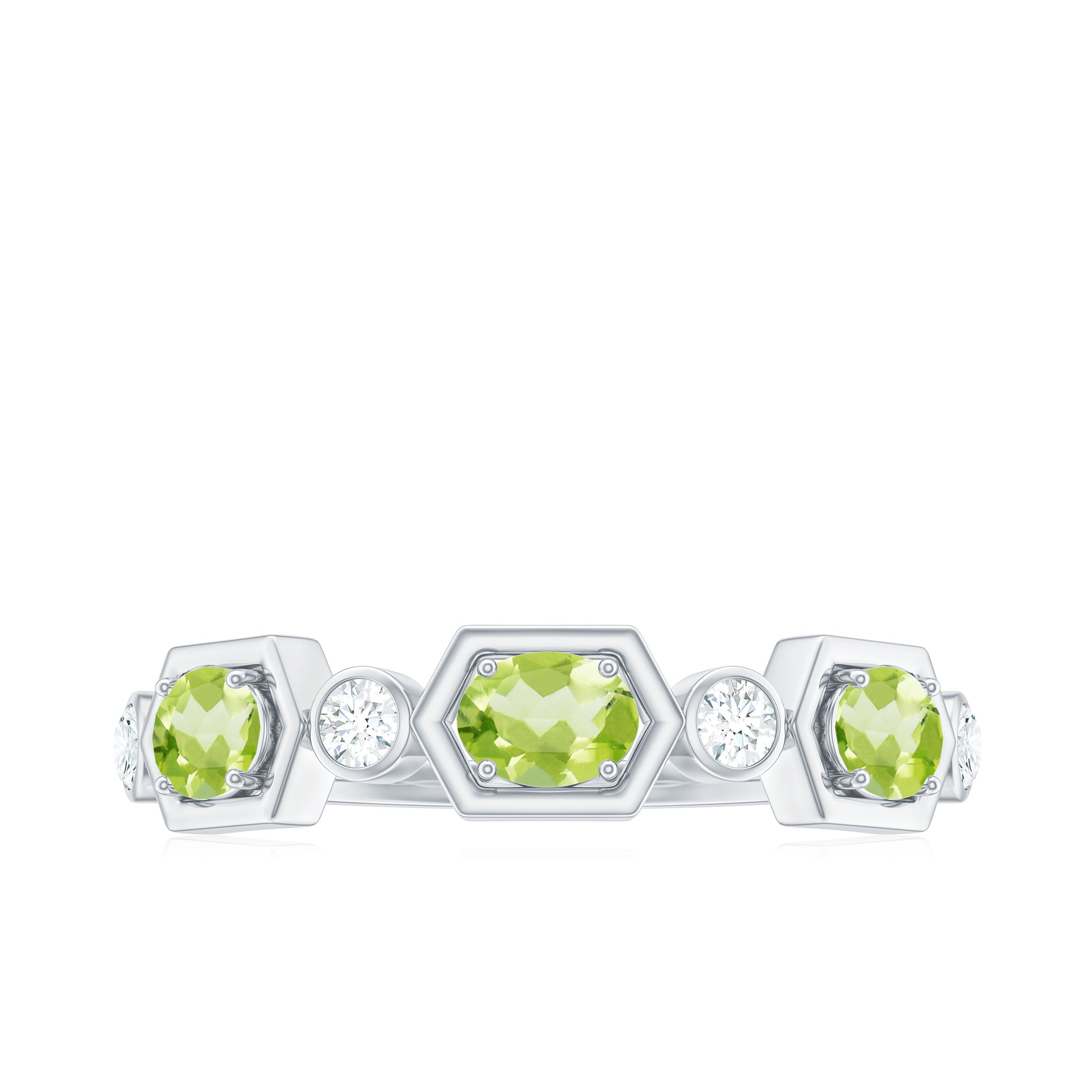 Experience the perfect blend of elegance and brilliance with this Peridot and Diamond Half Eternity Ring, a divine decoration for eternal love.