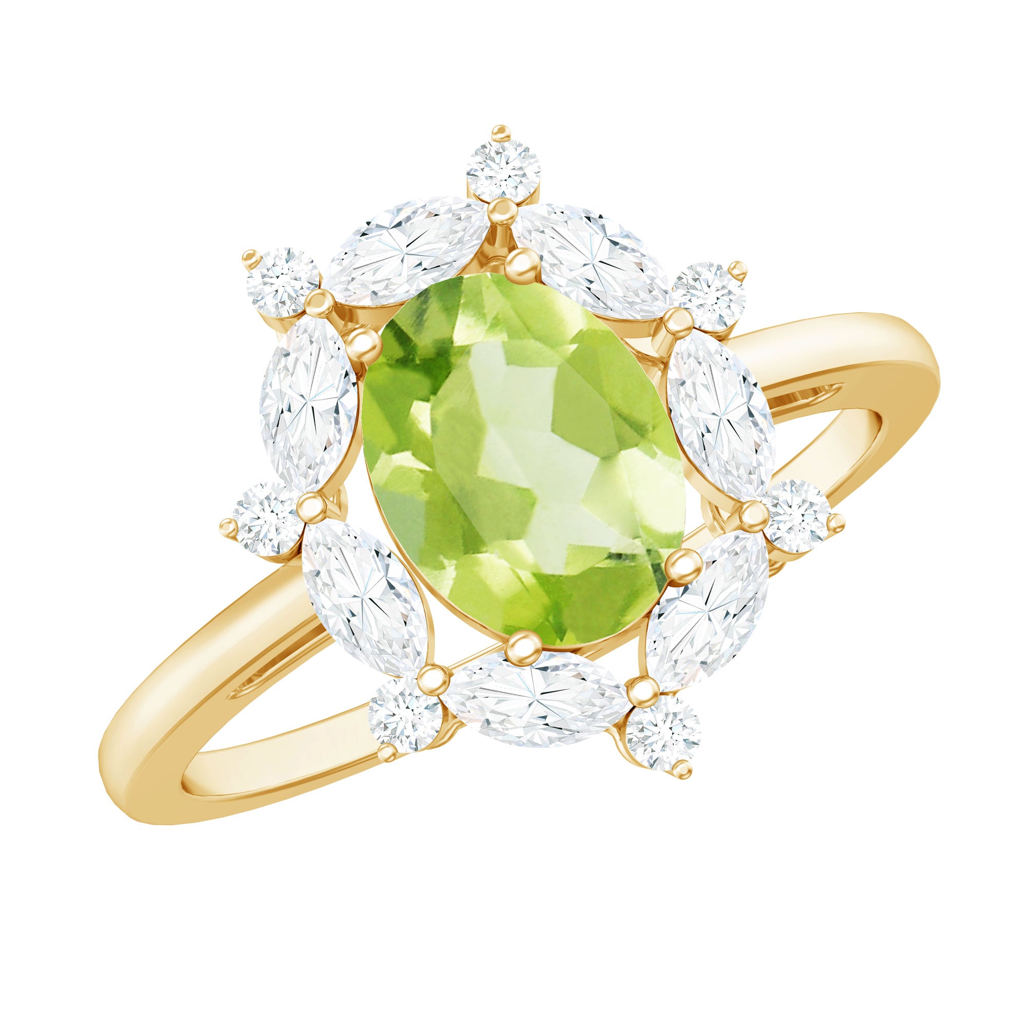 Designer Peridot Engagement Ring with Moissanite Halo