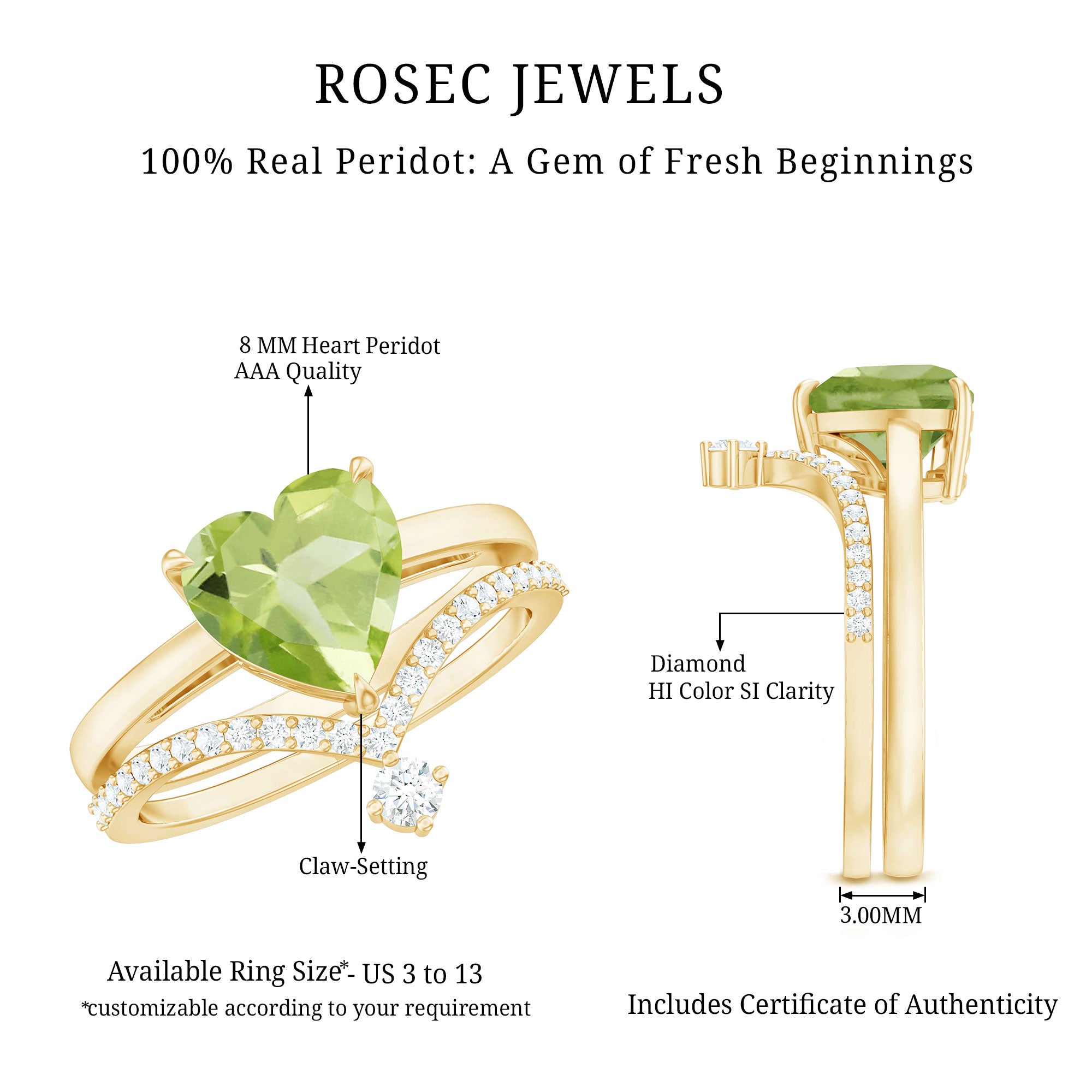 Embrace the natural beauty of love with this exquisite Heart Shape Peridot Ring Set, adorned with dazzling Diamond, a symbol of commitment.