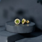 Natural Peridot Stud Earrings with Diamond Halo