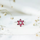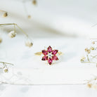 Natural Pink Tourmaline Flower Ring with Moissanite