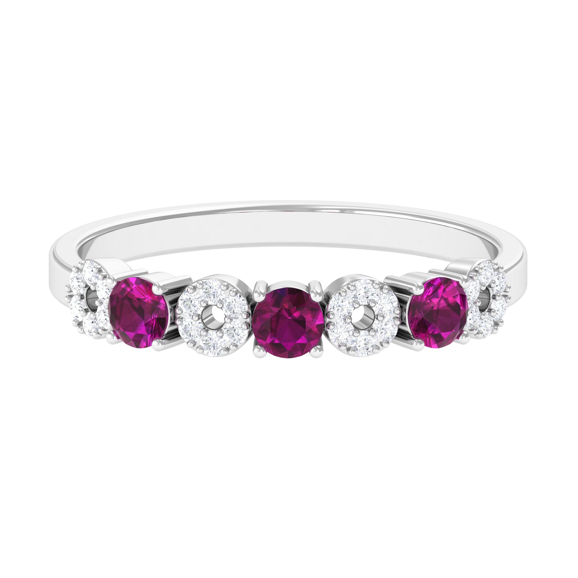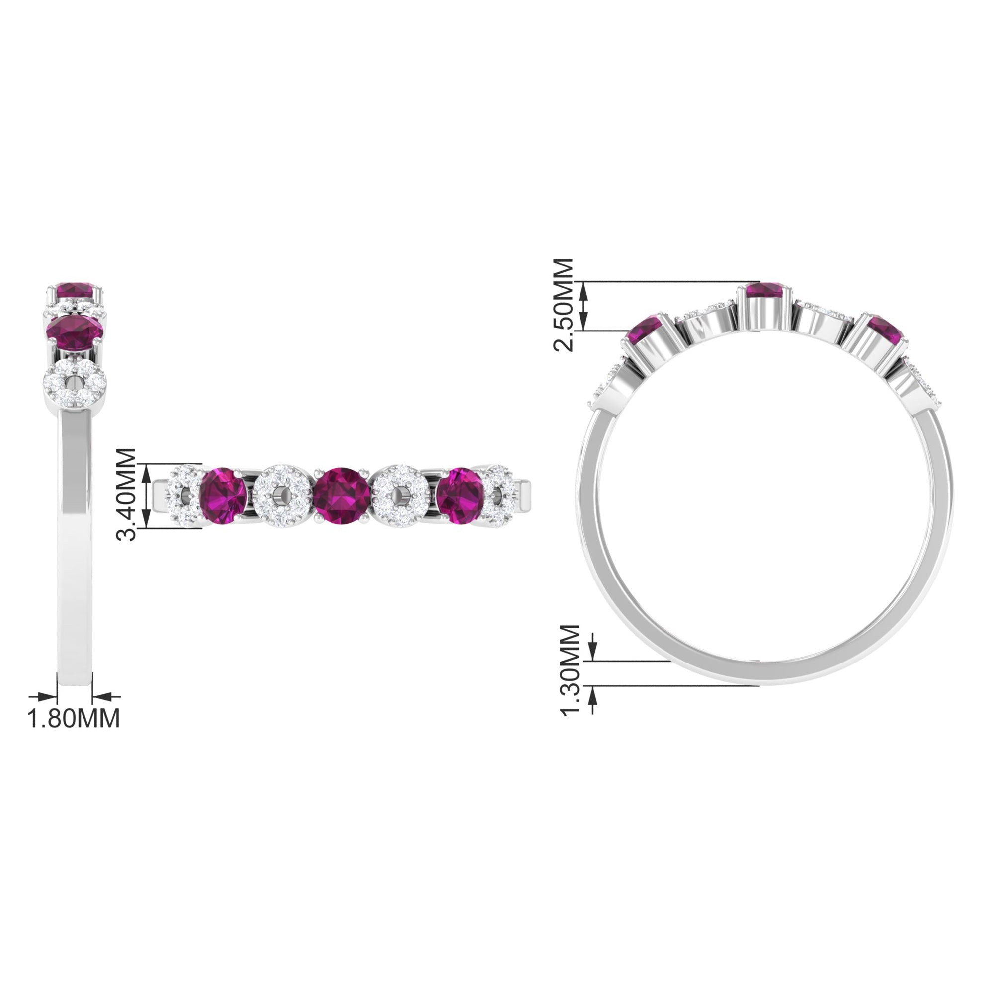 Embrace the captivating beauty of this Rhodolite and Diamond Half Eternity Ring. The half eternity design symbolizes eternal love and commitment, making this ring a meaningful token for special occasions or anniversaries. Revel in the timeless elegance of this Rhodolite and Diamond ring, a symbol of your cherished affection and everlasting devotion.