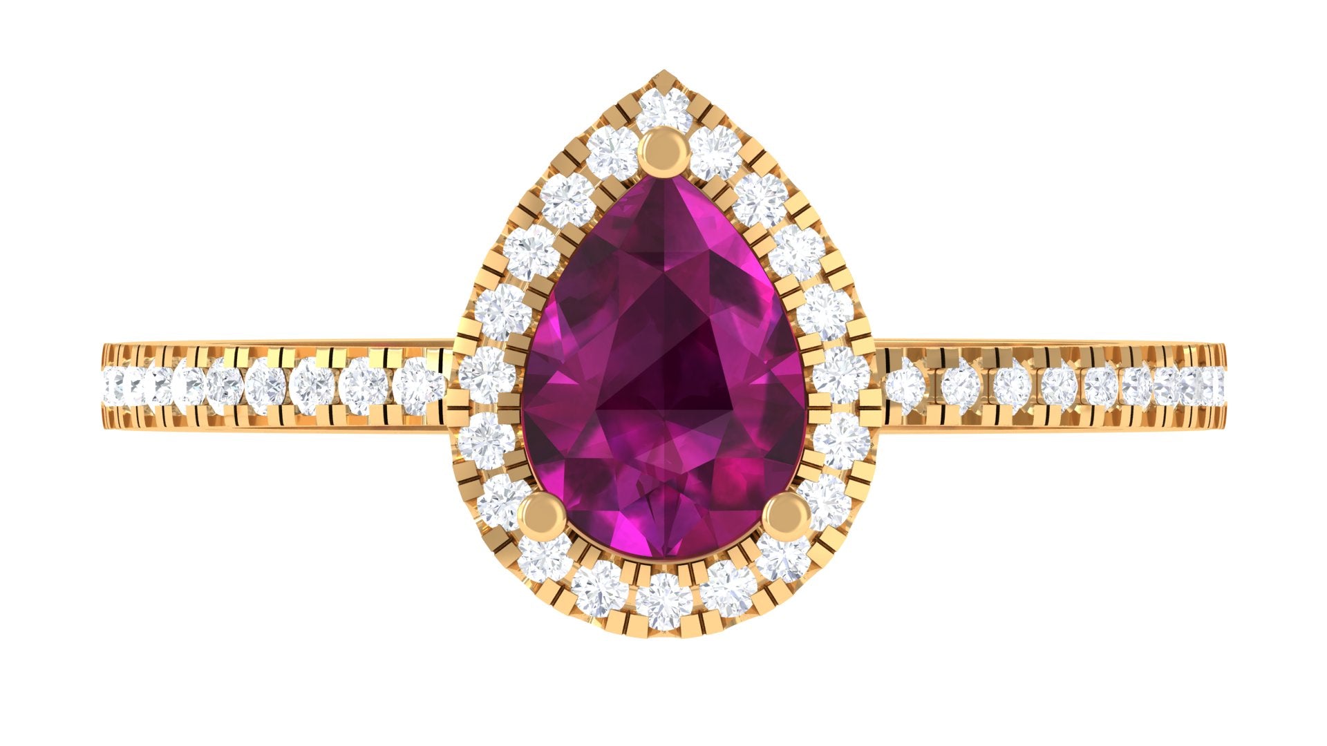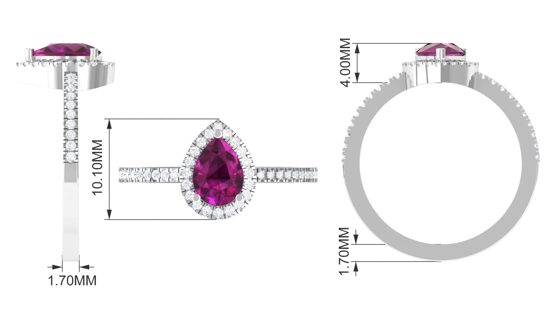 Natural Rhodolite Teardrop Halo Ring with Diamond