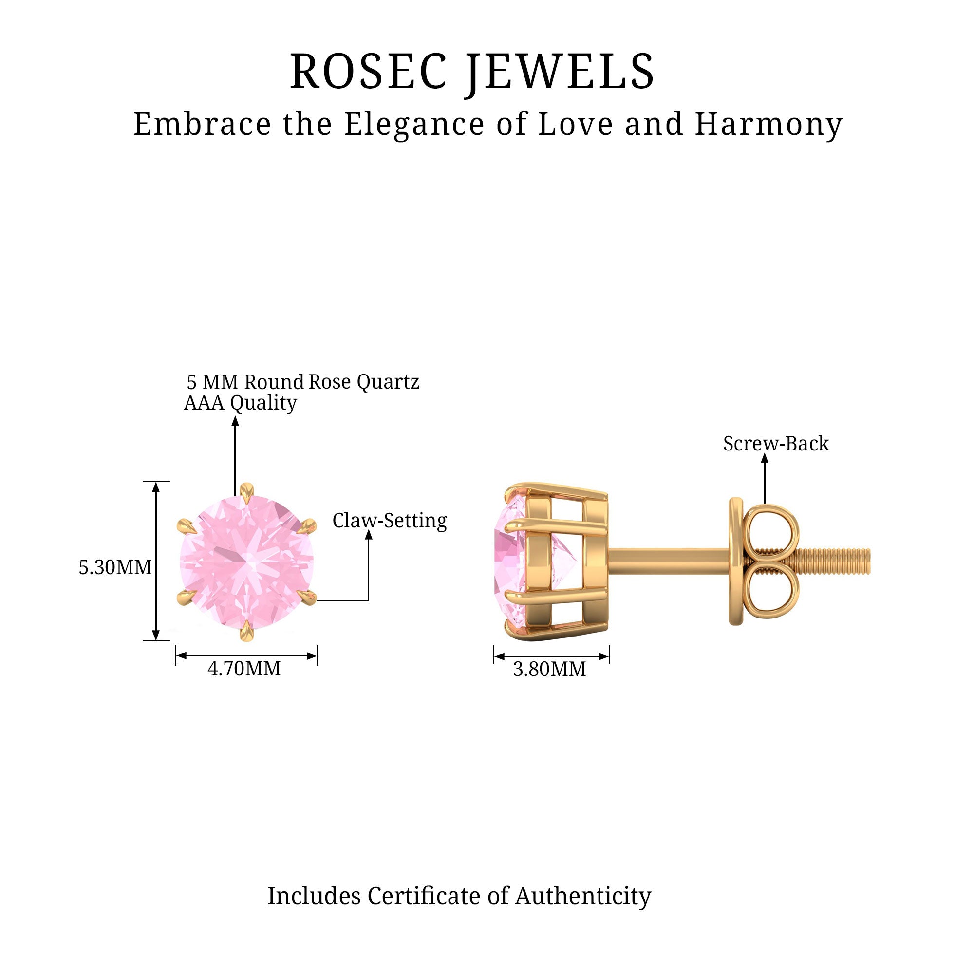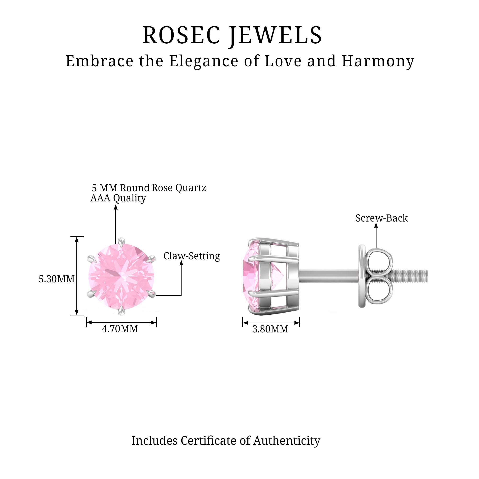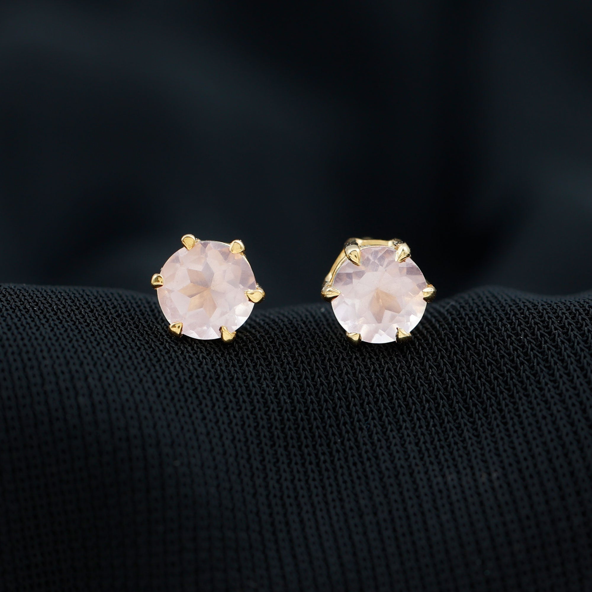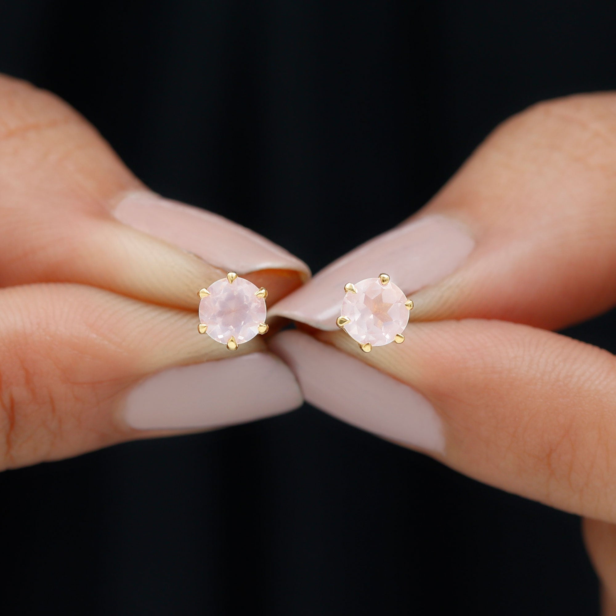 Elevate your style and dazzle with these Beautiful Solitaire Stud Earrings, featuring enchanting round shape Rose Quartz gemstones elegantly set in a secure 6 Claw Prong Setting. These earrings are a perfect choice for adding a touch of elegance and romance to your look, making you shine with every wear.