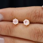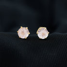 Natural Rose Quartz Solitaire Stud Earrings in 6 Claw Prong Setting