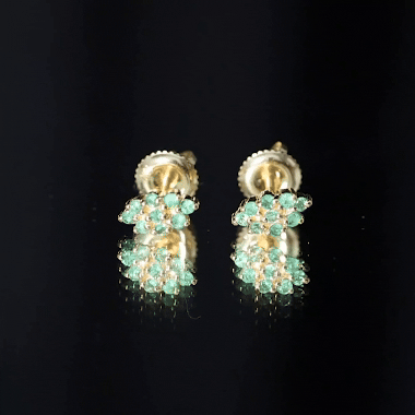 Natural Round Emerald Cluster Stud Earrings With Screw Back