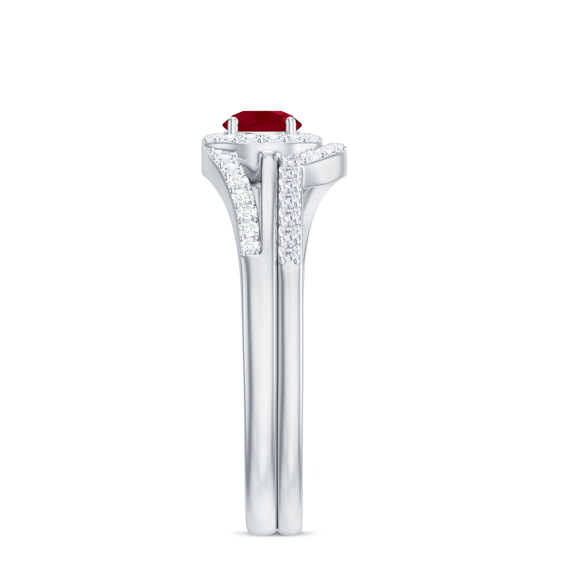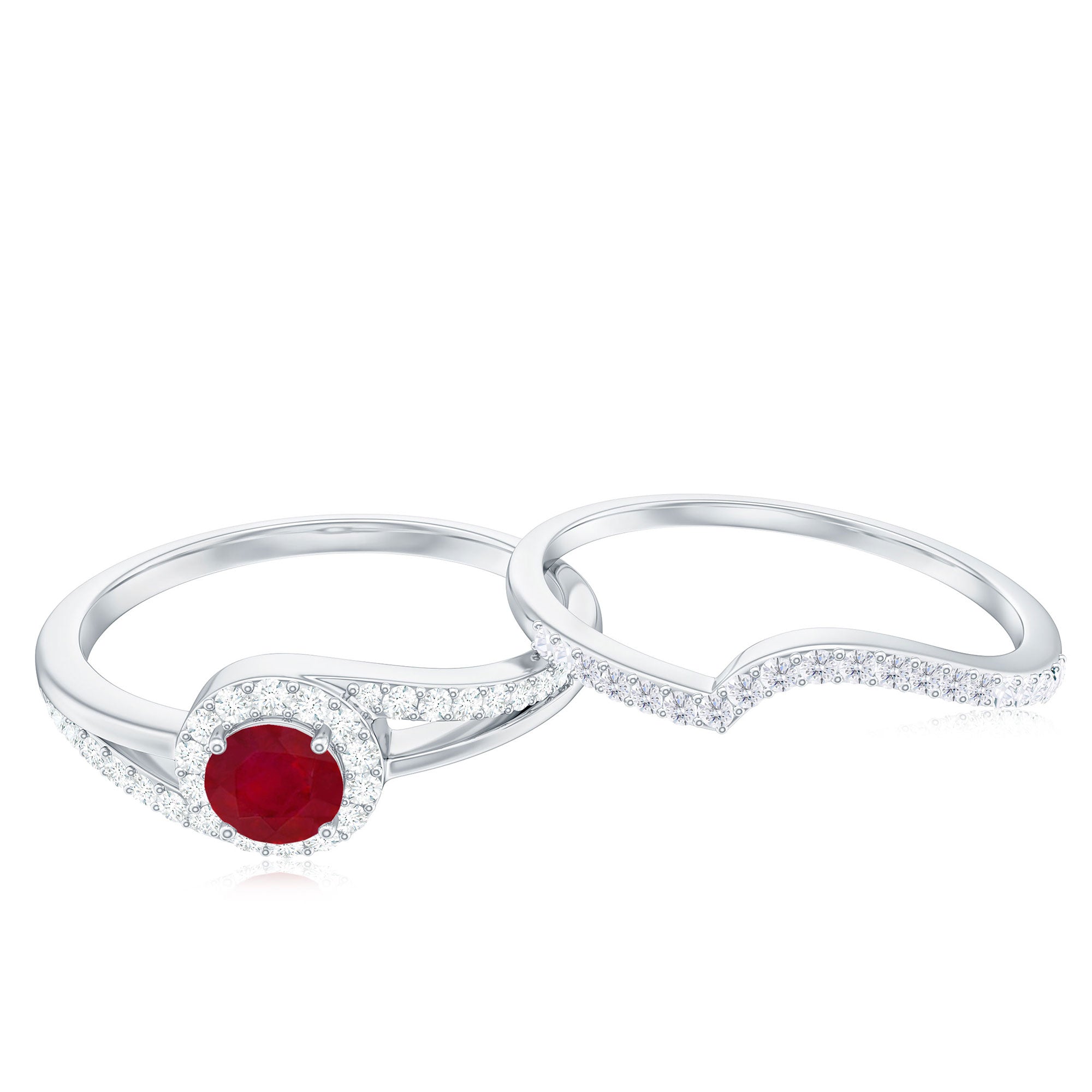 Natural Ruby and Diamond Minimal Bridal Ring Set