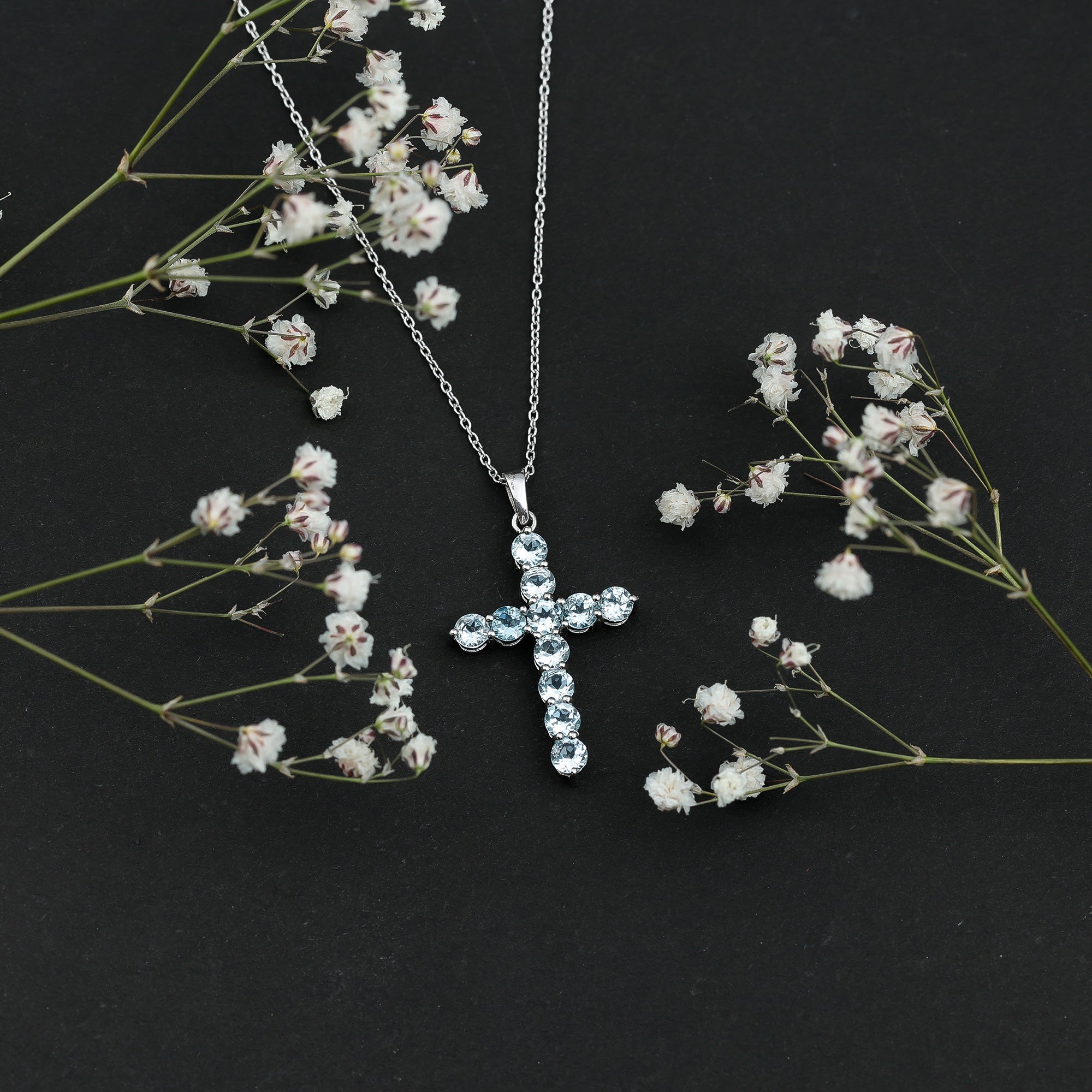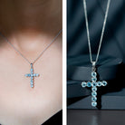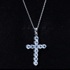 Natural Sky Blue Topaz Cross Pendant With Silver Chain