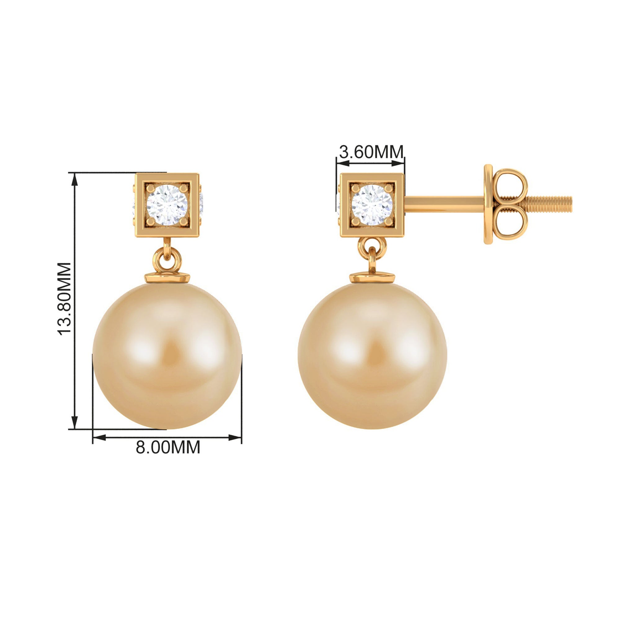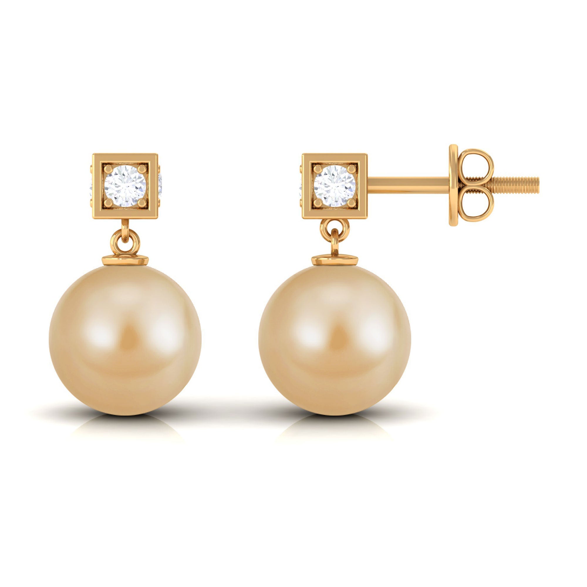 A spectacular and stunning Diamond South Sea Pearl Earring is embellished with a Round Diamond. The solitaire South Sea Pearl is captivating and attention-grabbing. Add oomph to your personality with this South Sea Pearl shimmering centerpiece.