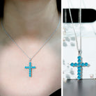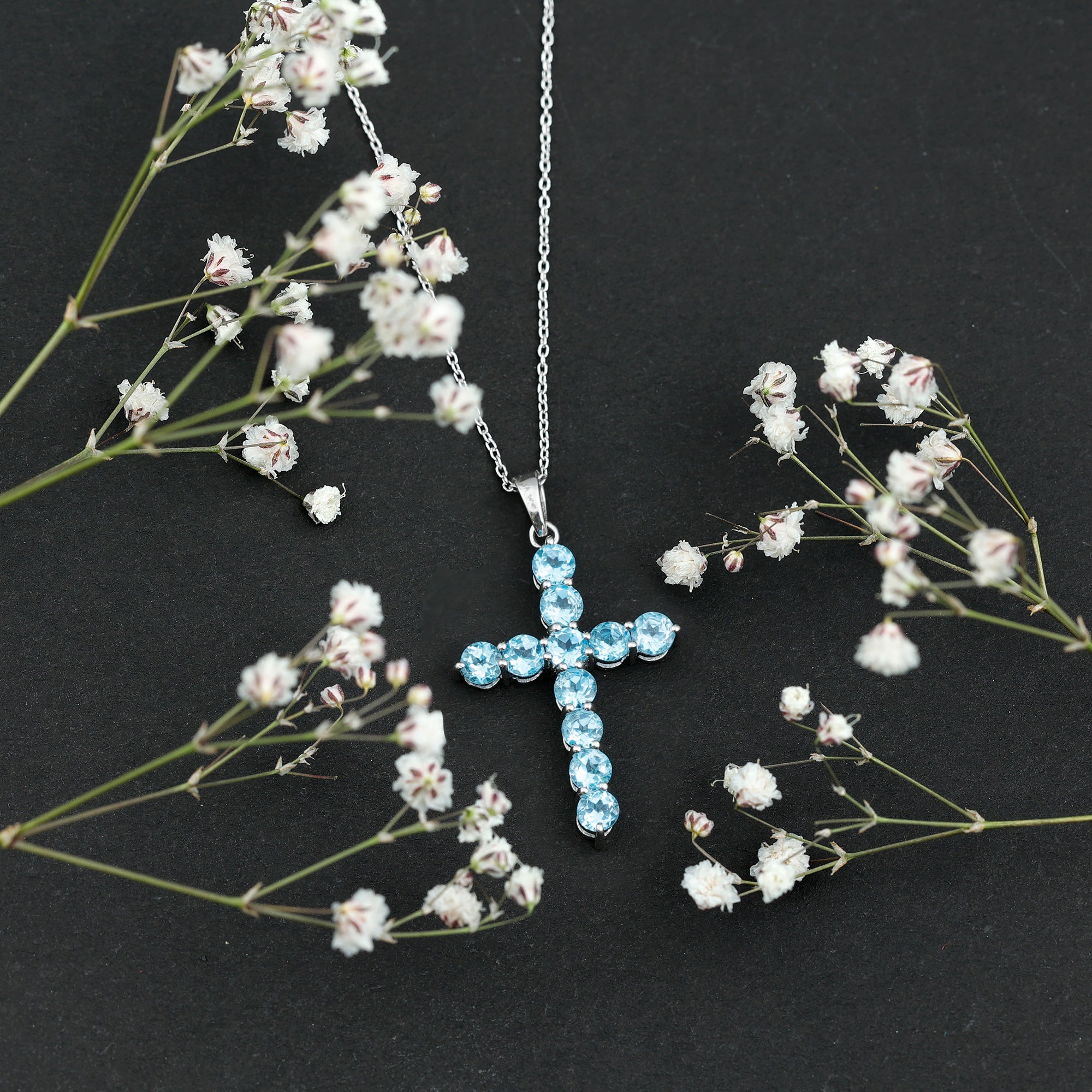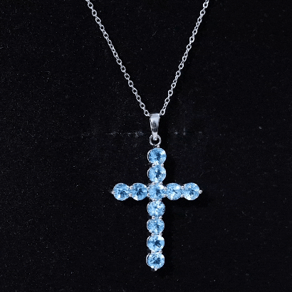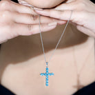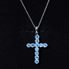 Natural Swiss Blue Topaz Cross Pendant Necklace with Chain
