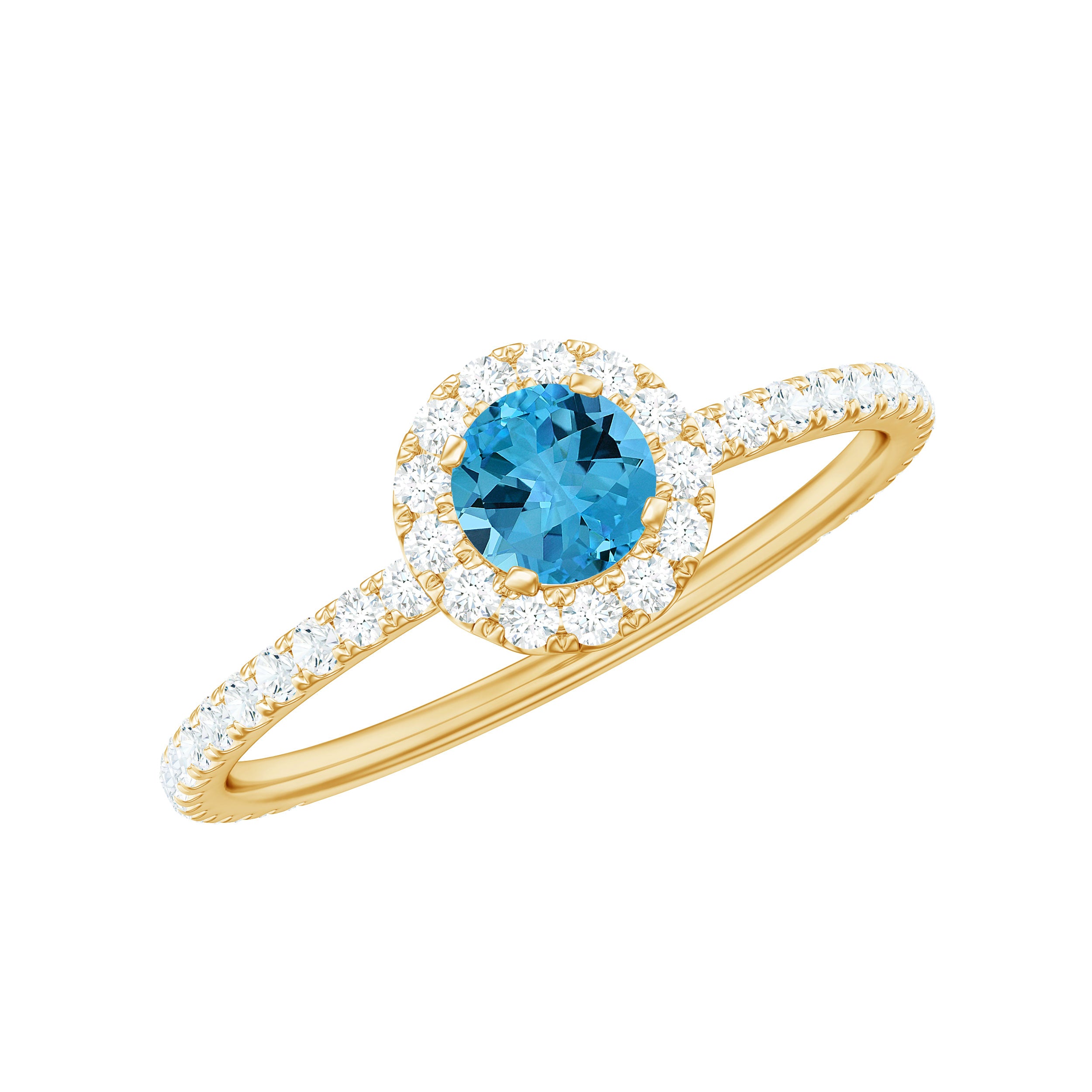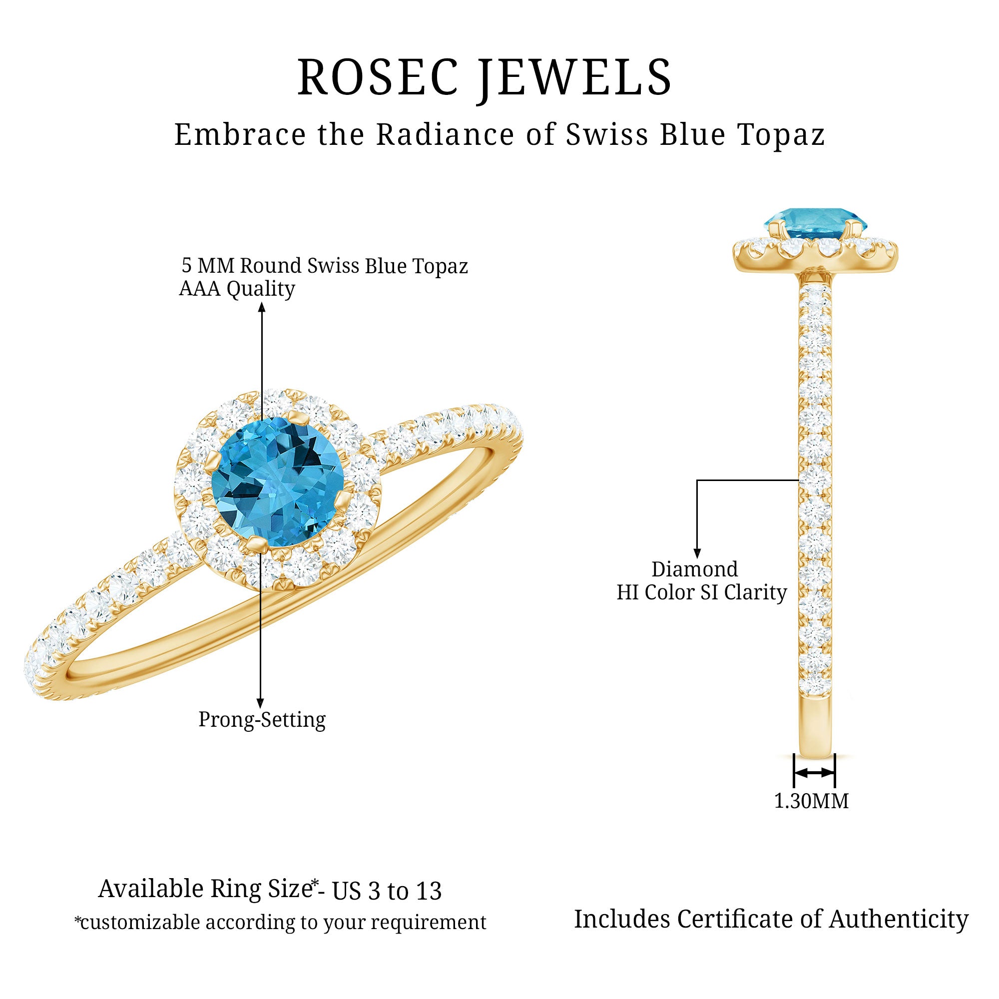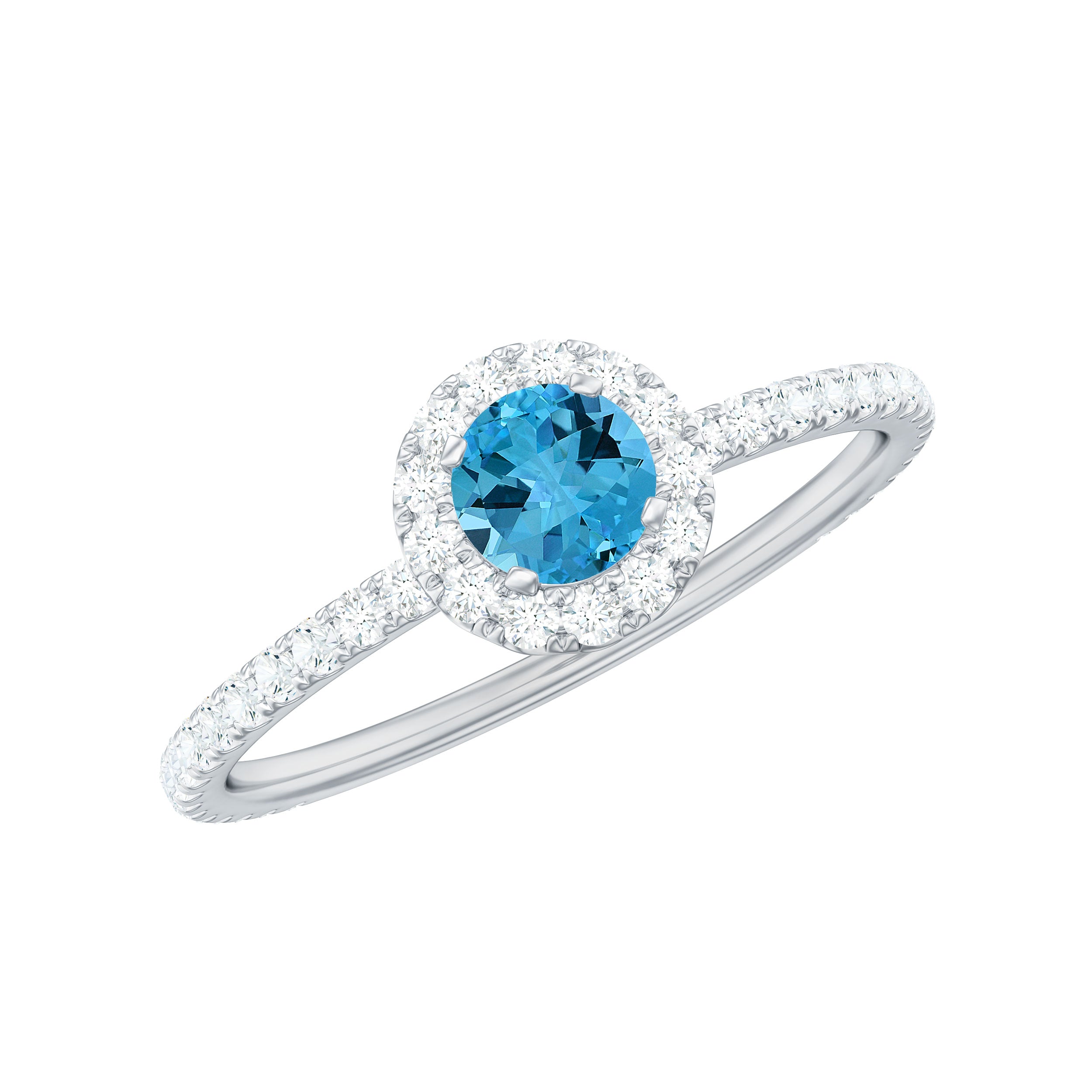 Natural Swiss Blue Topaz Halo Engagement Ring with Diamond
