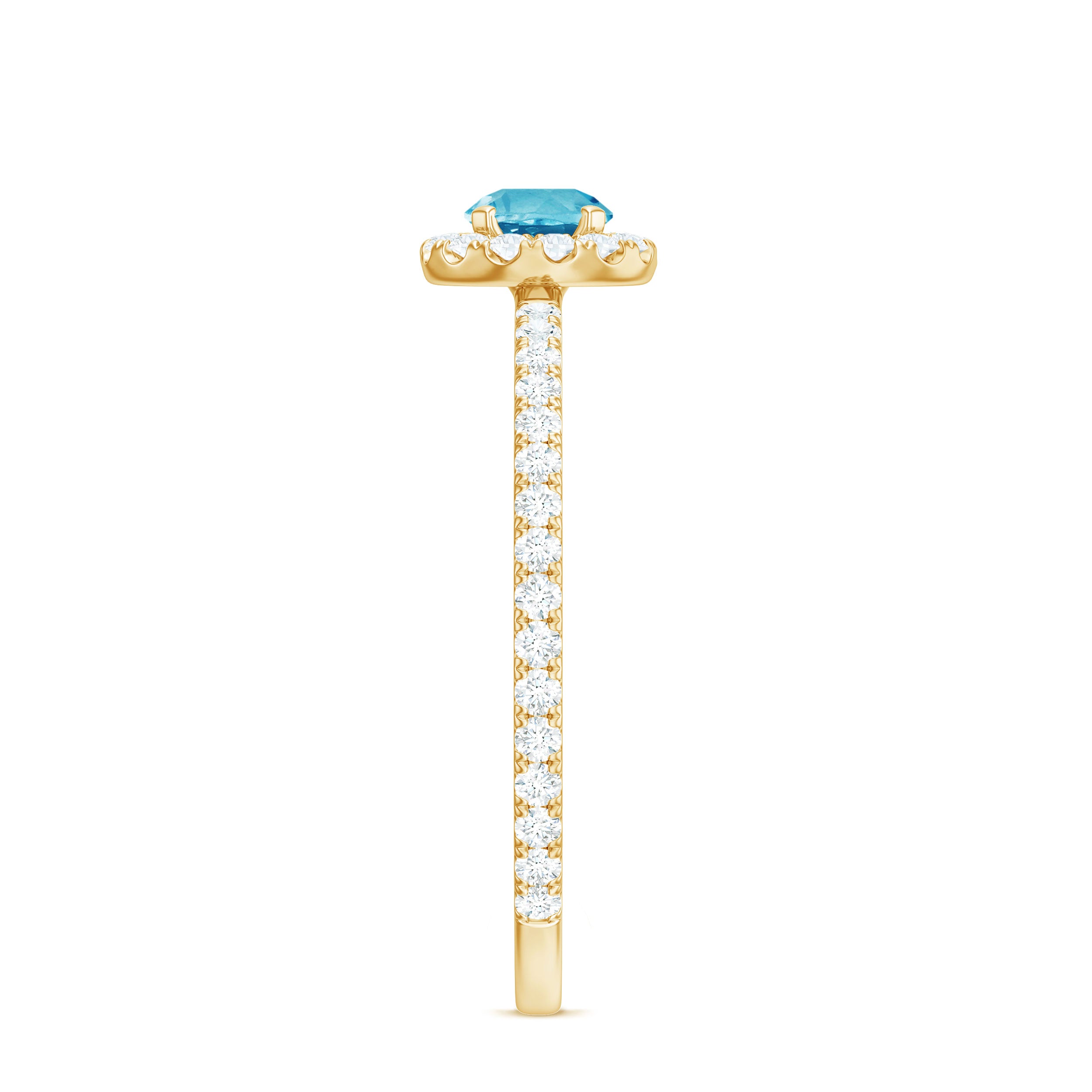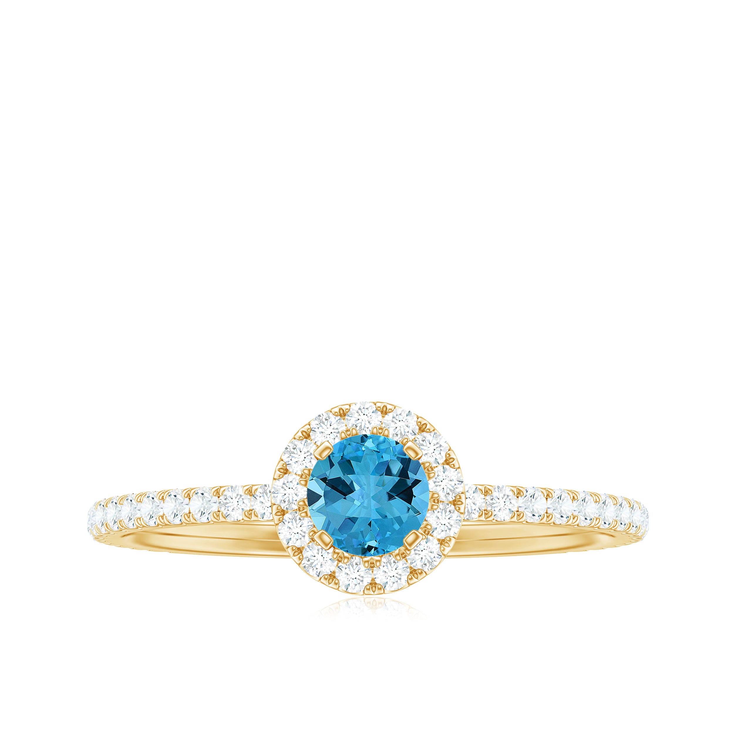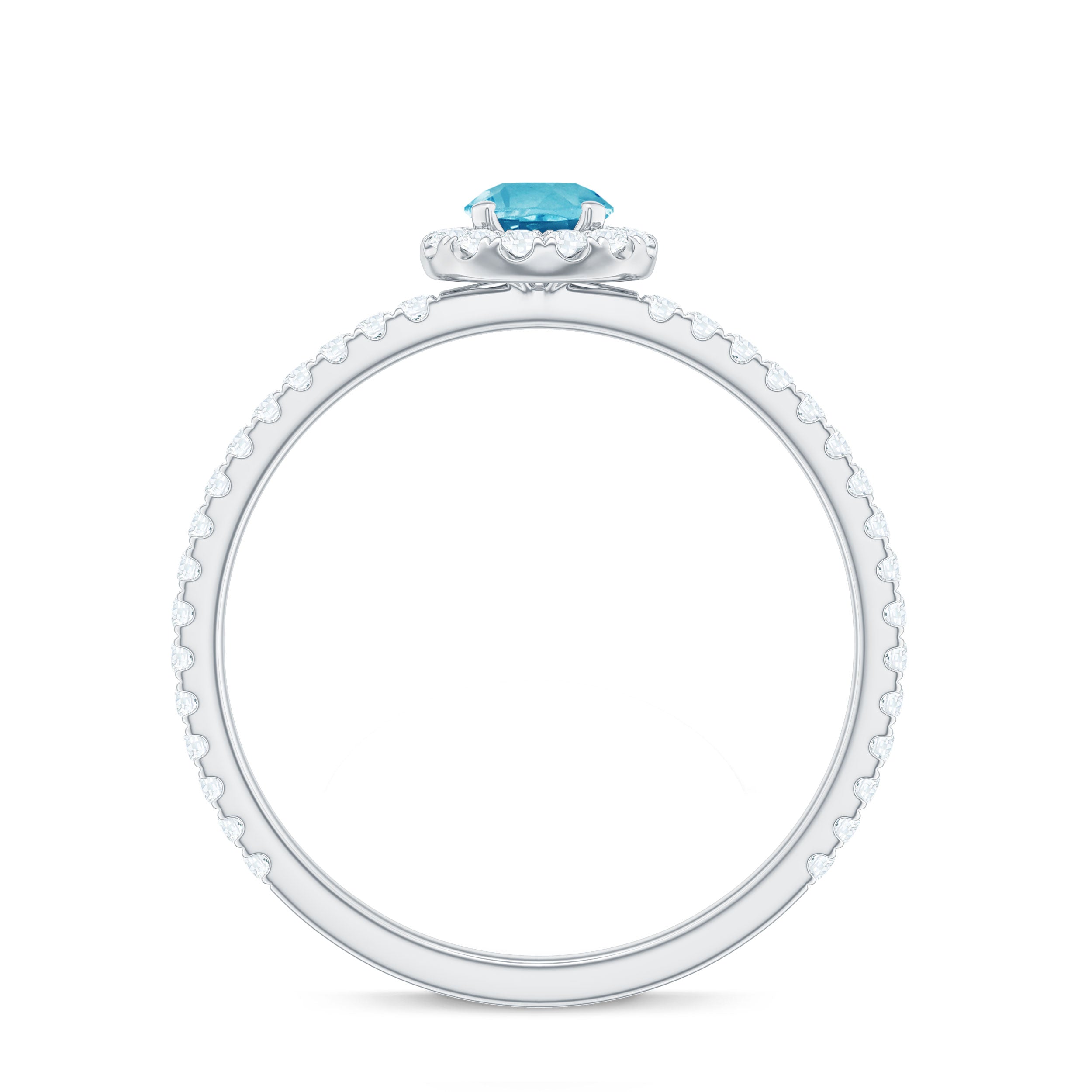 Natural Swiss Blue Topaz Halo Engagement Ring with Diamond