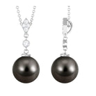 Natural Tahitian Black Pearl Dangle Pendant with Moissanite