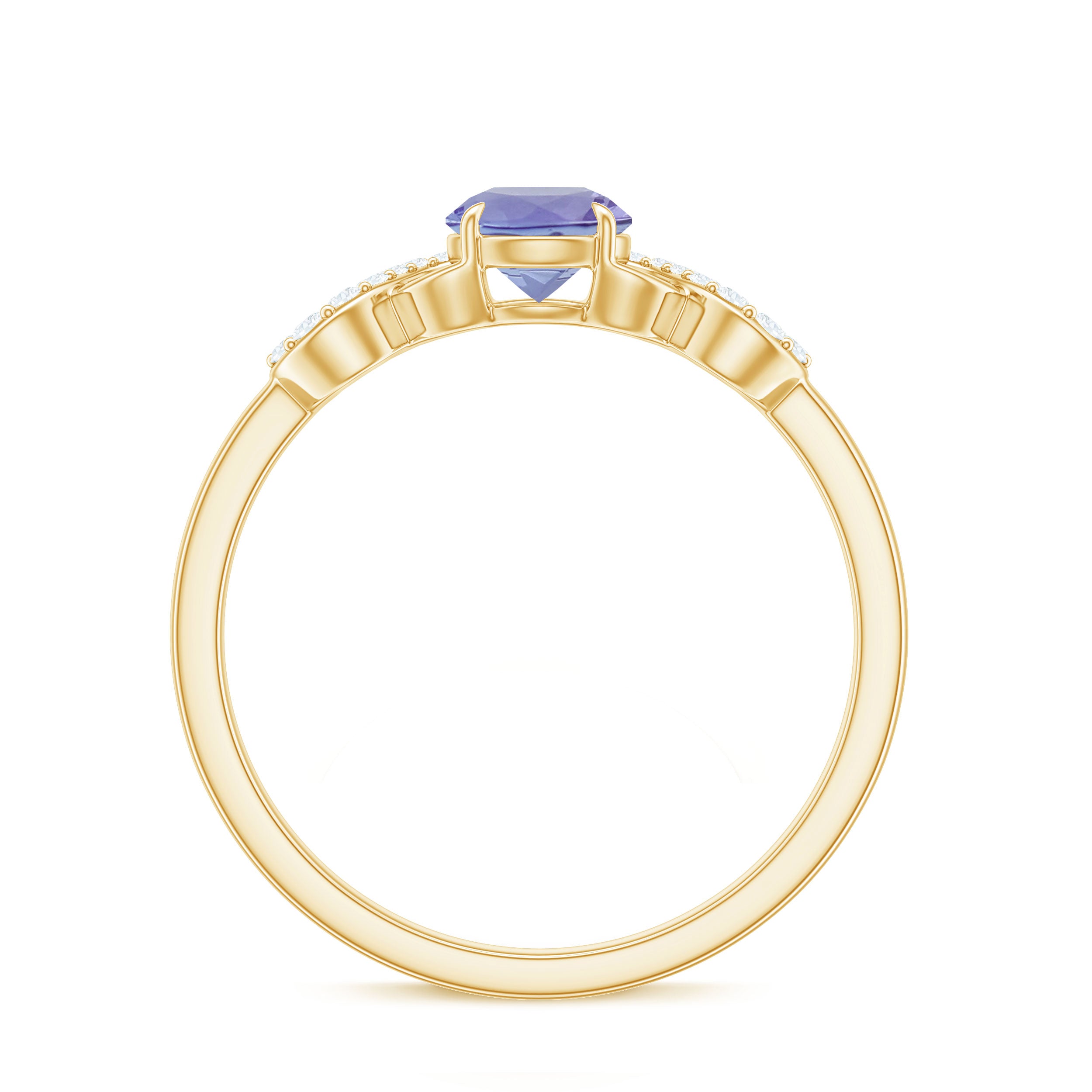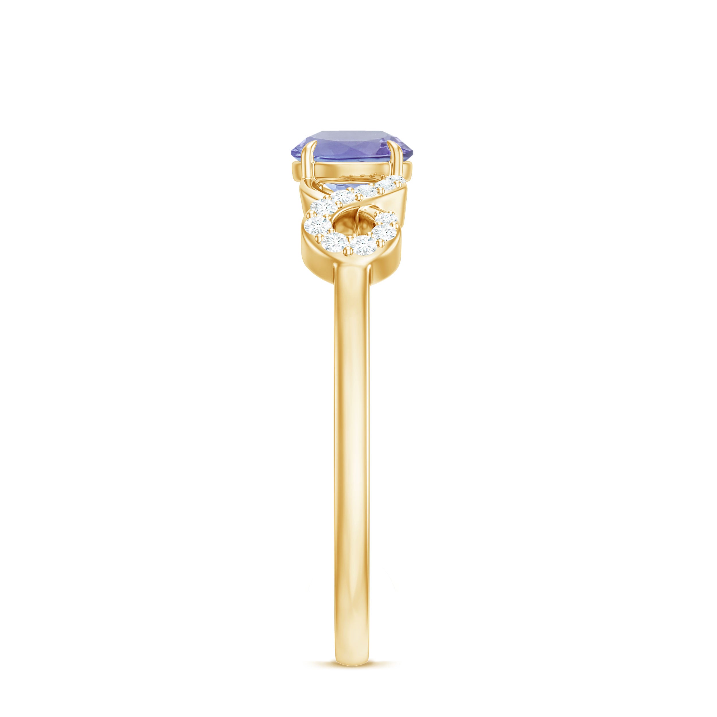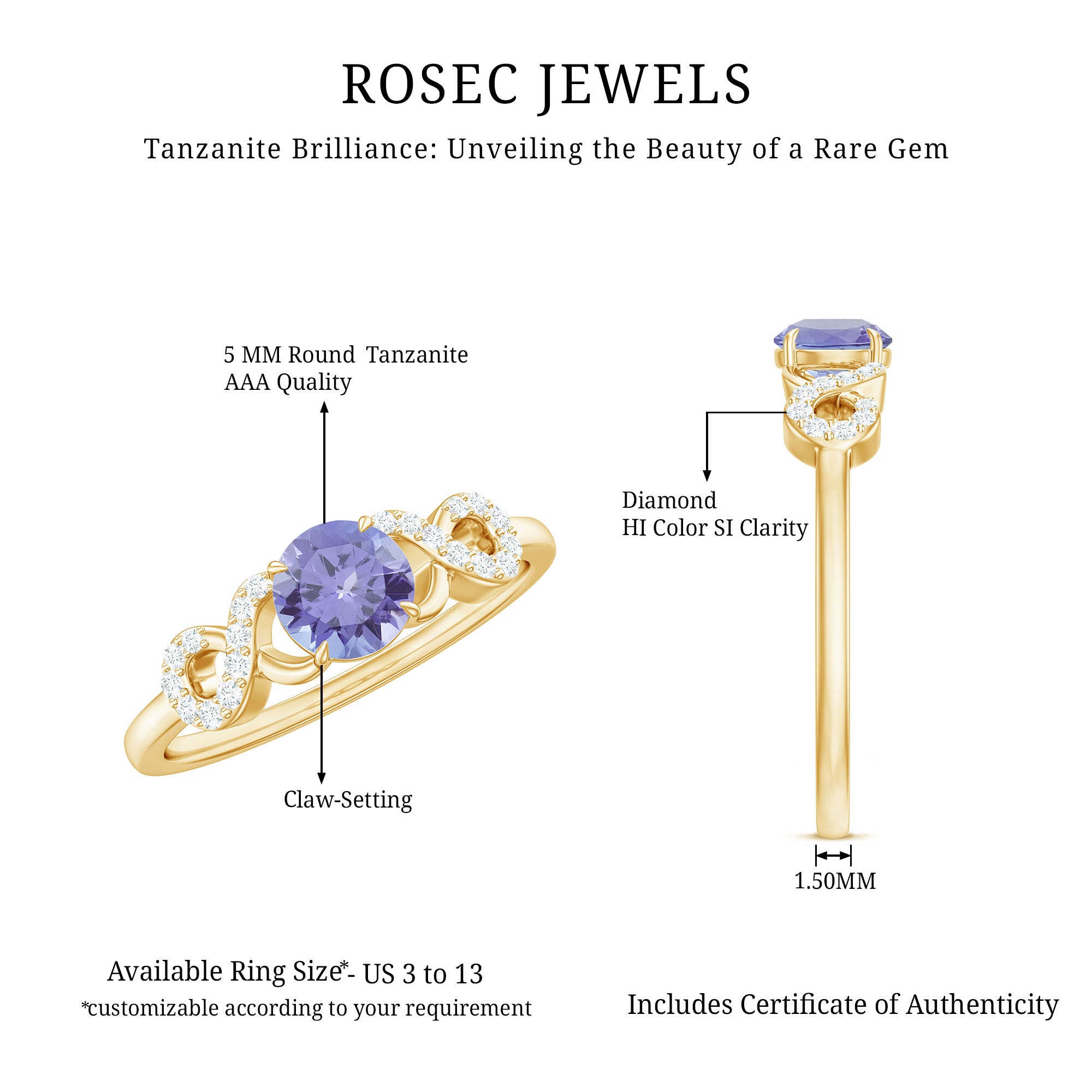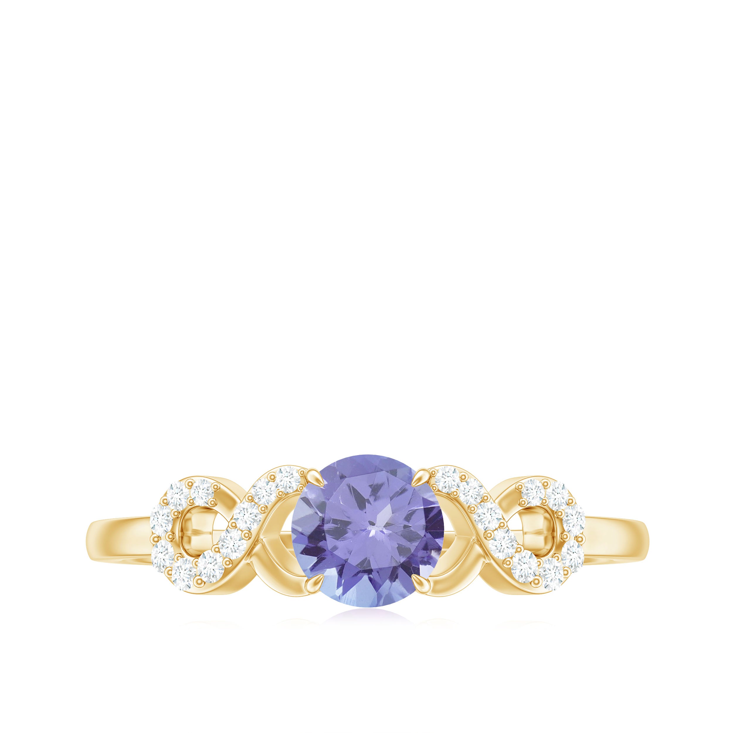 Spruce up your outfit with this elegant Solitaire Ring is decked with Round Shape Tanzanite in Claw Setting with Diamond on the infinity shank.