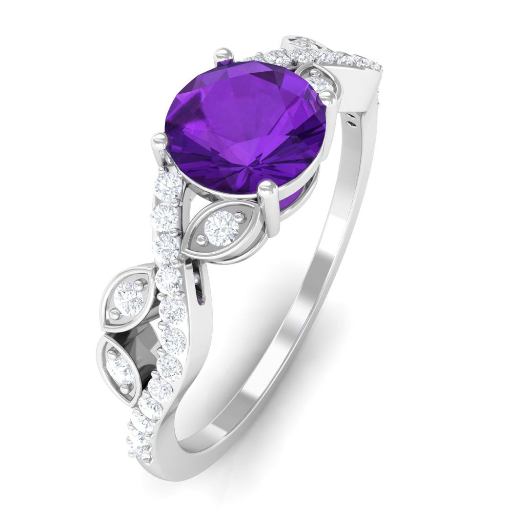 Nature Inspired Amethyst and Diamond Solitaire Engagement Ring