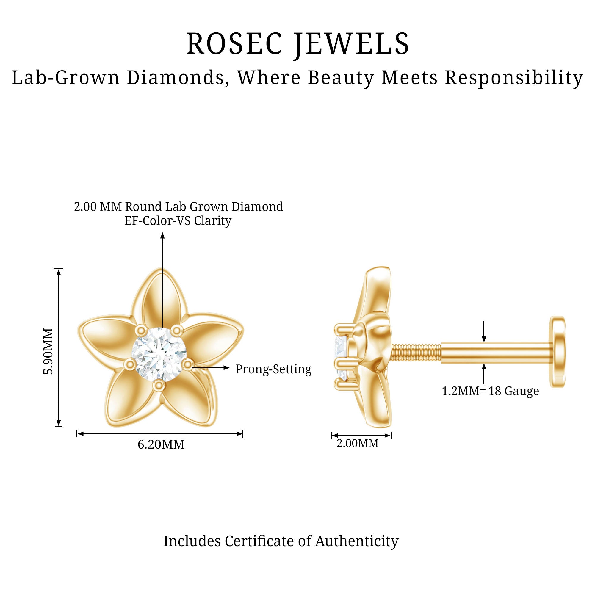 Inspired by nature – introducing the Diamond Earring! Breathtaking Round Diamond secured by Prong Setting studded on a floral design, which possesses a feminine glamour. This bling is all about that snug fit in your Cartilage, Helix, or Upper Lobe Piercing, the simple flat back closure will keep it locked in place.Whether you are brunching with the crew or spicing up date night, our Floral Earring is your ride-or-die accessory. Get ready to slay, and let the leaves do the talking!Make your special ones day extra-lit with this stunning Piercing Earring. Its the ultimate gift for birthdays or anniversaries.