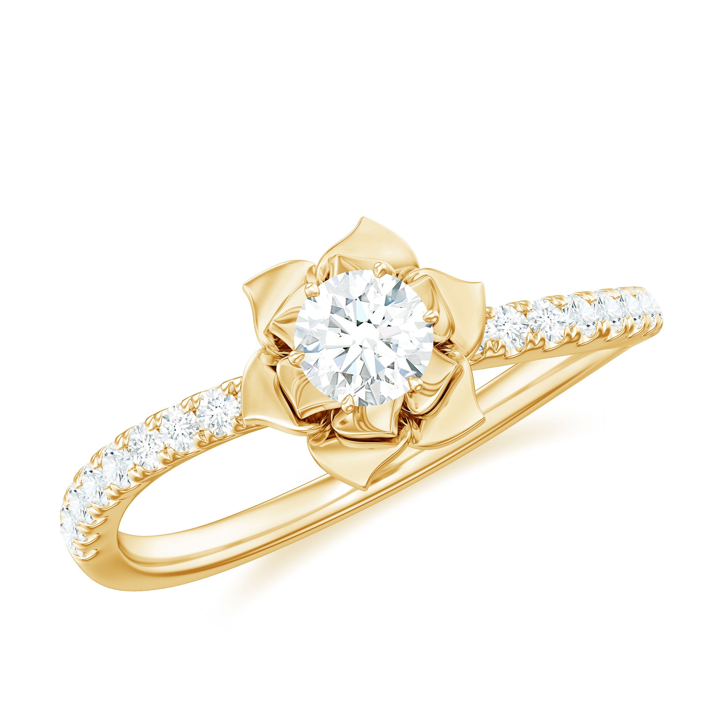 Embrace the enchanting beauty of nature with this ravishing Floral Engagement Ring. A dazzling 5 MM Round Shape Lab Grown Diamond is lovingly set in a floral design, with petite Lab Grown Diamond gemstones set on a delicate band. This ring captures the essence of a love that blossoms, a unique choice for those who cherish the harmony between love and nature.