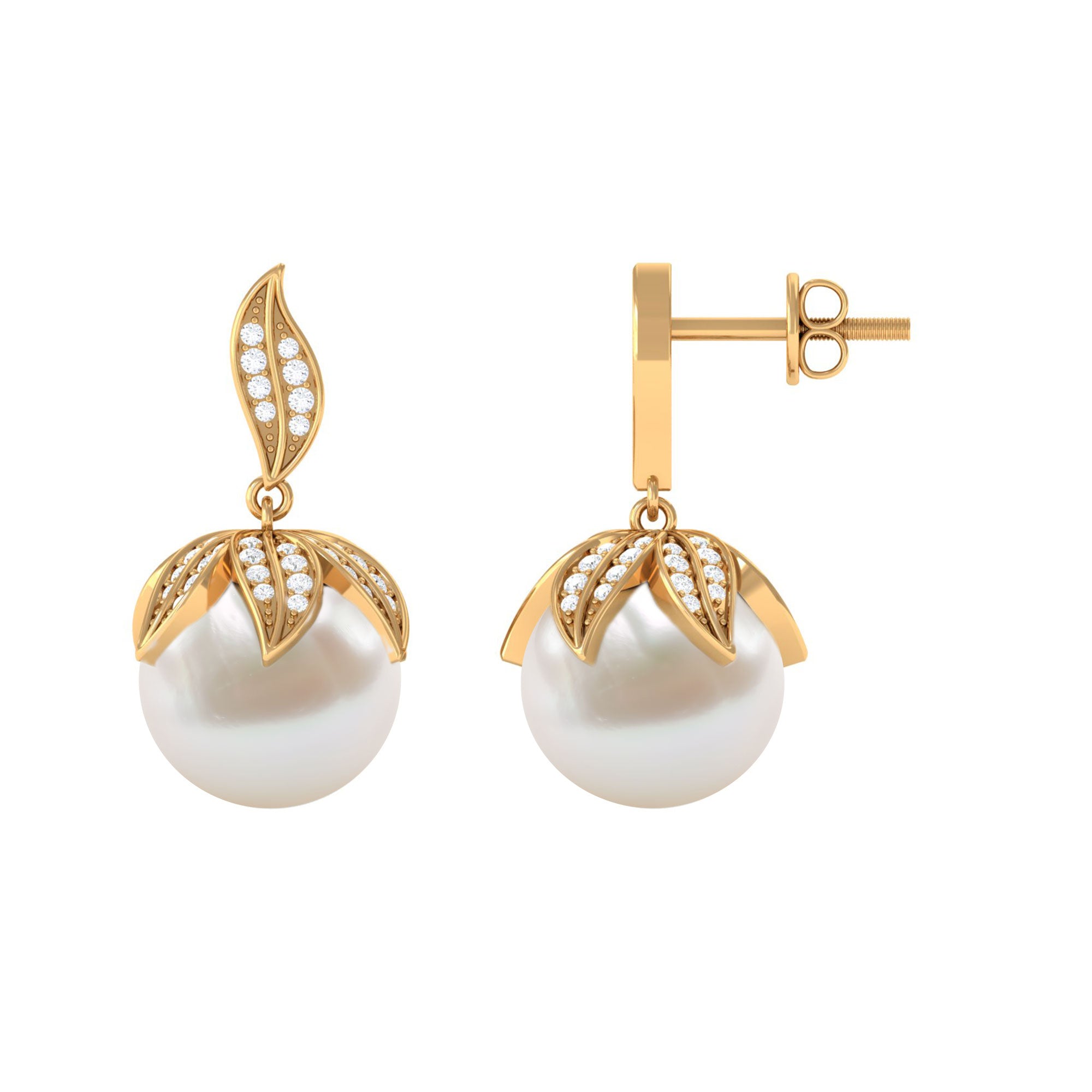 Nature Inspired Freshwater Pearl Drop Earrings with Diamond
