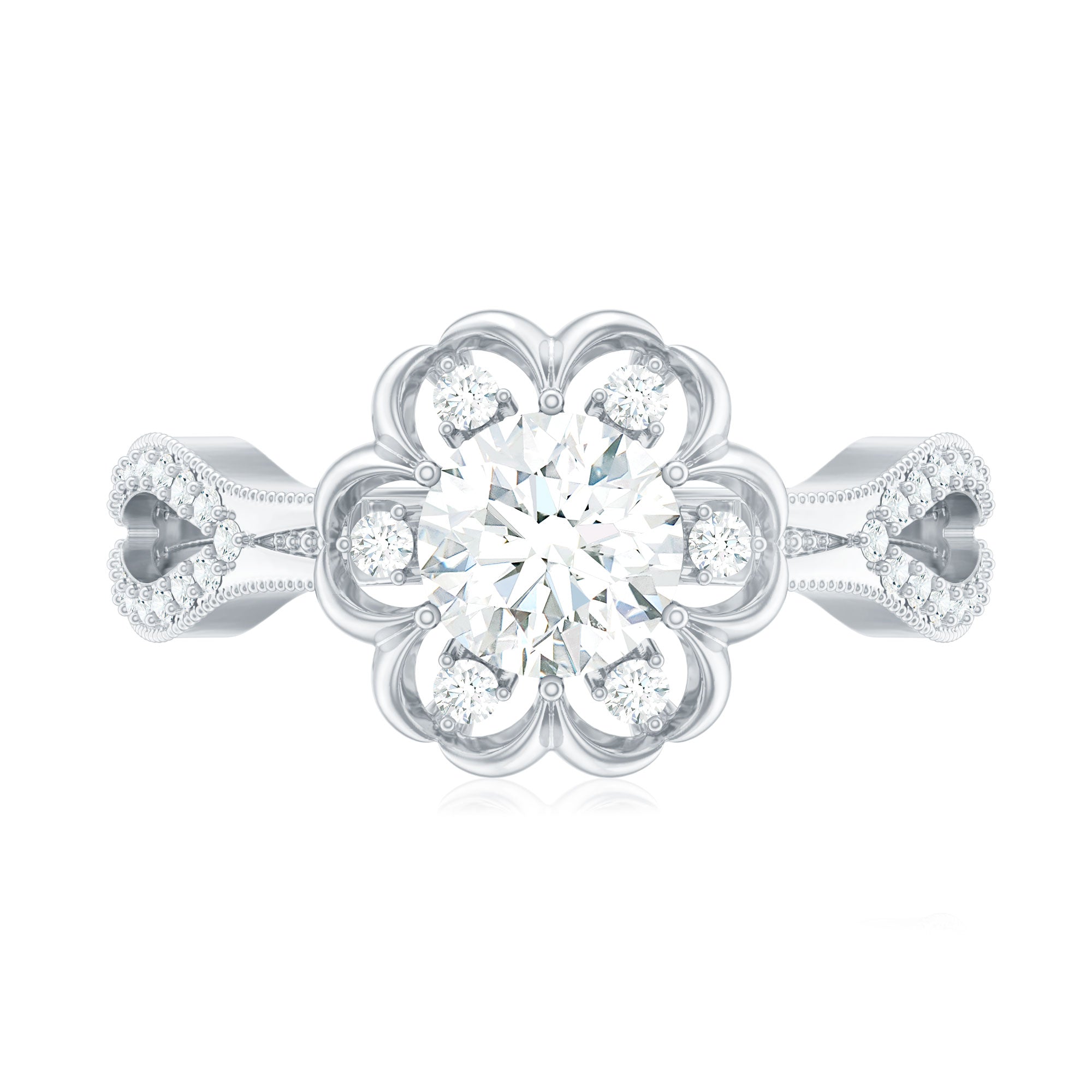 Bloom in everlasting love with this Floral Engagement Ring. Crafted with perfection, this Ring features 6mm Round Shape Lab Grown Diamond gemstones set in a flower motif, symbolizing a love that blossoms without compromise. Intricately designed, the Diamond Engagement Ring (Synthetic) captures the essence of blooming flowers, creating a timeless masterpiece. Ef-Vs Quality Diamond marks the commitment to sustainability which is reflected in every facet of this Lab Grown Diamond Ring.