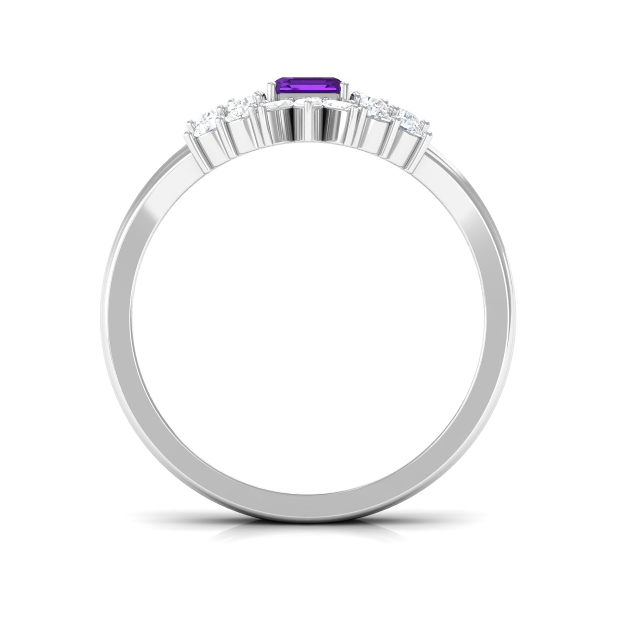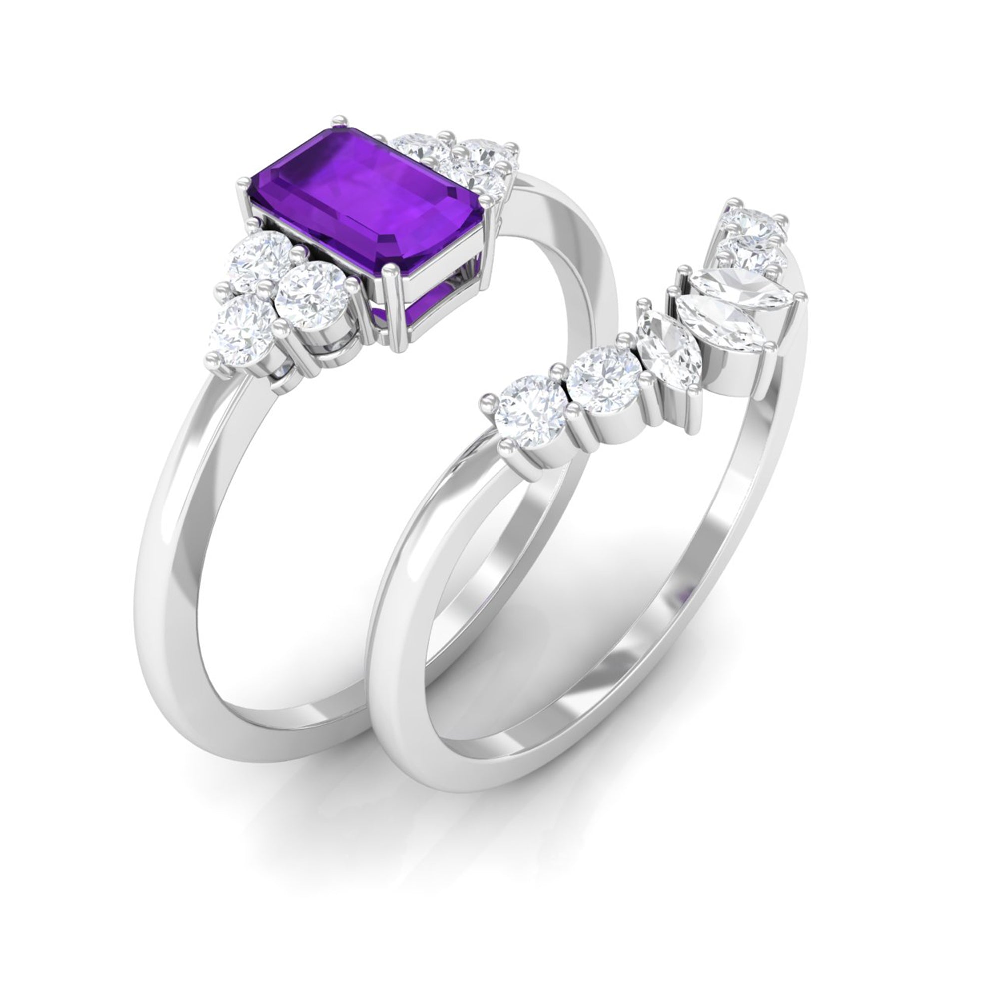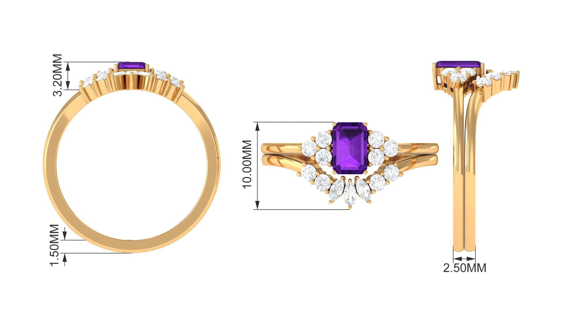 Octagon Amethyst Solitaire Stackable Ring Set with Diamond