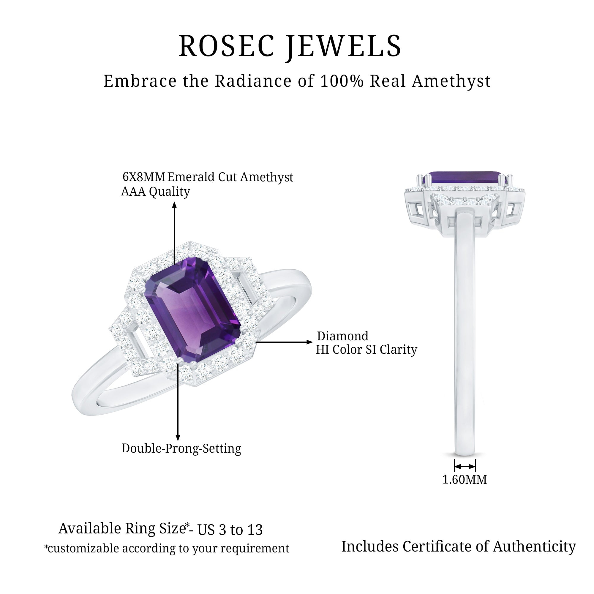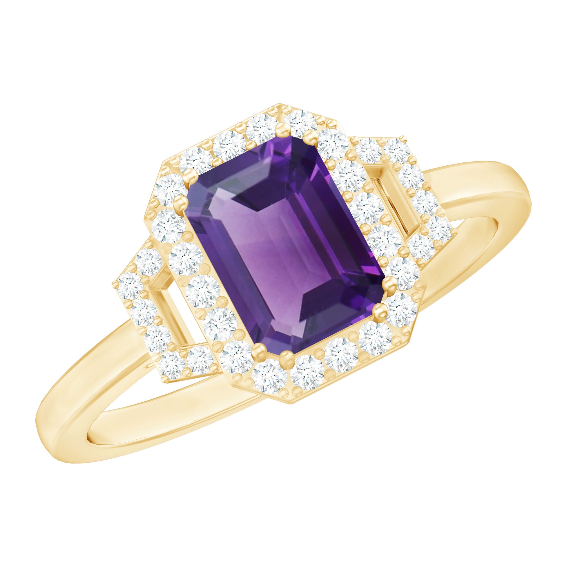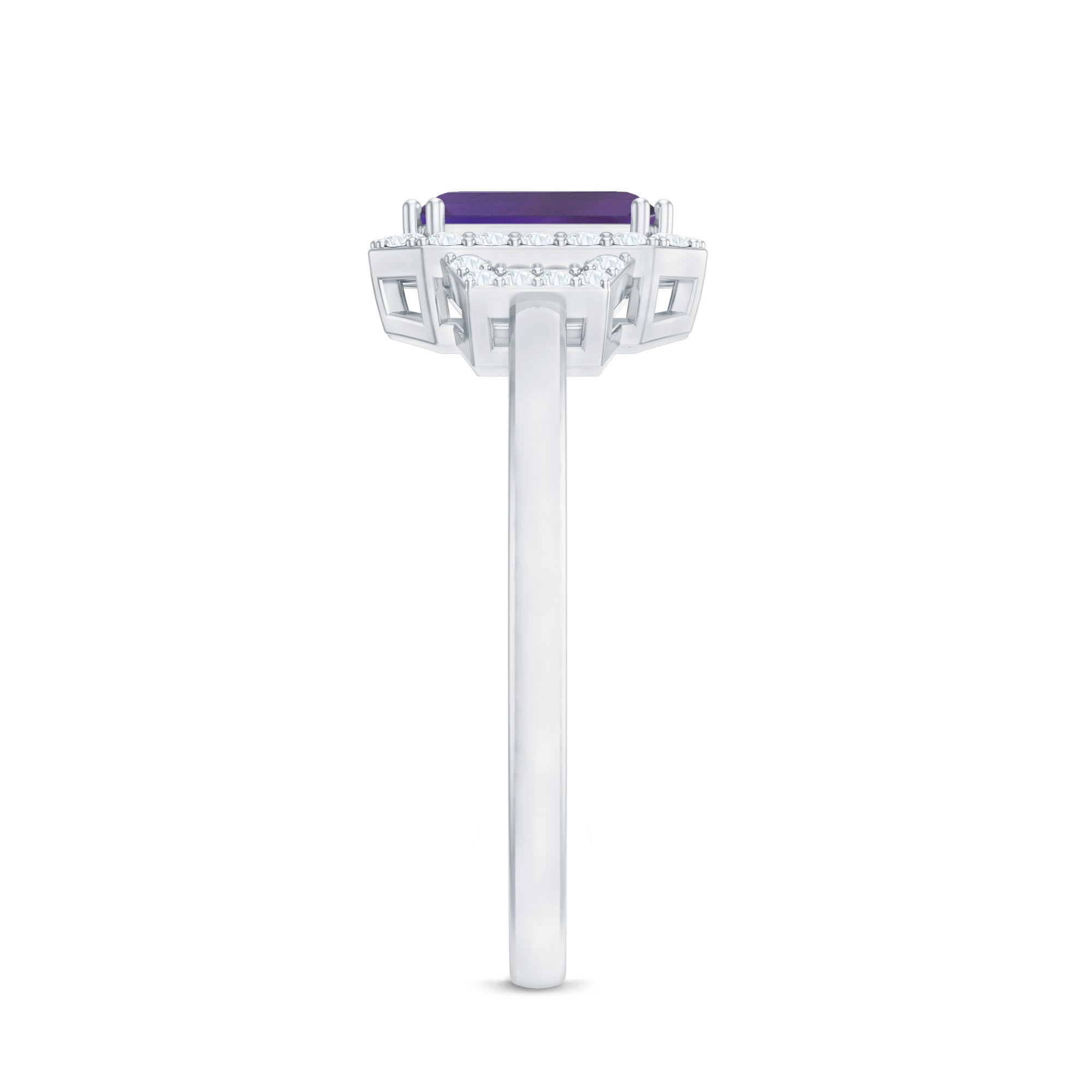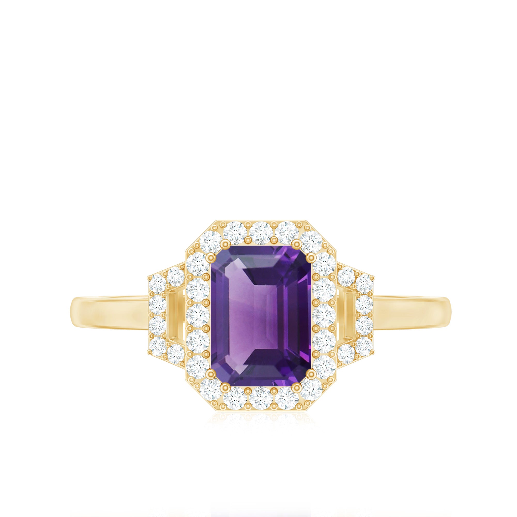 Octagon Amethyst Statement Engagement Ring with Diamond