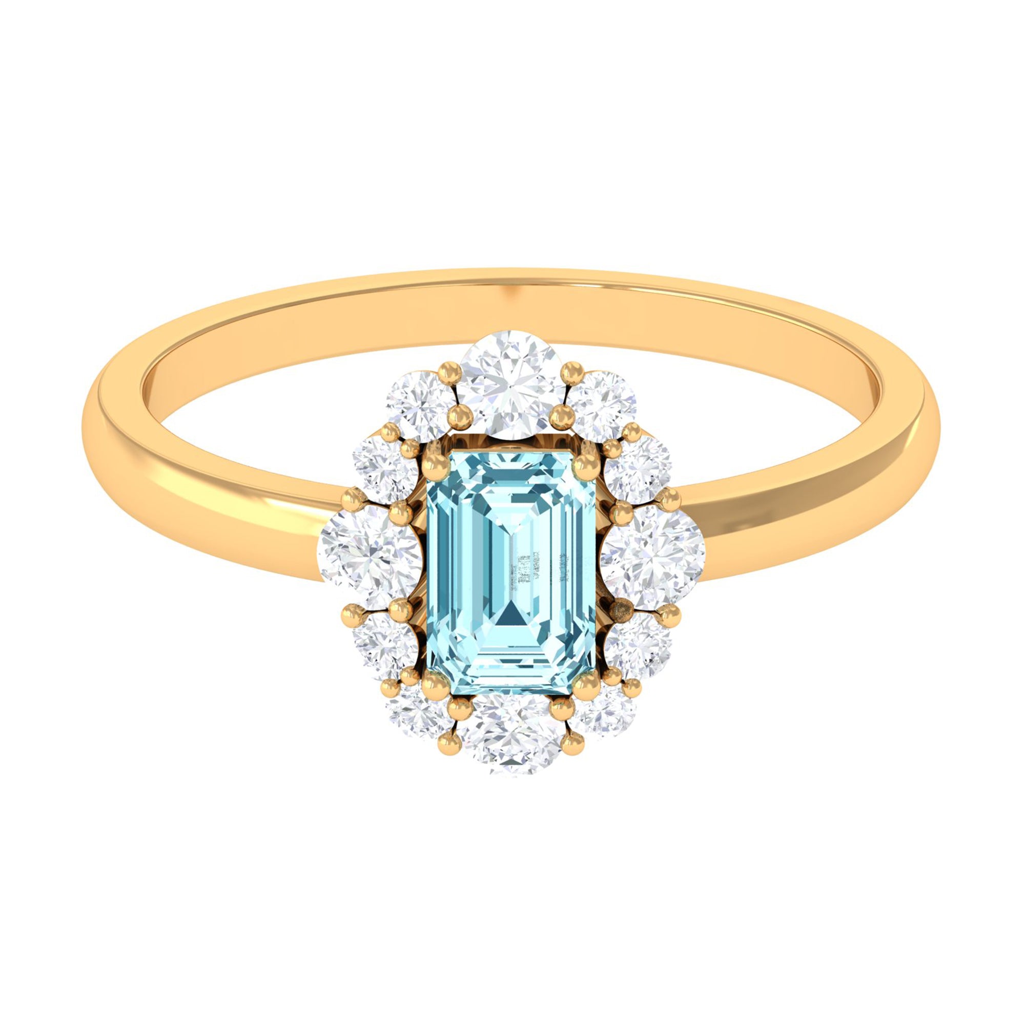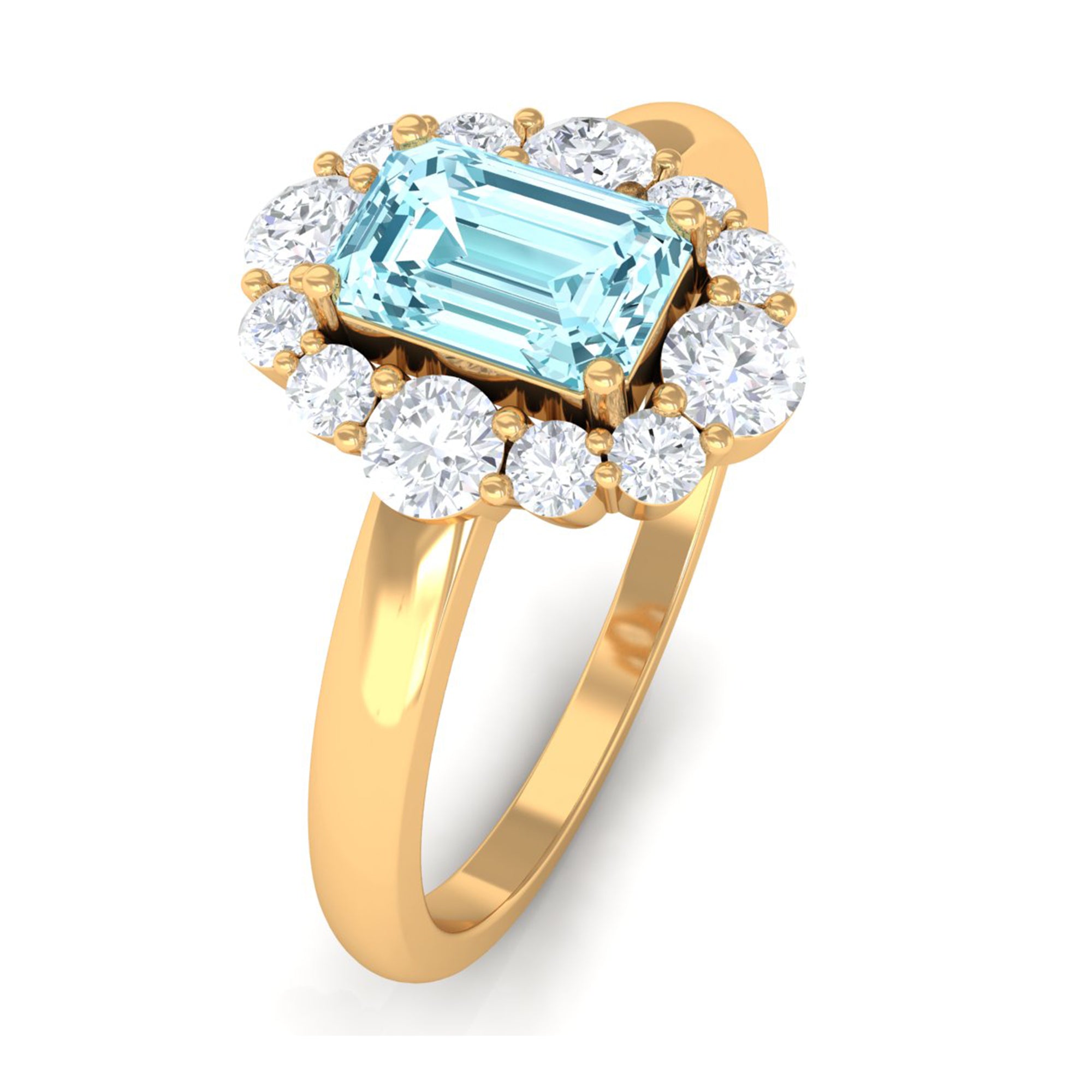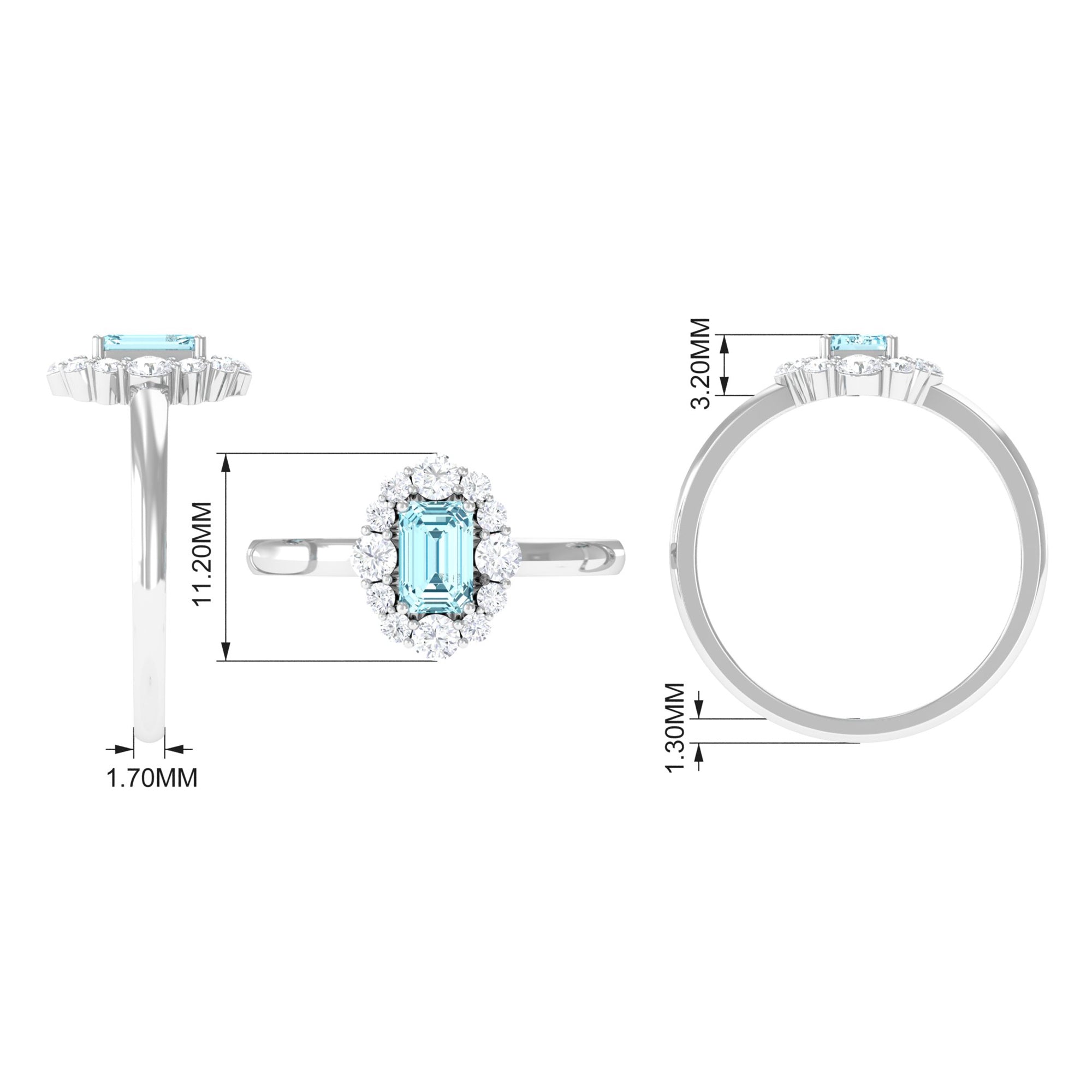 Octagon Aquamarine Engagement Ring with Diamond Halo
