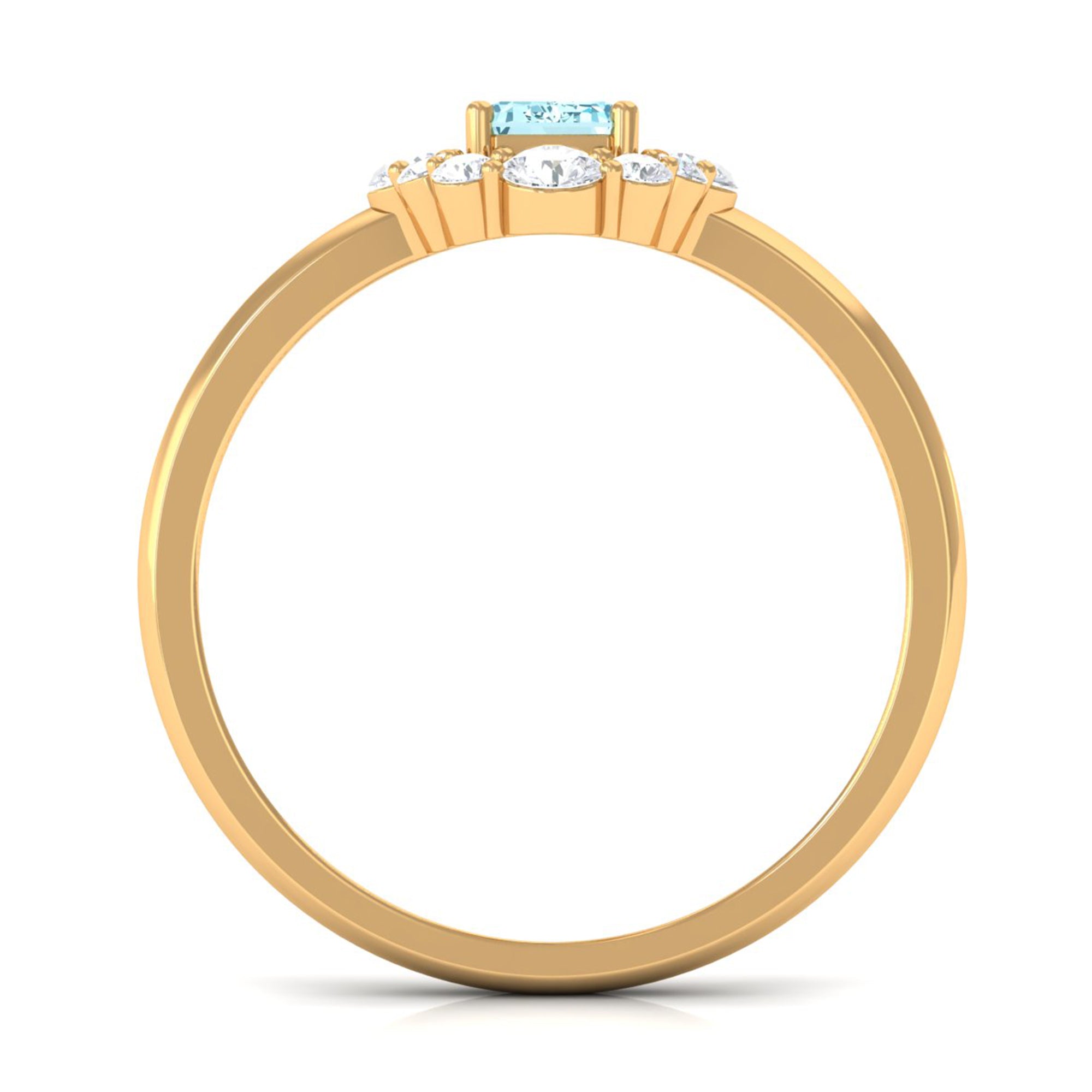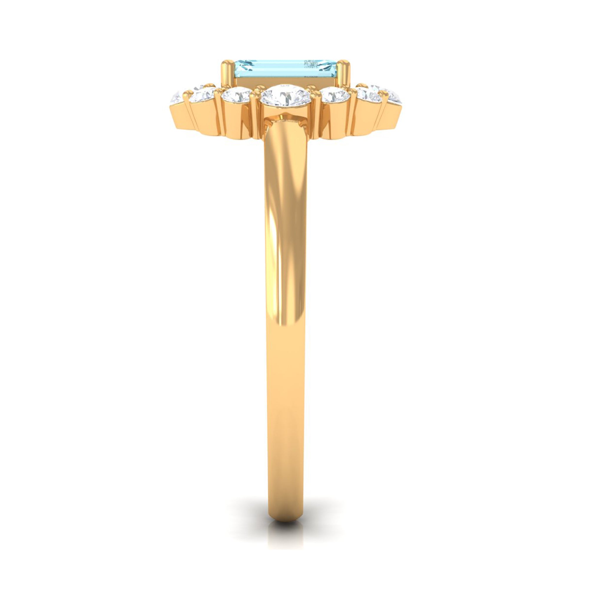 This stunning Engagement Ring is embellished with Emerald Cut Aquamarine secured in Prong Setting, while Round Shape Diamond studded as Halo, creating a unique look. This Aquamarine Ring is crafted with Hallmarked Metal to make it durable. You can style this Halo Ring with your special and everyday attire to stand out from the crowd.