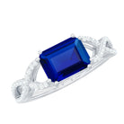 Octagon Created Blue Sapphire East-West Crossover Ring with Diamond