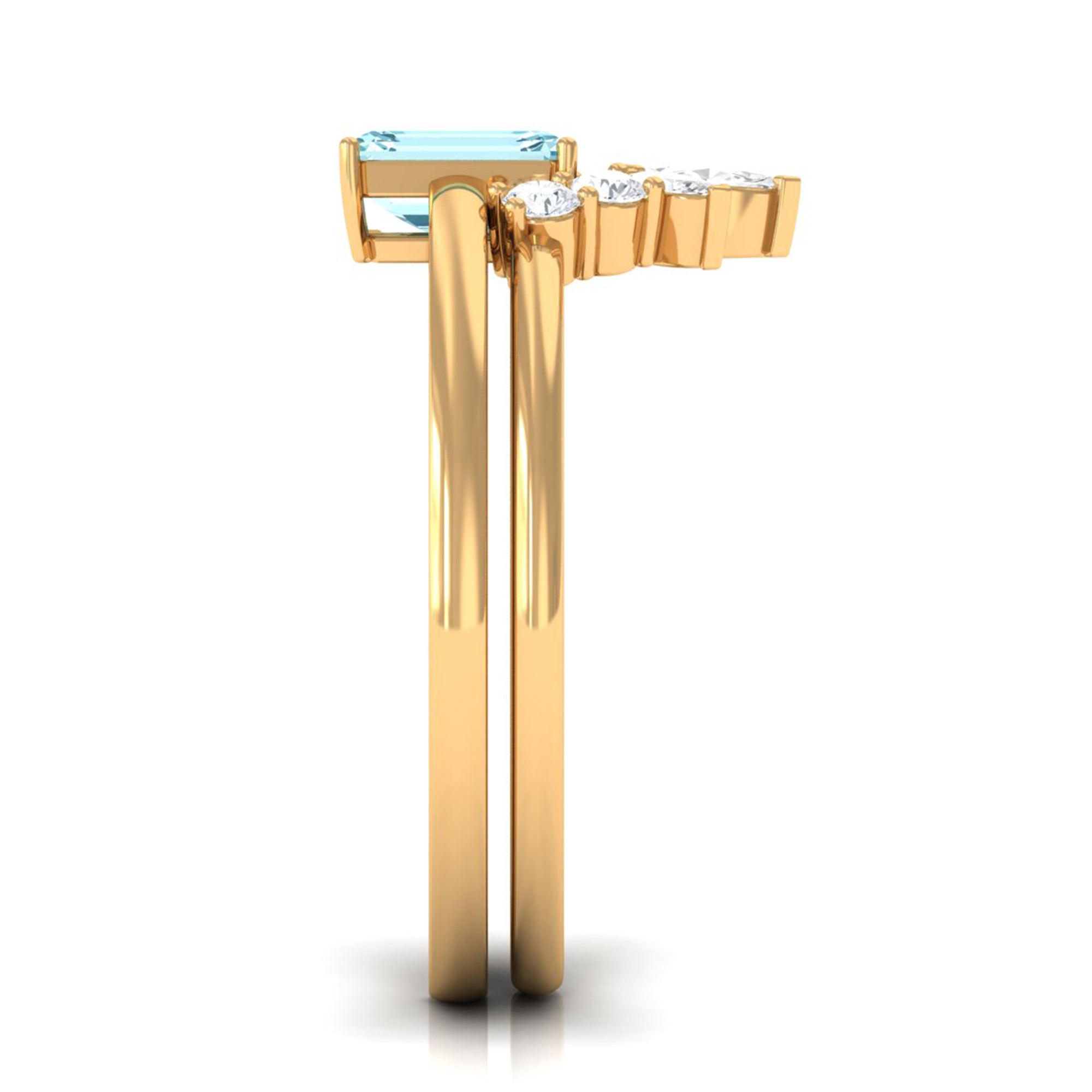 Octagon Cut Aquamarine Wedding Ring Set with Diamond