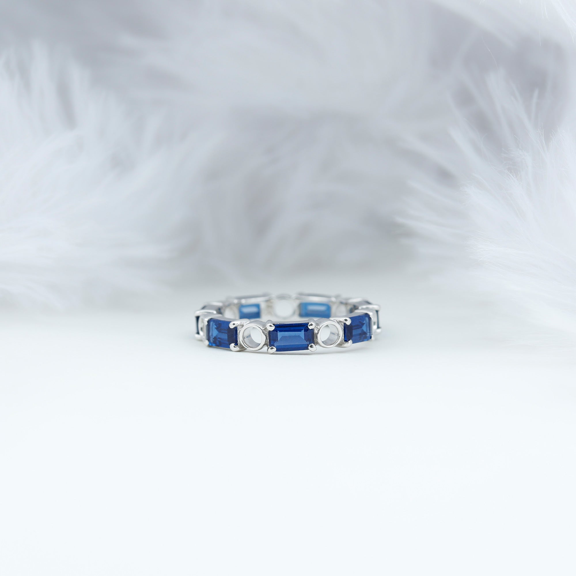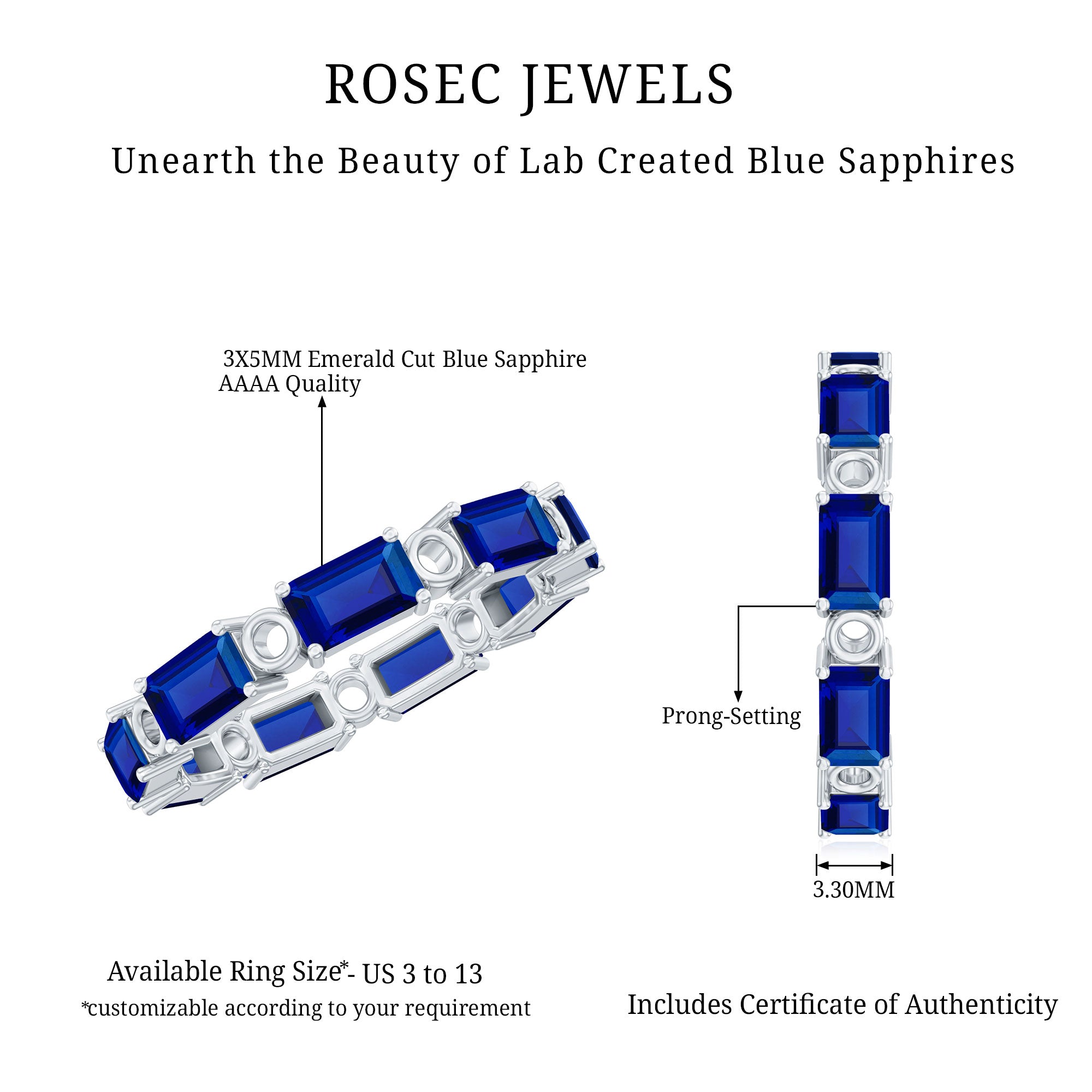 Add a touch of elegance to your fashion statement with this classic Eternity Band for Women, crafted from Solid Gold. The band is adorned with stunning Octagon Cut Created Blue Sapphire gems, sparkling brilliantly in a secure Prong Setting in East West pattern. This charming Eternity Band Ring is the perfect accessory to complete any fashionable look.