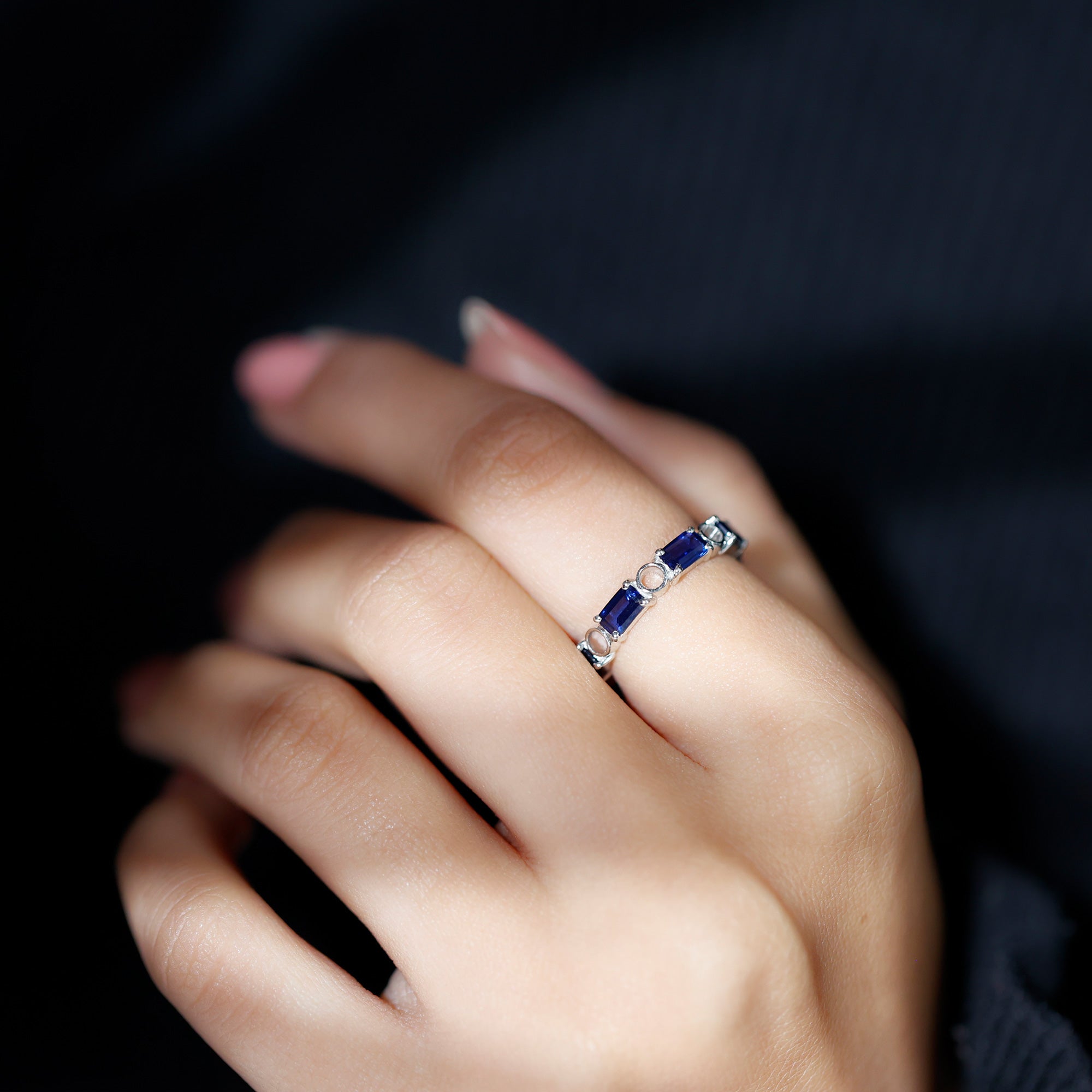 Octagon Cut Created Blue Sapphire East West Eternity Band Ring