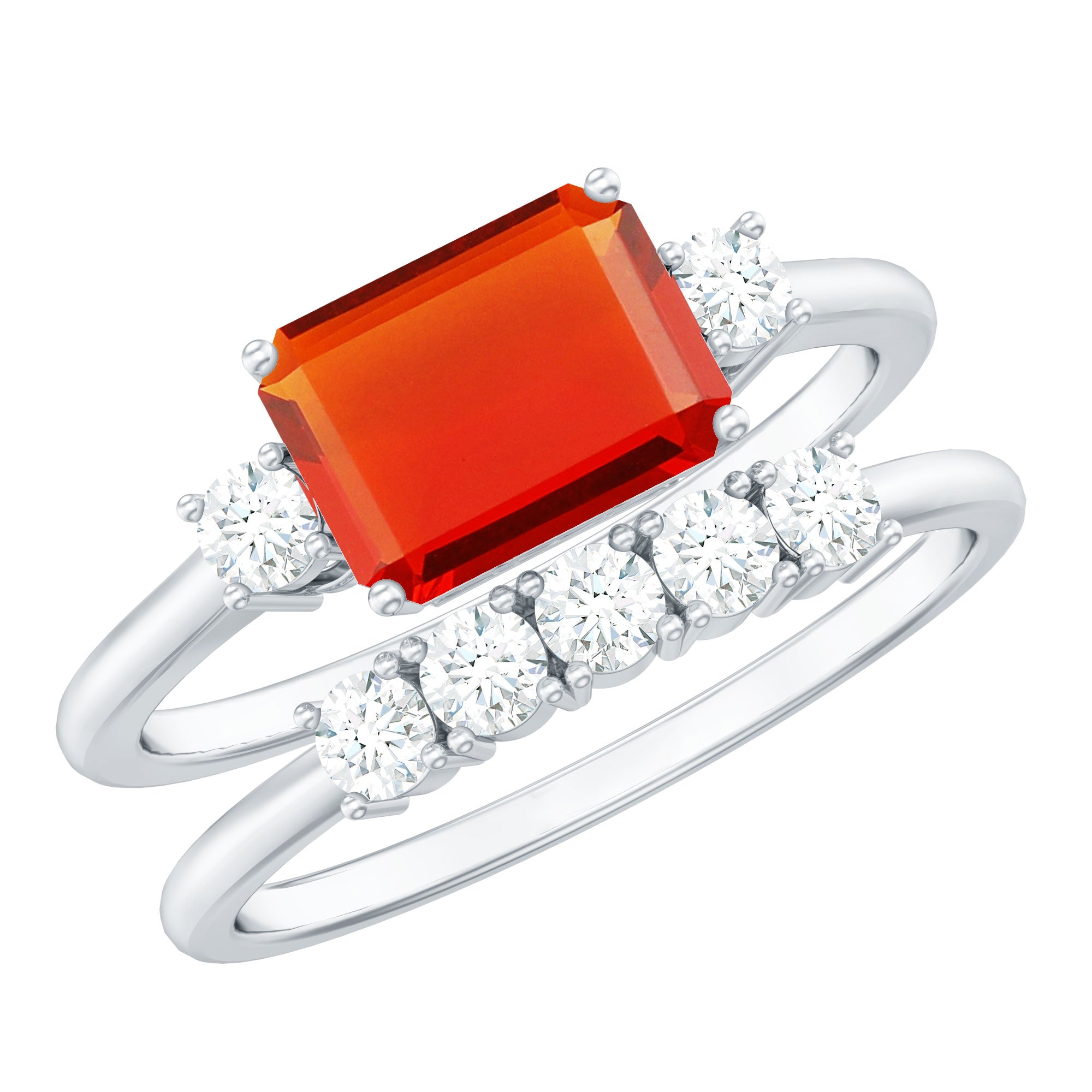 Octagon Cut Fire Opal and Moissanite Contemporary Ring Set
